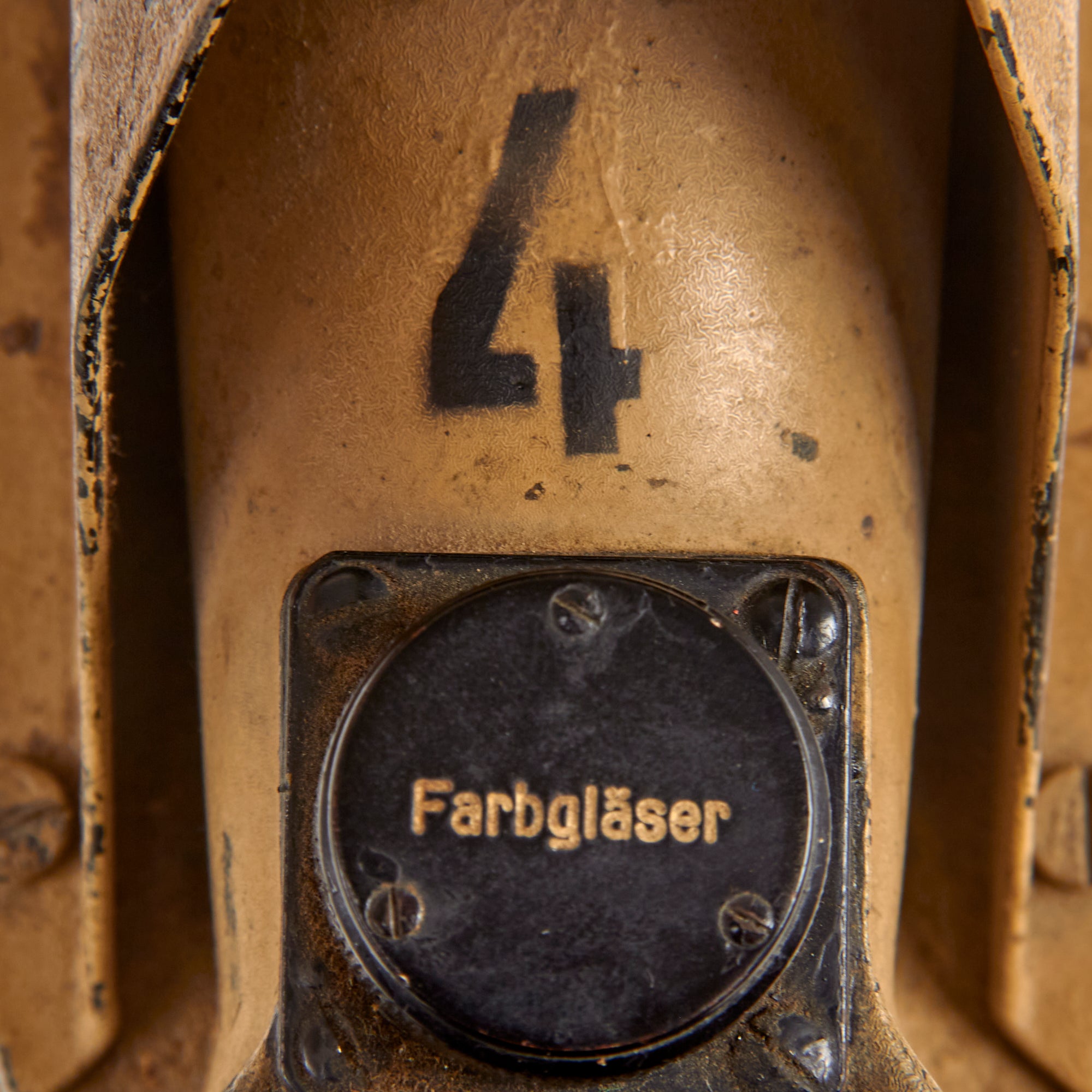The tracking telescope measures approximately 11 1/4" long, and is in very good condition. We tested the optics, and we can definitely see fairly good image, though looking at the objective lens, it definitely could use a cleaning. We tested the Farbgläser (tinted filter) knob, and all 5 positions from clear to very dark are still functional. These sighting telescopes usually were pointed straight up, so during the day a heavy tint was required to deal with the sun. The rubber eye cups are both still in very good condition, supple with no cracking.