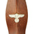 The grip is a fine product having a fine reddish colored mahogany tone in the surfaces and having medium center ridge construction. This grip is in very condition with great grain, and fits the guards well. There are some small dents from service, and it is cracked on both sides by the pommel guard in the middle. There is also some hairline cracking near the cross guard. The SA symbol button is nicely set with intact plating and lovely translucent enamel, showing a bit of oxidation. The inlaid aluminum eagle is in great shape, showing minimal wear.