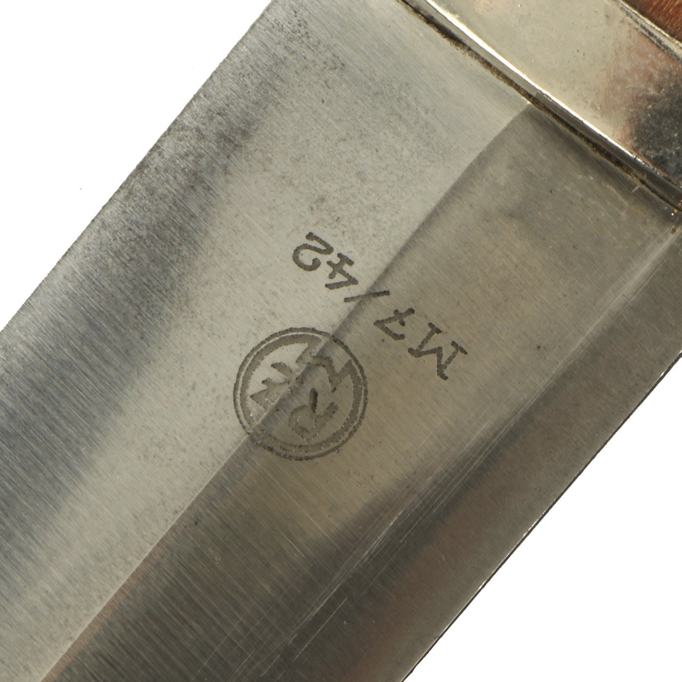 The Reichszeugmeisterei (National Quartermaster's Office), or RZM, was was based at the Brown house in Munich and NSDAP party headquarters in Berlin. The RZM ensured that the manufacturers of military items were consistent in design, quality of materials and other characteristics of the items. It also defined standards of design, manufacturing and quality and published an authoritative color chart for textiles. The M7 in the code stands for knives/daggers, contractor 42 stands for famous firm Weyersberg Kirschbaum & Cie of Solingen-Wald.