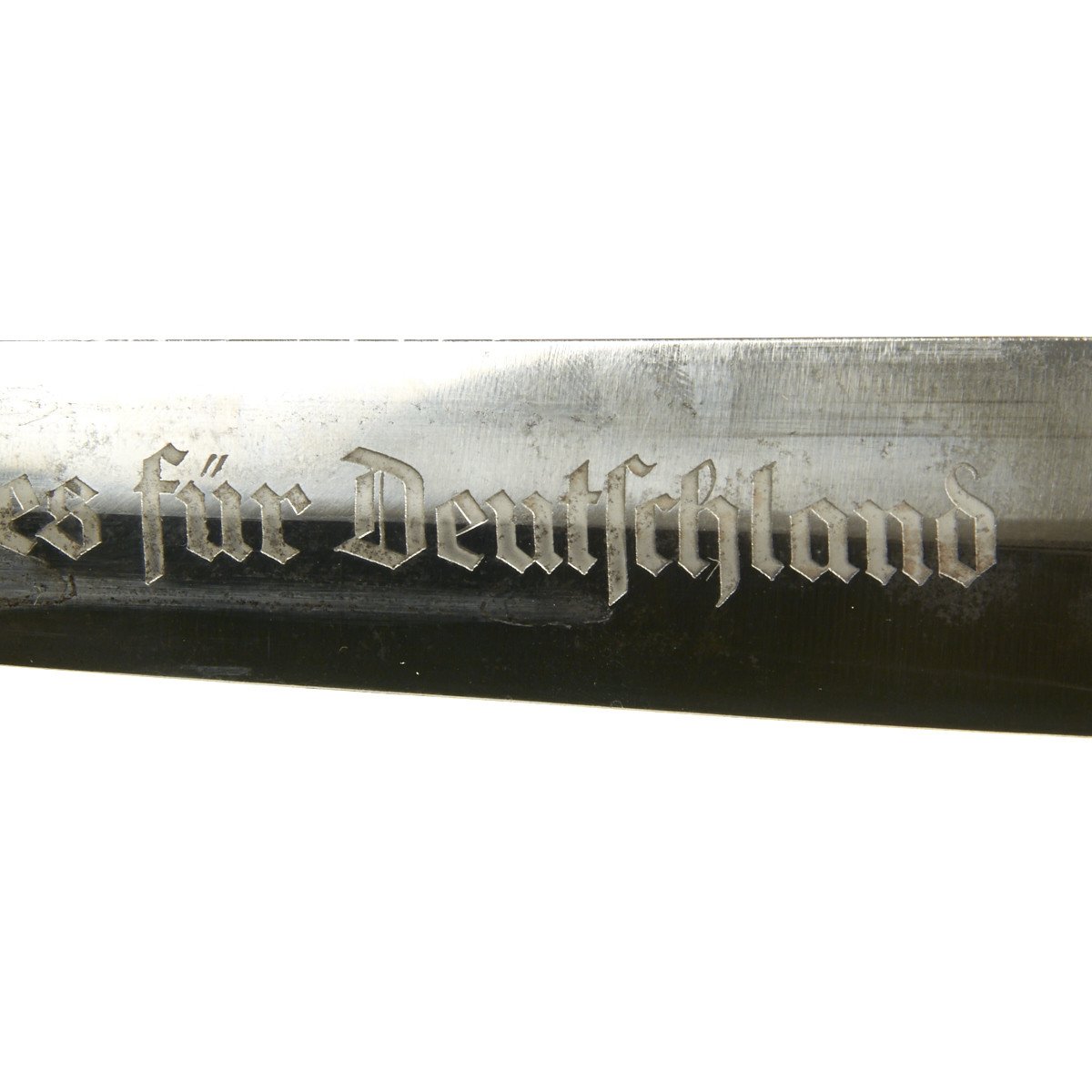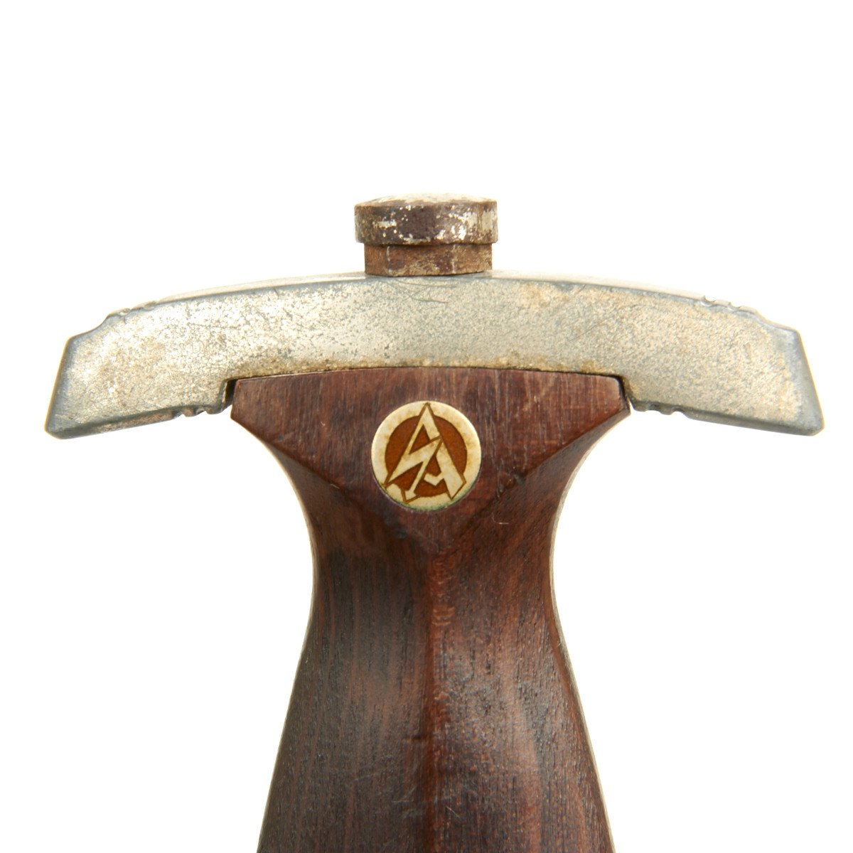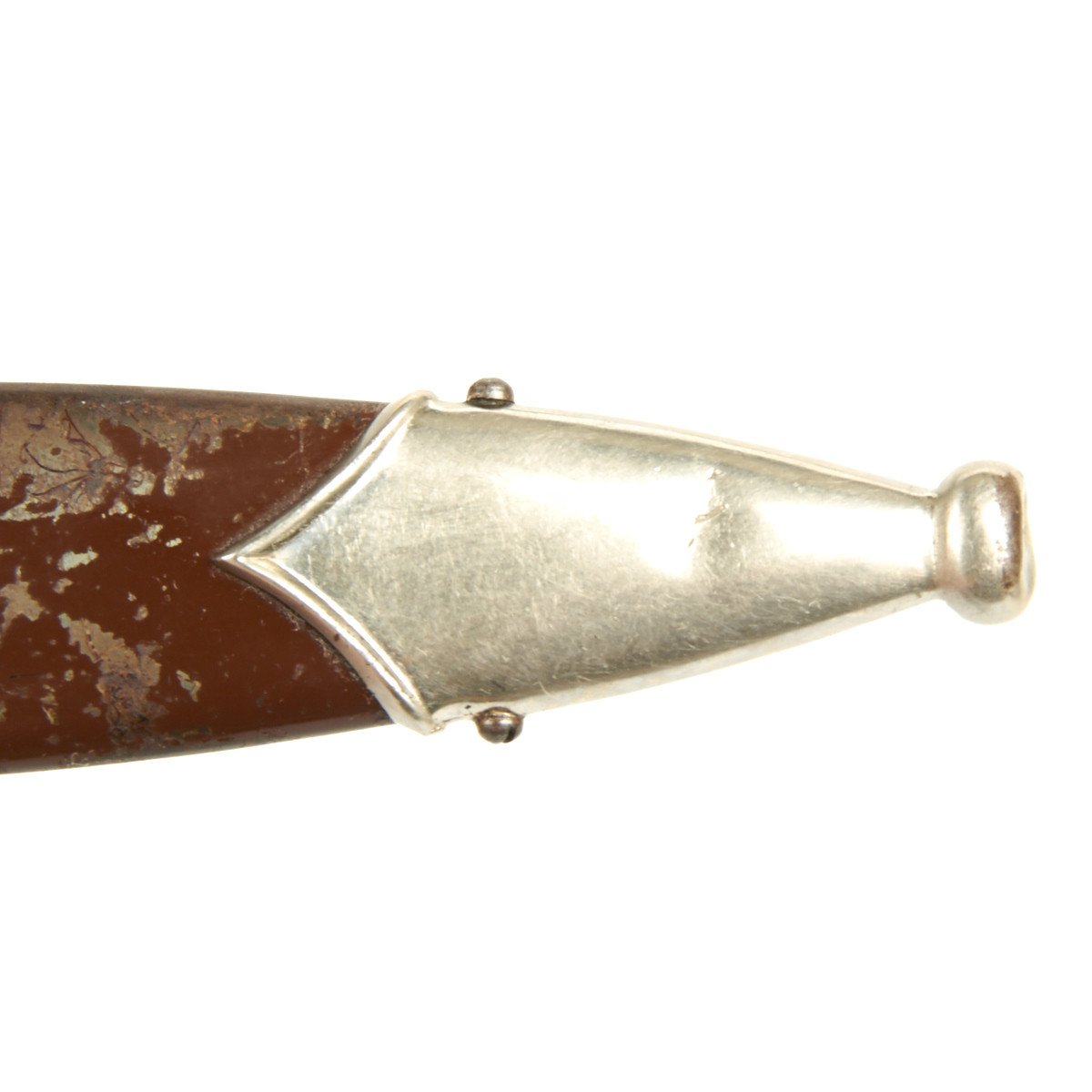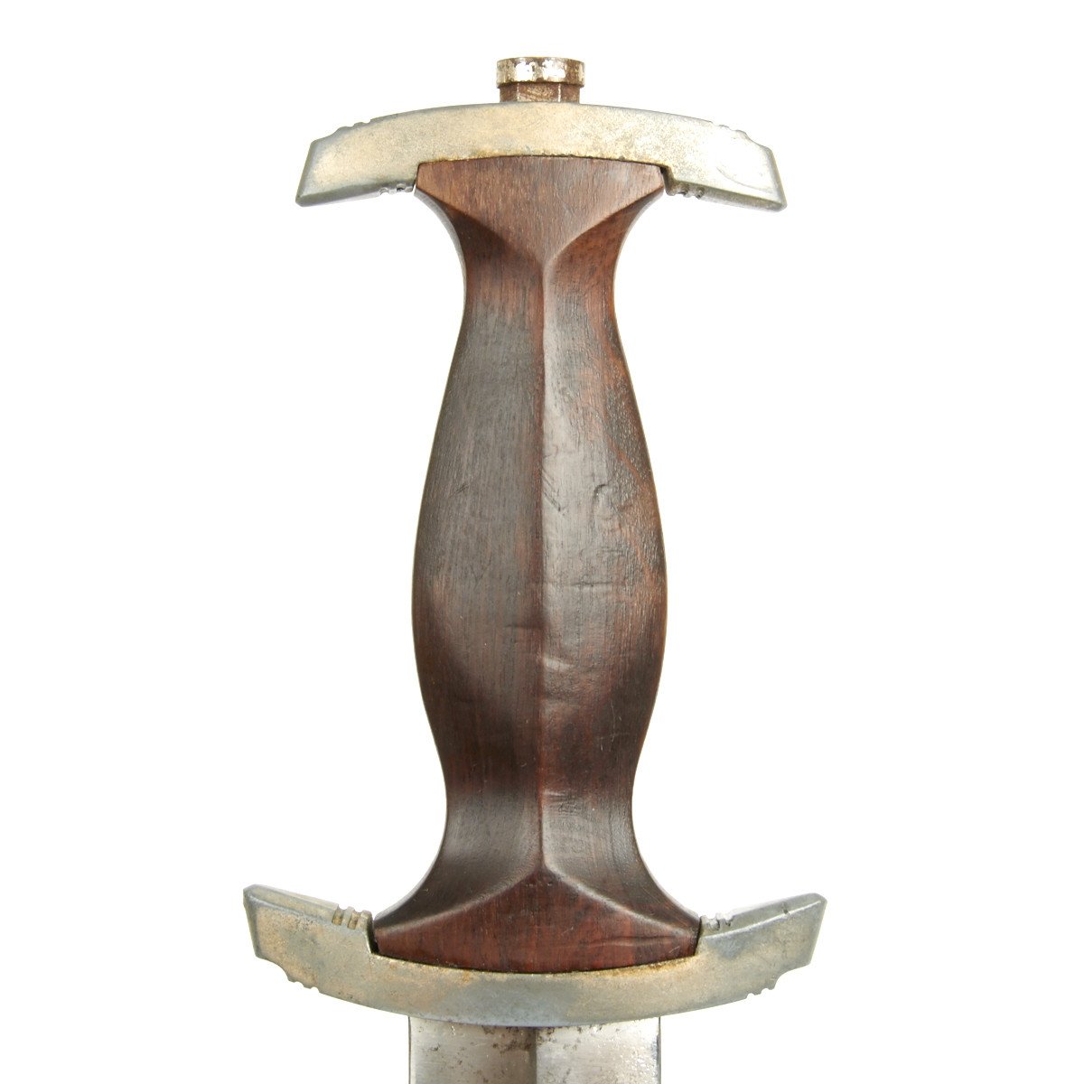 Original Item: Only One Available: This later SA Dagger has not been cleaned in a long while and it appears to not have been taken apart in modern times. The nickel hilt mounts are in good condition having a nice dull look to their surfaces. The crossguards still have smooth surfaces and crisp edges. The accent grooves are quite deeply cut into the surfaces.