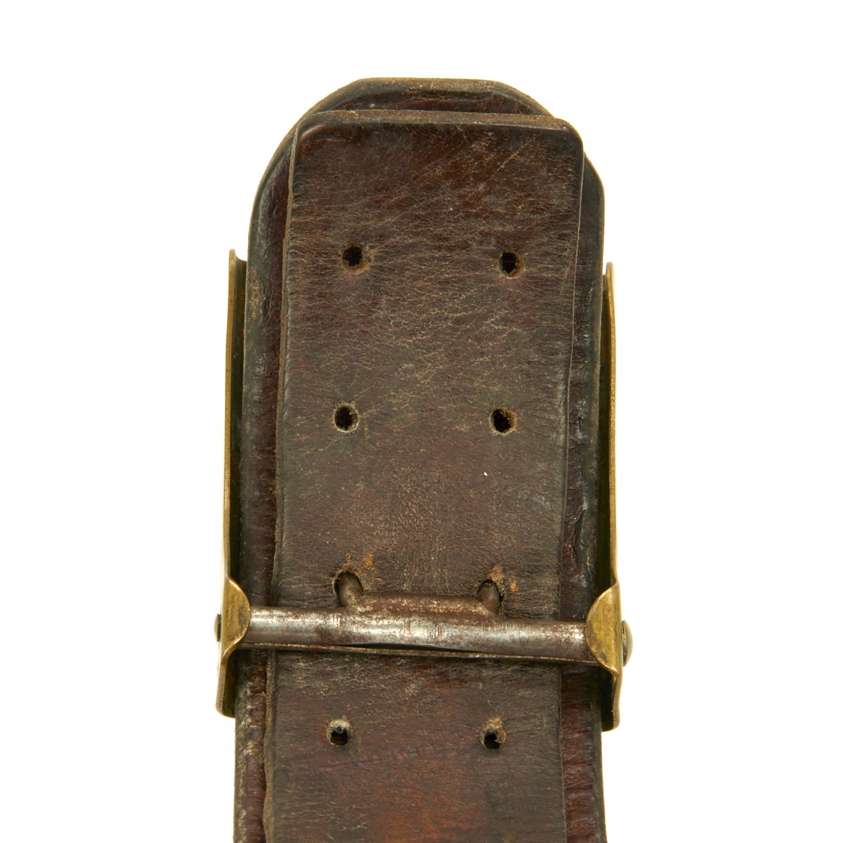 The belt itself measures 38” when fully extended, and is marked 95 on the buckle end. The leather is definitely worn, but condition is solid with no holes or tears, though some surface cracking is present, and leather is soft and pliable. Overall a great example of a hard to find WW2 German Belt.