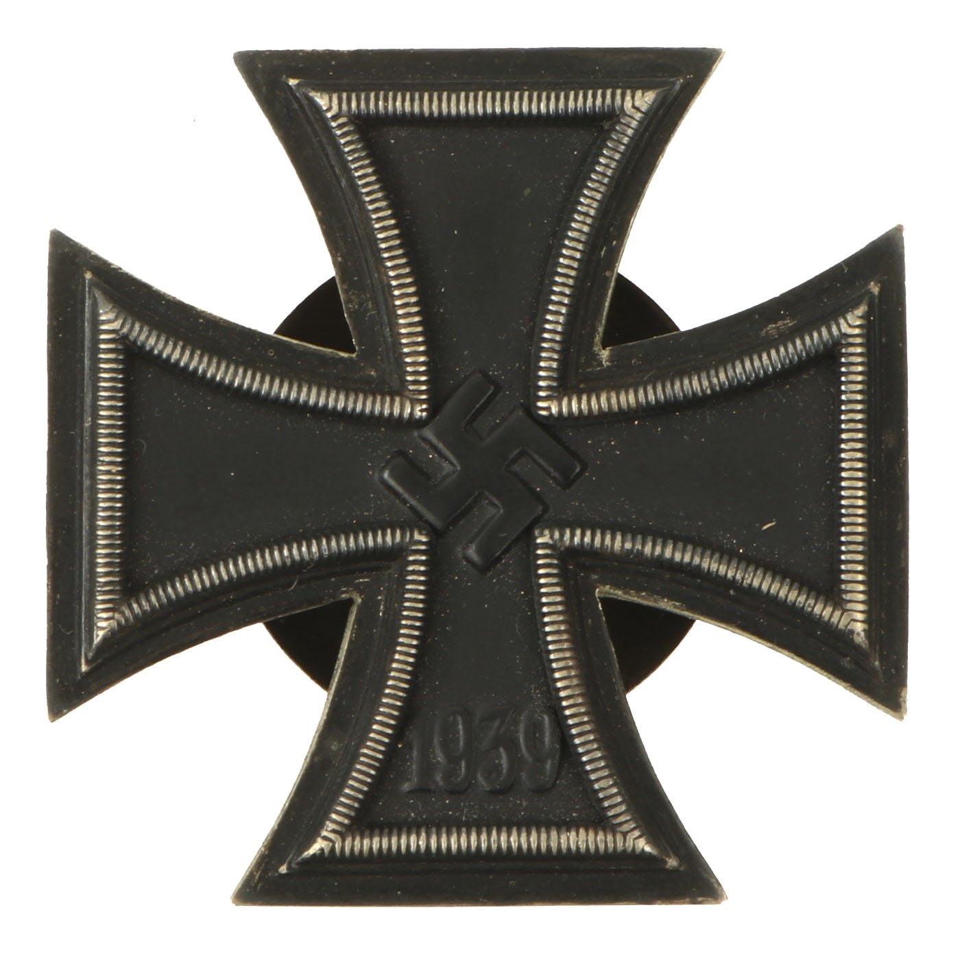 The basic design of the WWII crosses is a central Tatzenkreuz (cross pattée) struck from iron and mounted in a silver frame which has a raised crenulated decorative border. The obverse of the cross bears the date 1939 under a "mobile" swas (Hook Cross). Second class crosses would have a ring at the top where a ring was attached, and had more markings on the back. The first class award, however, was meant to attach directly to the front of the uniform.