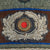 It is decorated with a well detailed embroidered silver bullion eagle insignia on the peak and and an open embroidered silver bullion wreath surrounding a metal tri-color cockade on the band. This indicates early issue, as later caps moved to a cast or stamped "Police" insignia instead of the cockade and wreath. The chin strap is attached with the standard pebbled buttons on either side of the cap. The vulcanfibre visor has a smooth black leather-look upper, exhibiting minimal wear along the edge and is beige on the underside.