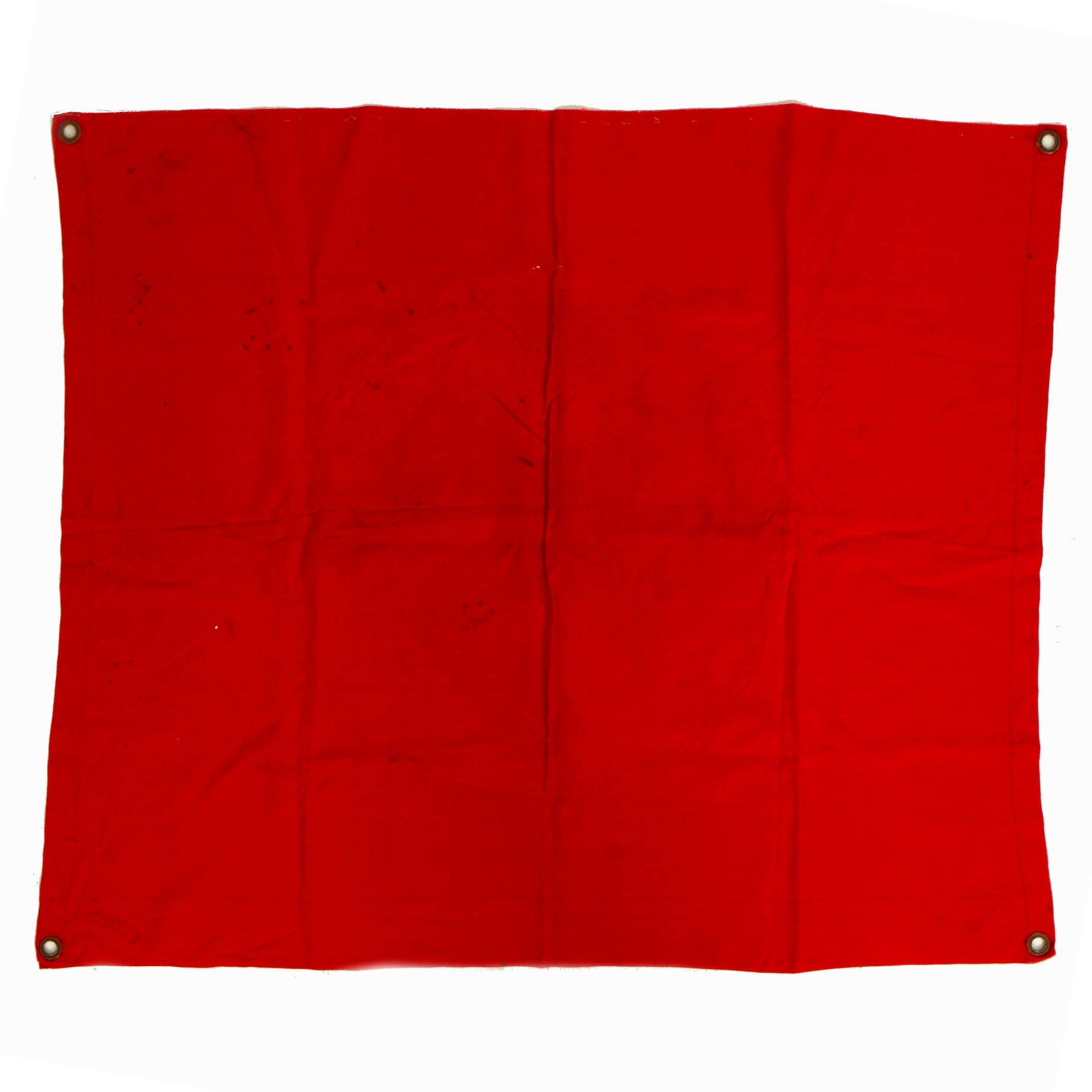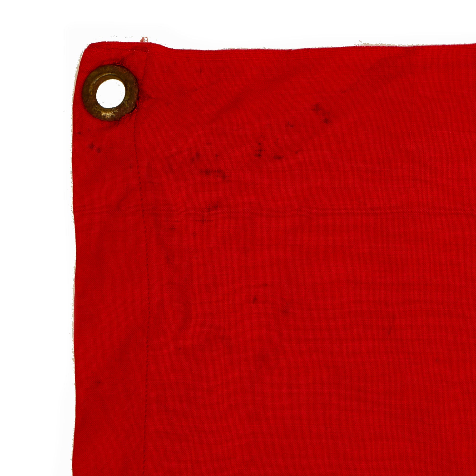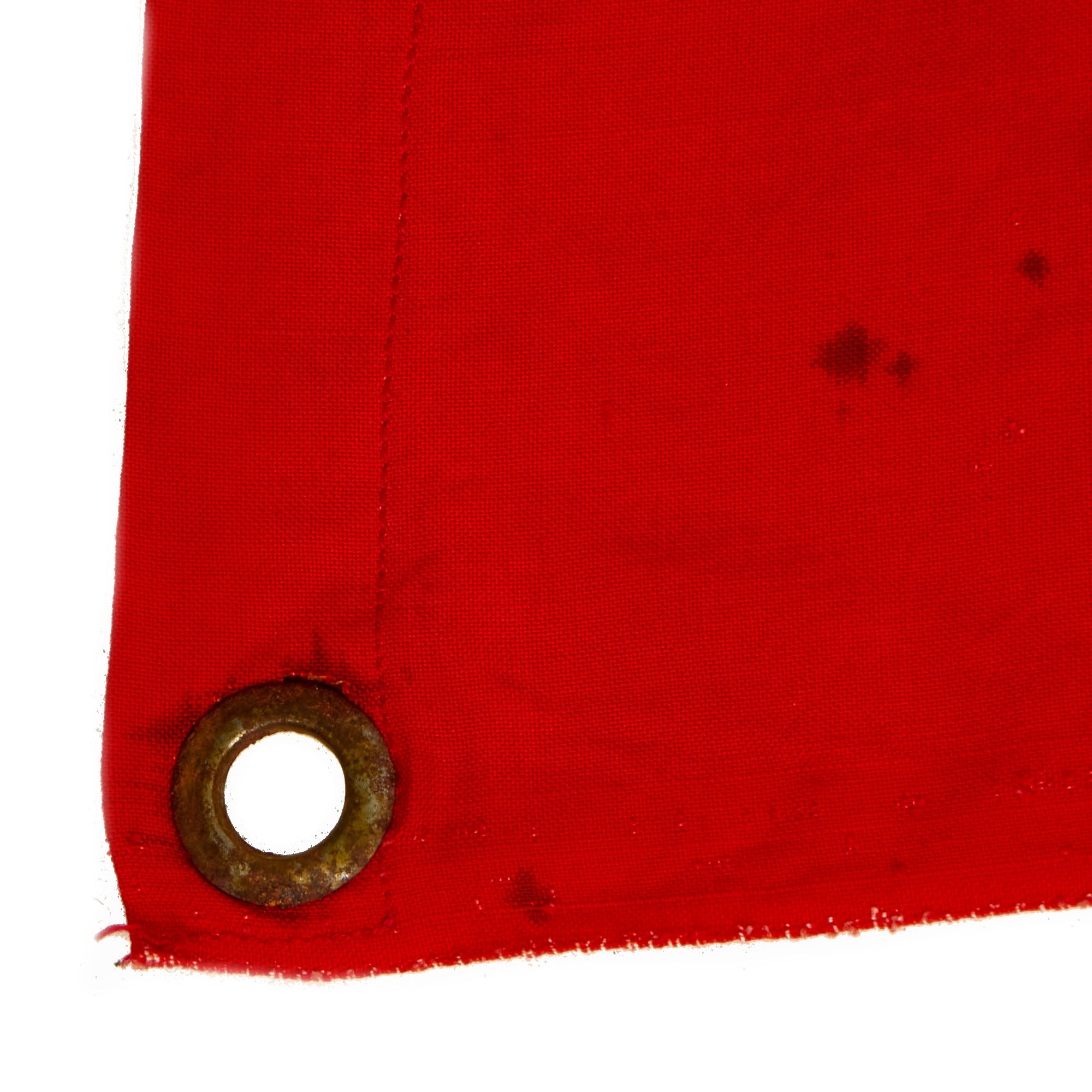 This flag features multi-piece construction and is single sided with plated steel grommets located in each corner. These grommets were secured to tension lines that secured the flag to the back of the tank laying flat. Thereby the flag was only visible to persons located above the tank. Generally these flags were intended to be seen by German airplanes so as not to be struck by friendly fire.