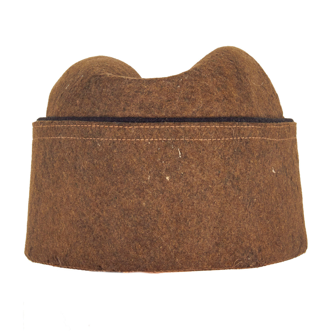 Original Item: Only One Available. This is a very nice service worn example of a WWII German Reichsarbeitsdienst (RAD - National Labor Service) "Robin Hood" cap. It is constructed of very nice field gray wool with lovely "faux" ear flaps, with a top that is usually depicted sunken in, though it can be pushed out if desired. There is black piping along the top of the ear flaps, as well as across the brim of the cap. This indicates the cap is for an EM / NCO, as officers had silver piping, an General Grade officers had gold. In 1940, EM/NCO caps stopped being issued with piping, so this is a pre-1940 cap.