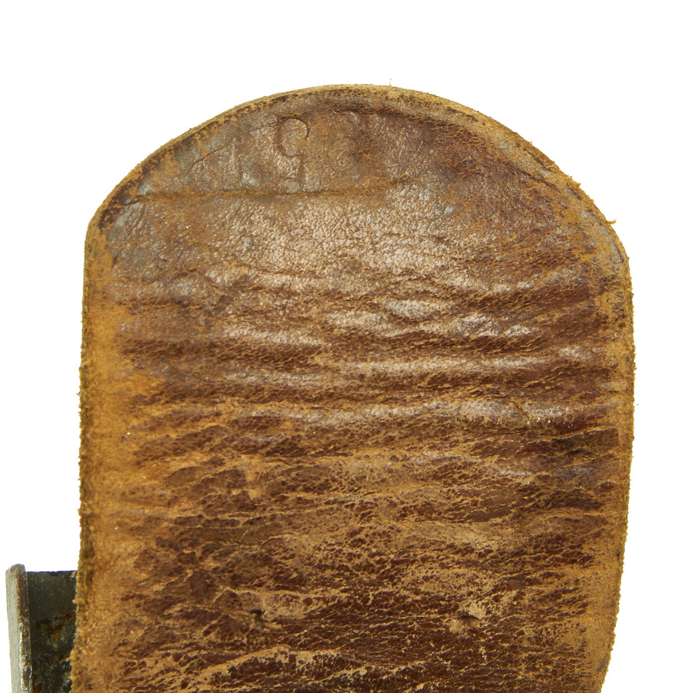 The belt itself measures 38” when fully extended, and is marked 95 on the buckle end (95cm is about 37.4 inches). The leather is definitely broken in, but condition is solid with no holes or tears, and leather is soft and pliable. Interestingly, this belt never had the "tab" for size adjustment, and had the holes for the claw put right into the belt.