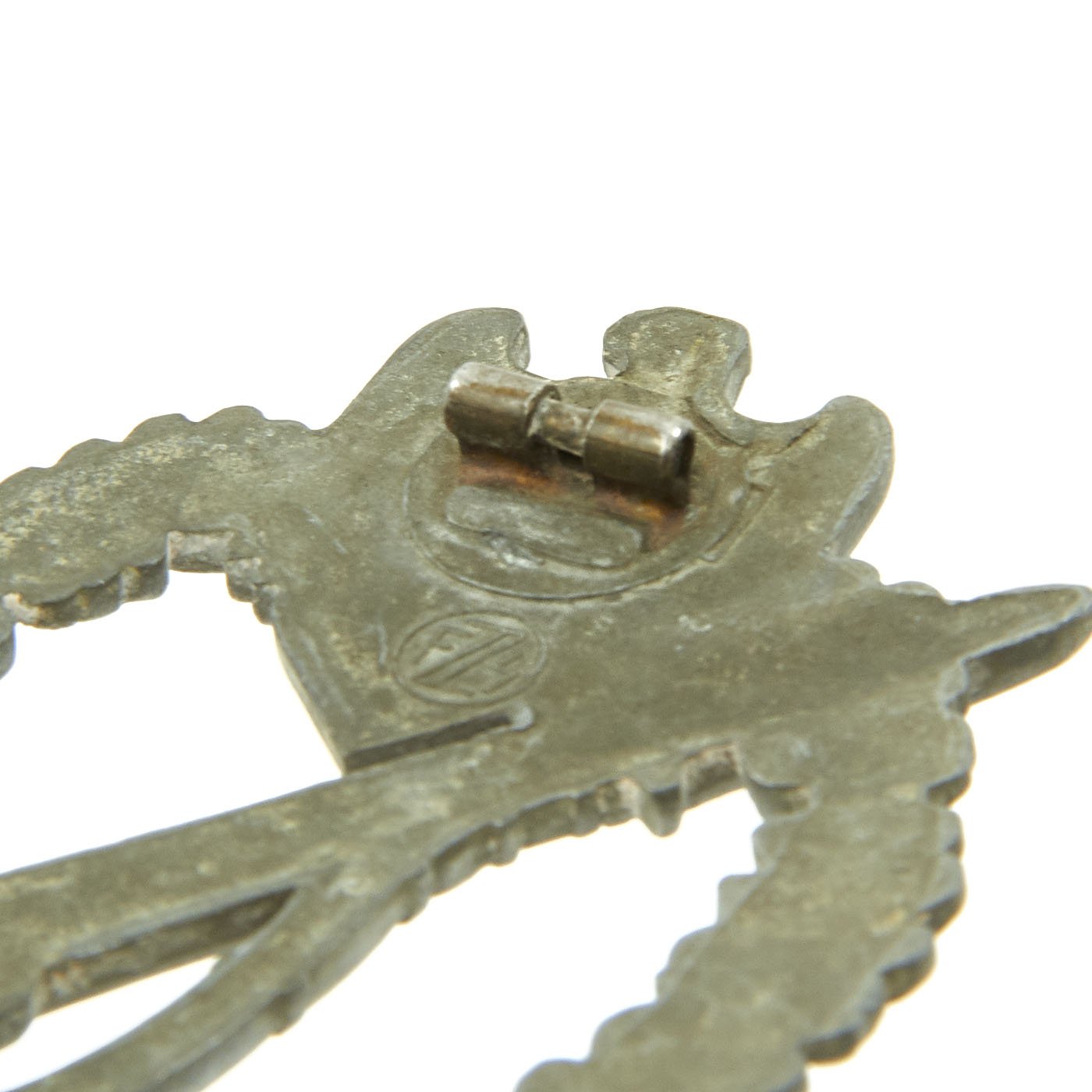 The Infantry Assault Badge (German: Infanterie-Sturmabzeichen) was a German war badge awarded to Waffen-SS and Wehrmacht Heer soldiers during the Second World War. This decoration was instituted on 20 December 1939 by the Commander-in-Chief of the German Army, Generalfeldmarschall Walther von Brauchitsch. It could be awarded to members of non-motorized Infantry units and units of the Gebirgsjäger that had participated in infantry assaults, with light infantry weapons, on at least three separate days of battle in the front line on or after 1 January 1940. When a counter offensive led to fighting, it could also apply. Award of the Infantry Assault Badge was authorized at regimental command level.