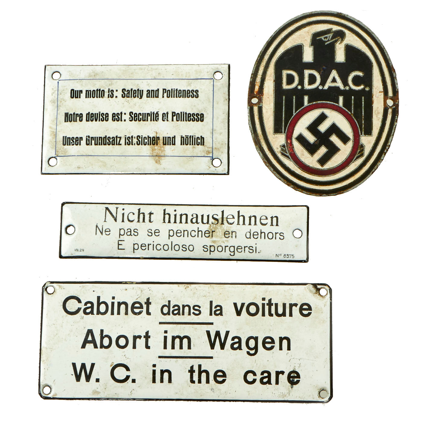 Original Item: Only One Set of 4 Available. Here we have a great set of 4 small German WWII Emailleschilder (Enamel signs), made with the classic steel back plate with porcelain enamel applied and baked on. This was the classic design for German signs of the WWII period, used throughout the society. The larger signs are often very unwieldy, and prone to cracking, but the smaller signs such as these are much easier to deal with.