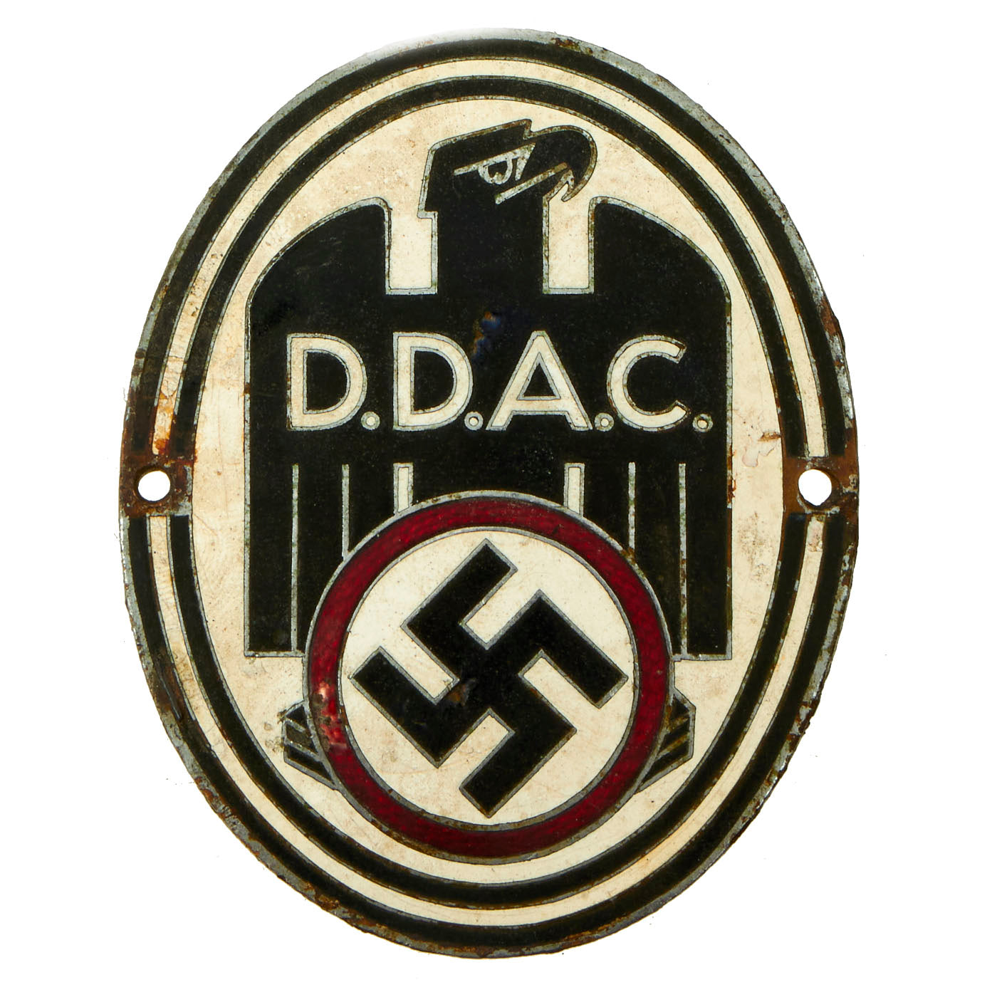 The first sign is a very nice D.D.A.C. placard sign, which measures about 4"H x 3"W. It has the classic white and black enamel work, with some translucent enamel for the red circle surrounding the swas. Der Deutsche Automobil Club (DDAC - The German Automobile Club) was the only authorized automobile club in Germany during the Third Reich. The club absorbed the ADAC and other automobile clubs in 1934, shortly following the rise of AH to the position of Führer und Reichskanzler (leader and chancellor of the Reich). The DDAC provided roadside assistance to members and was closely affiliated with the NSKK. These "Clubs" were used by the NSDAPs to encourage Automobile skills as they did for Flying skills during the time when Germany was still not allowed and Military organizations.