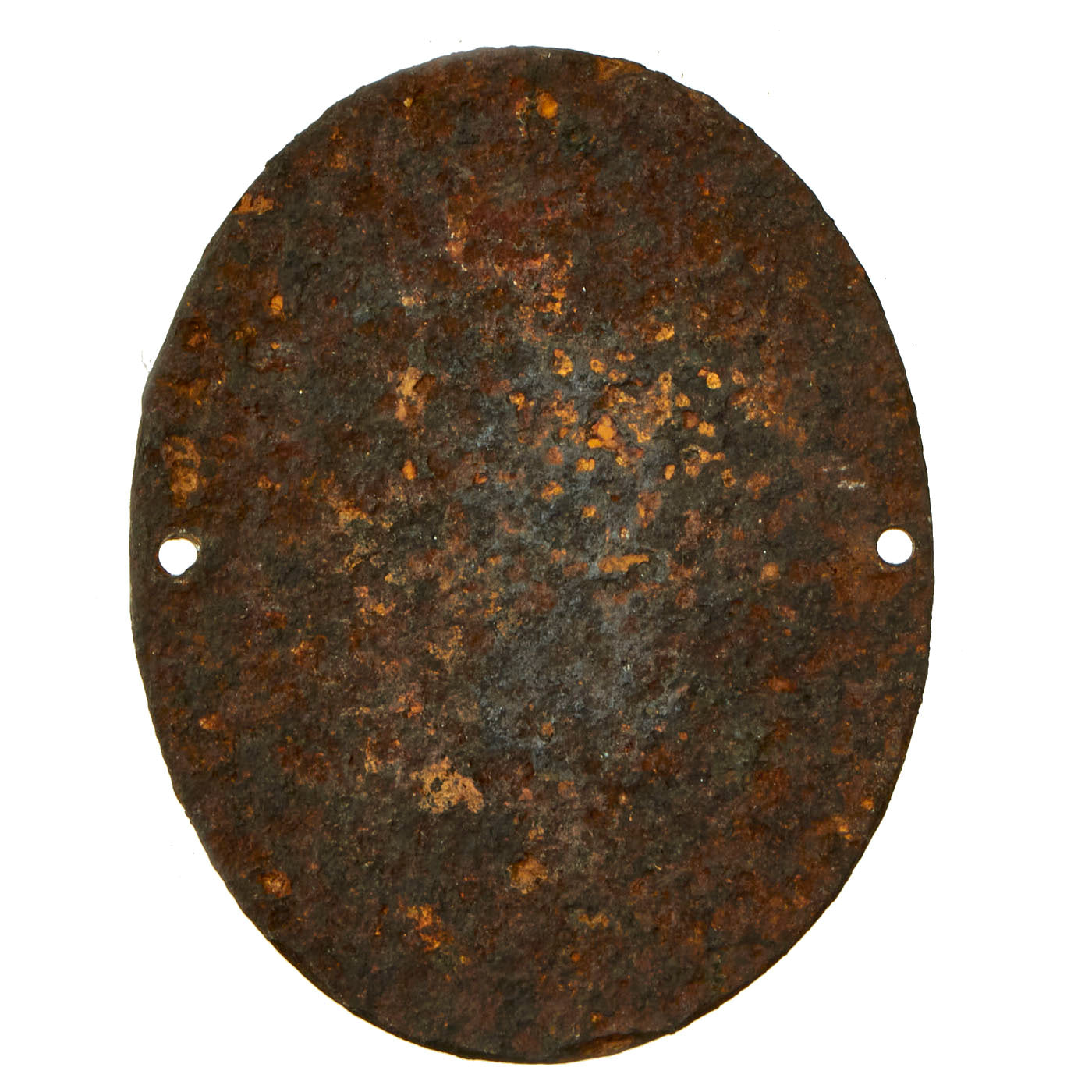 Condition is good, showing some chipping and enamel loss, as well as oxidation of the steel base. The rear is quite rust pitted, so this definitely looks to have been exposed to the elements for some time.