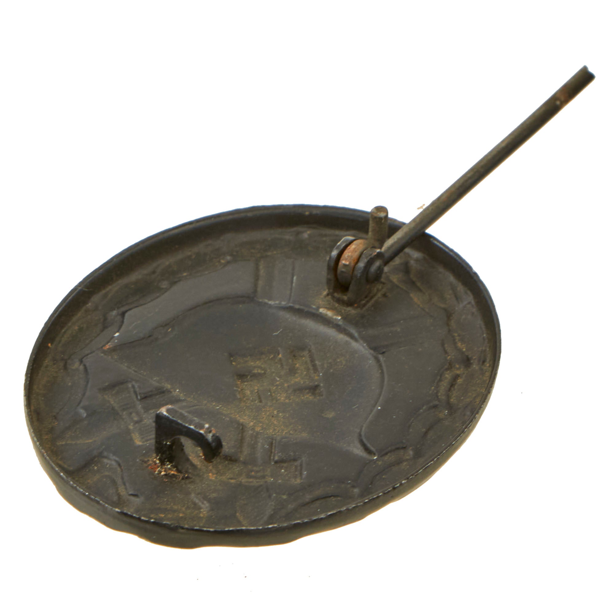 - Silver (2nd class): Awarded to those who were wounded three or four times. Early solid brass construction with most of the original silver wash worn away, showing some retained around the attachment pin on the reverse. The pin and catch are a bit bent, but still fully functional.