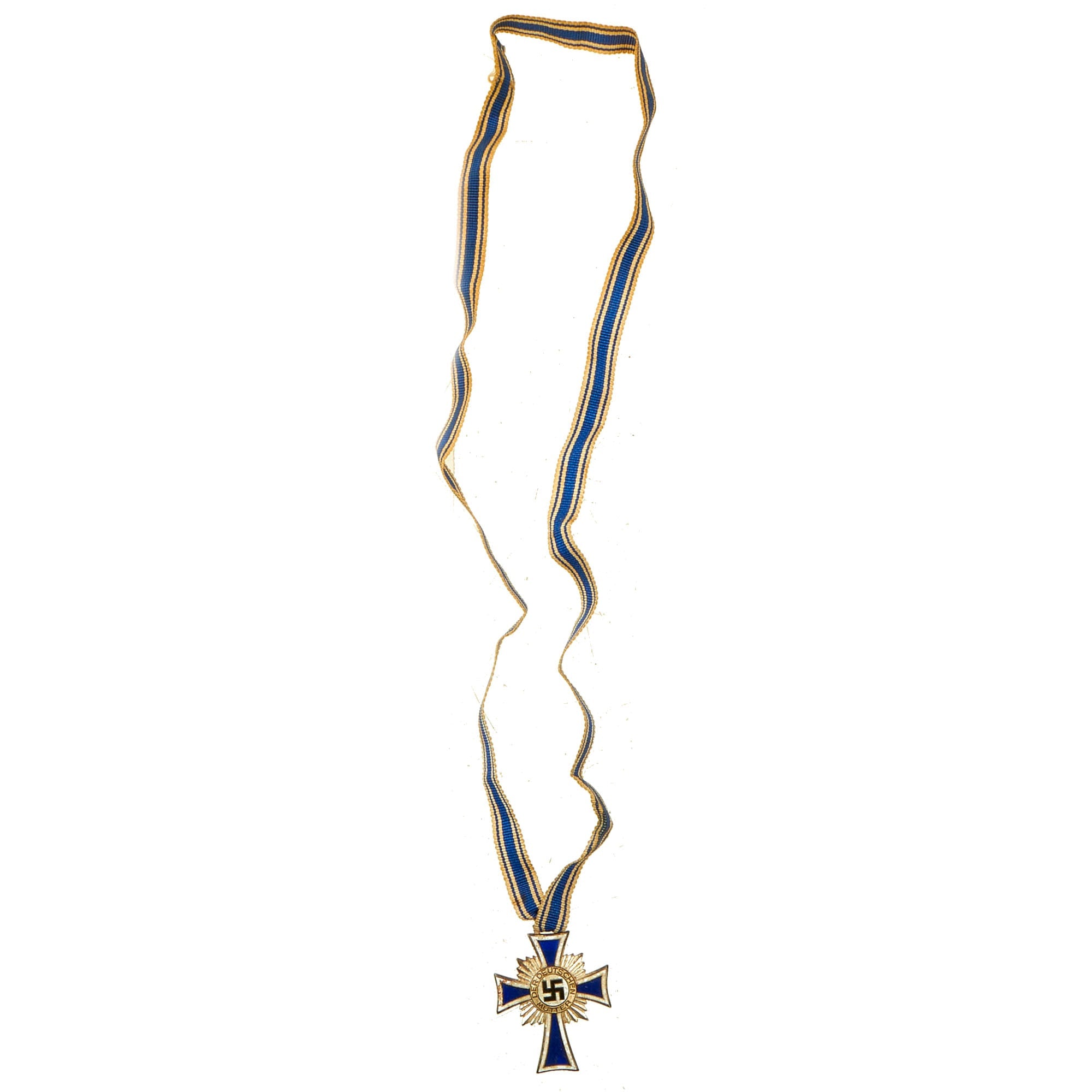 Original Item: Only One Available. This is a very good example of The Cross of Honor of the German Mother or Mutterkreuz (Mother’s Cross) in silver (2nd class, Silver Cross: eligible mothers with six or seven children). It comes complete with the original ribbon, which is threaded through the cross and stitched together at the ends.