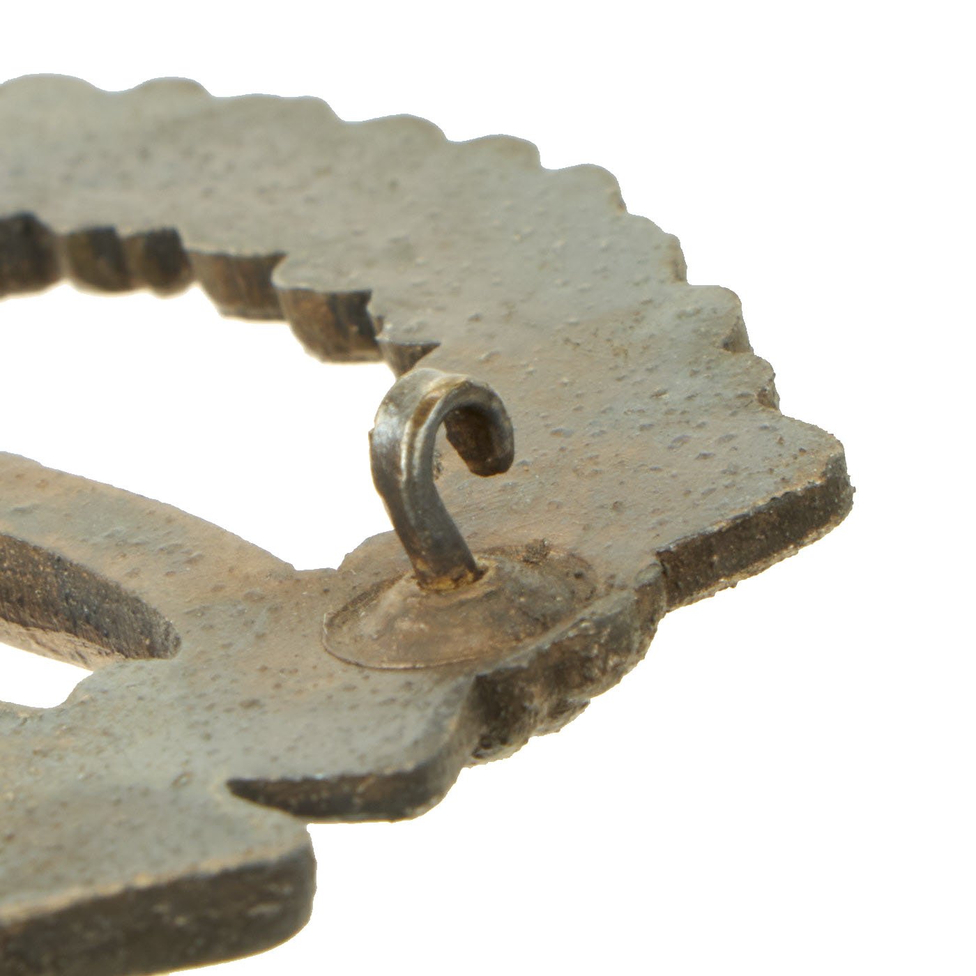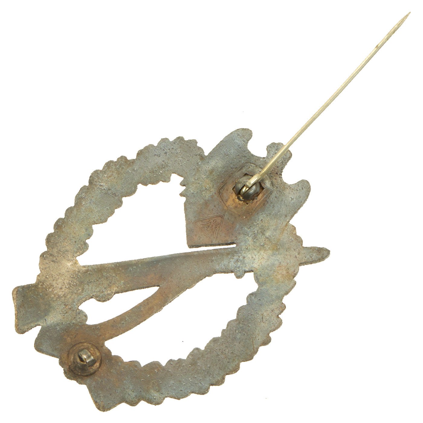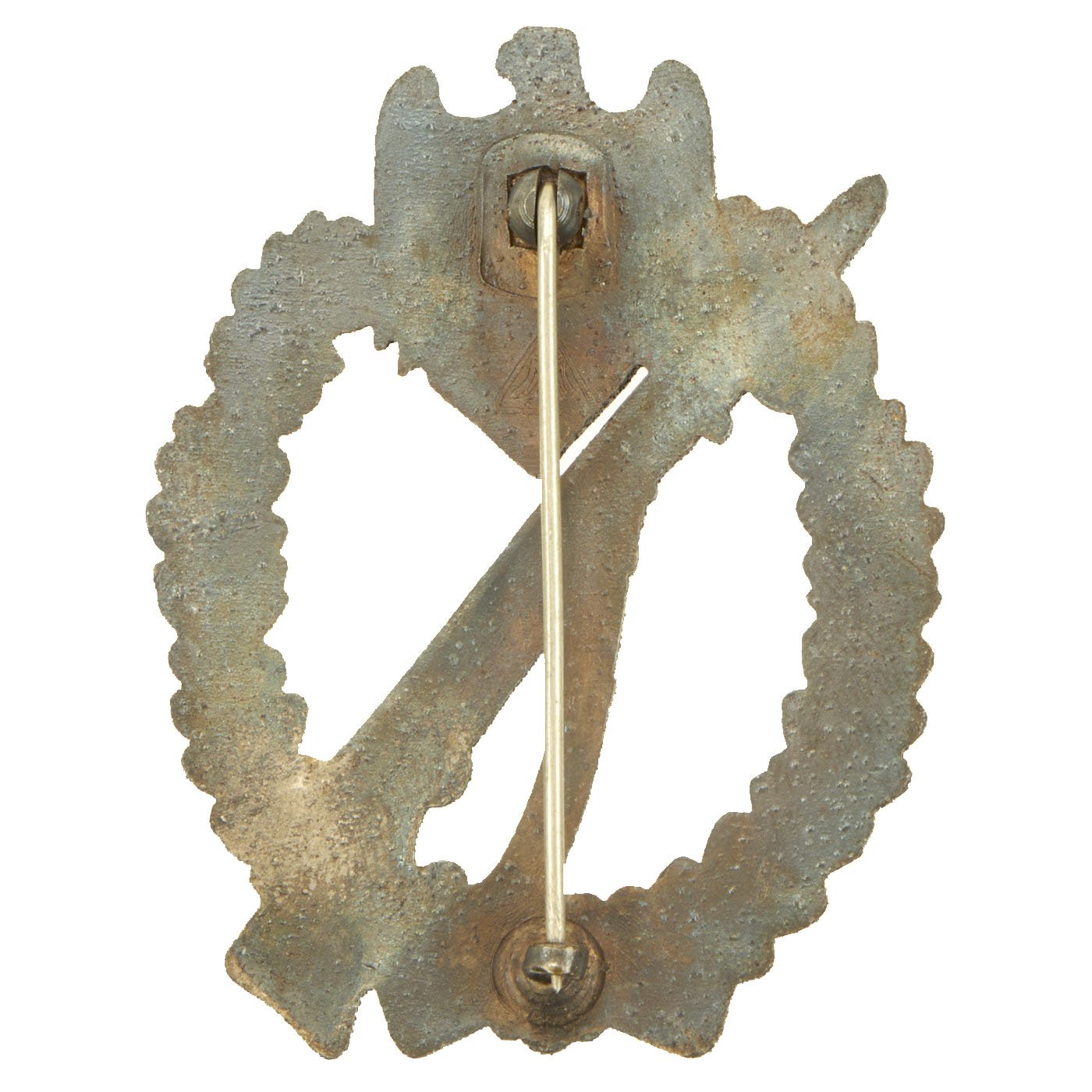 Original Items: Only One Available. Called in German a Infanterie-Sturmabzeichen in Silber, this genuine badge is constructed of silvered zinc. Over time, the silvering can wear and flake off, showing the oxidized base metal, which is zinc. This example has had almost all of the silver wash wear still present, now oxidized to a lovely dark patina.