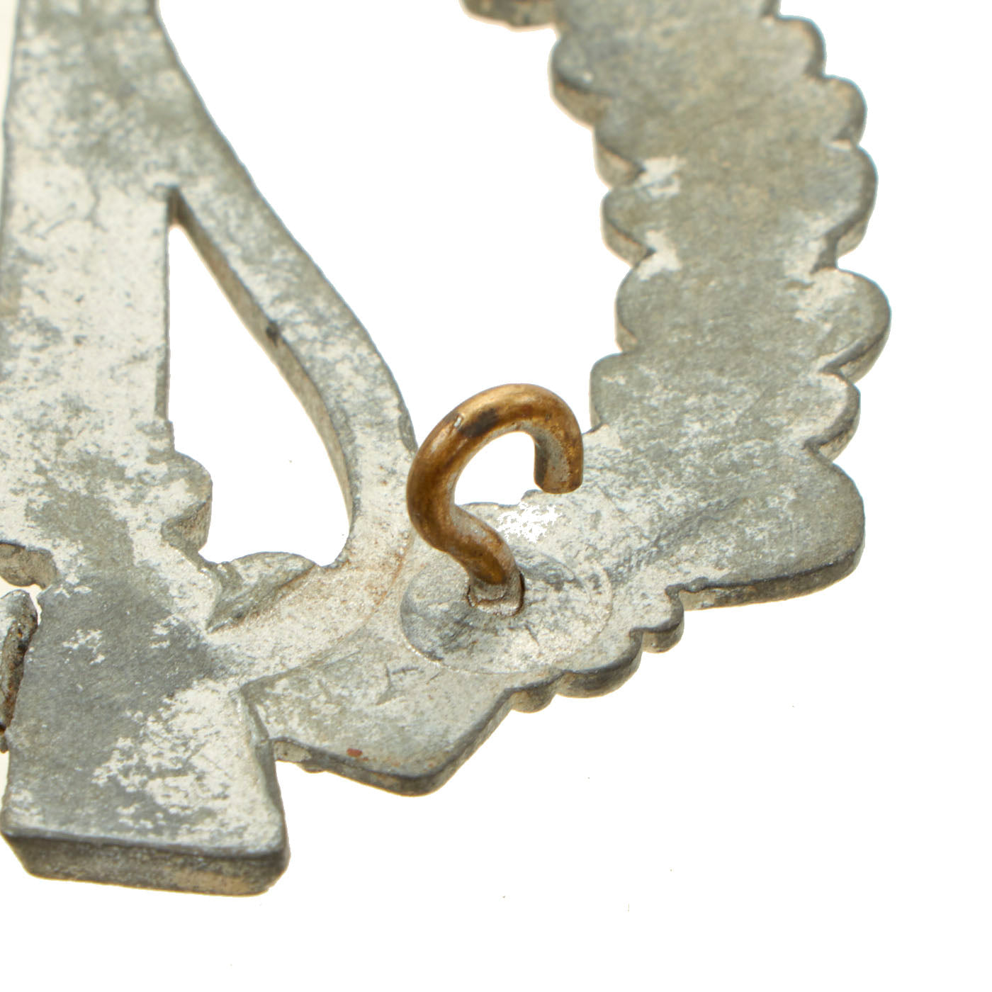 The Infantry Assault Badge (German: Infanterie-Sturmabzeichen) was a German war badge awarded to Waffen-SS and Wehrmacht Heer soldiers during the Second World War. This decoration was instituted on 20 December 1939 by the Commander-in-Chief of the German Army, Generalfeldmarschall Walther von Brauchitsch. It could be awarded to members of non-motorized Infantry units and units of the Gebirgsjäger that had participated in infantry assaults, with light infantry weapons, on at least three separate days of battle in the front line on or after 1 January 1940. When a counter offensive led to fighting, it could also apply. Award of the Infantry Assault Badge was authorized at regimental command level.