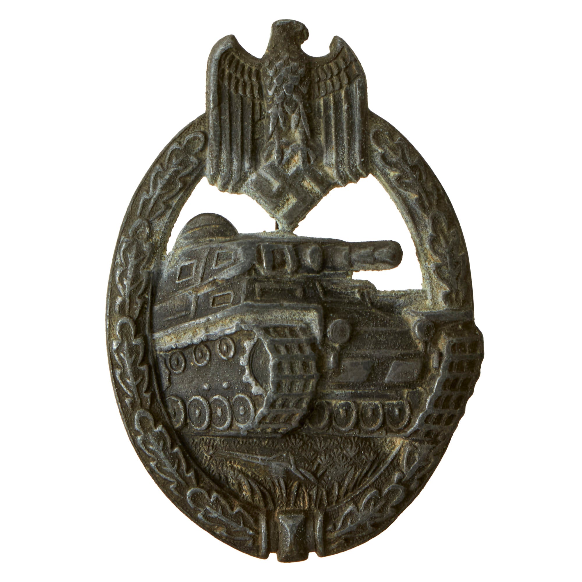 Original Items: Only One Available. The Panzer Badge (German: Panzerkampfabzeichen) was a World War II German military decoration awarded troops in armored divisions. The Panzer Badge was introduced on 20 December 1939, in order to recognize the achievements of Panzer personnel who took part in armored assaults. It was designed by the Berlin firm of Wilhelm Ernst Peekhaus, and was instituted by order of Generaloberst Walther von Brauchitsch. On 6 June 1940, a separate class of the badge, in Bronze, was added in order to recognize the crews of armored vehicles other than tanks. The award document that came with it was the common type that had the particulars of the recipient (rank, name) and the authorizing signature of an officer. The Panzer Badge was worn on the left tunic pocket. The bronze version of the Panzer Badge was authorized for armored personnel and Panzer grenadier units equipped with armoured vehicles. It was also to be presented to members of armored reconnaissance groups and rifle battalions of Panzer divisions. The authorization of these badges was usually done at a regimental or divisional level.