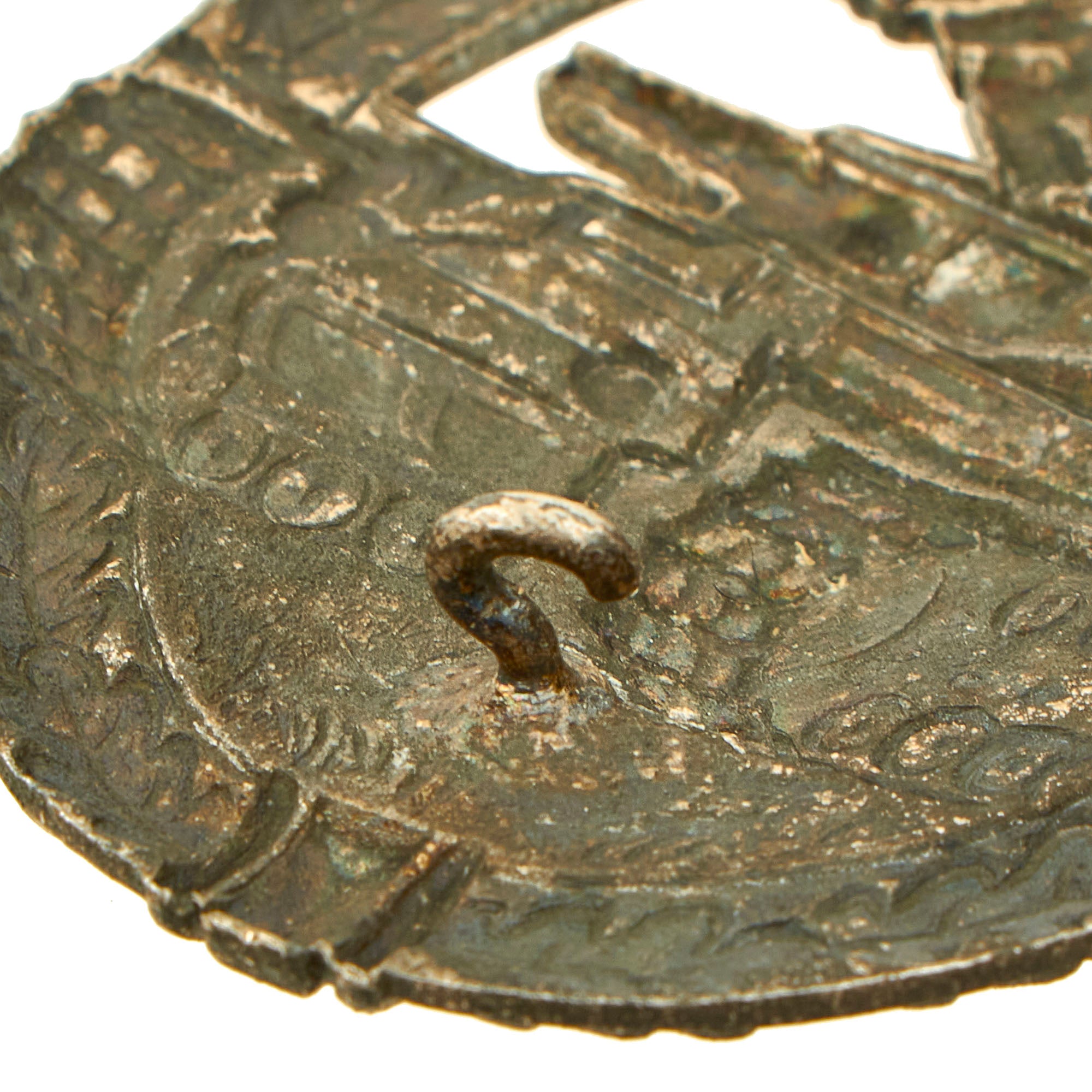 The reverse is a plain stamped "hollow back" design, and does not have a maker mark on it, which is not uncommon for later war badges. Close examination of the details may be able to attribute it to a maker.