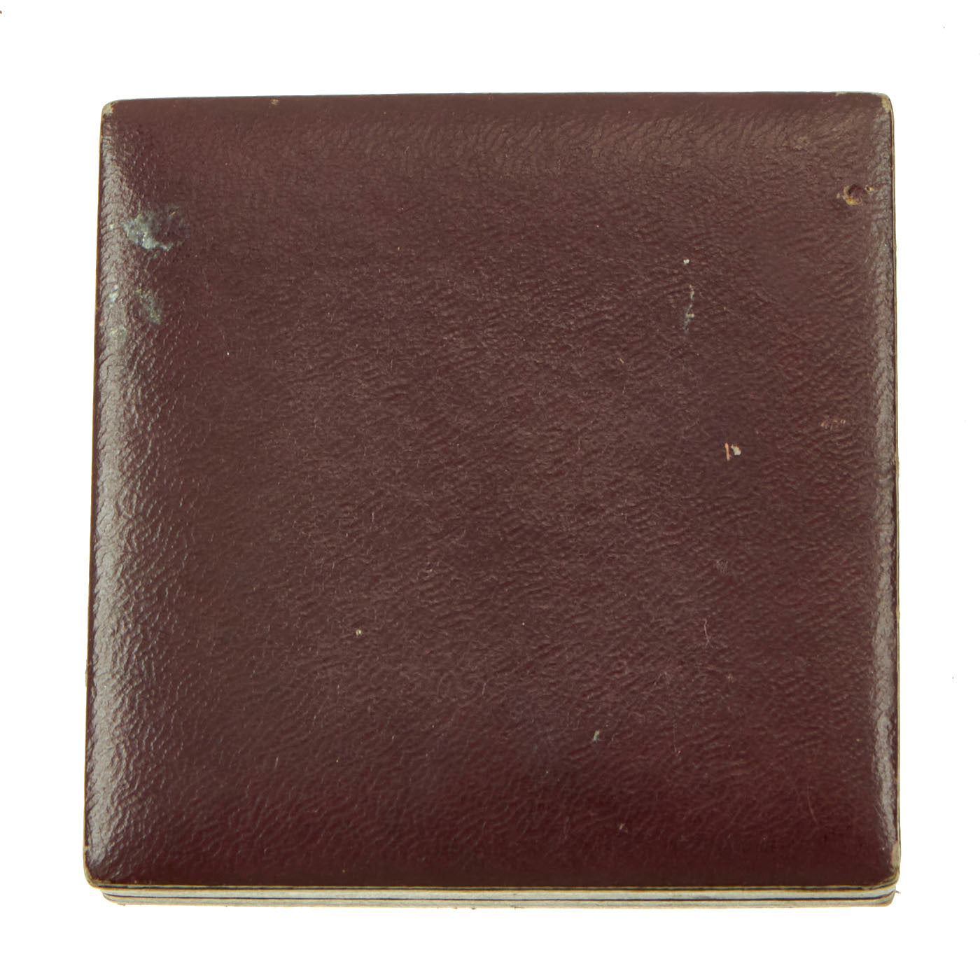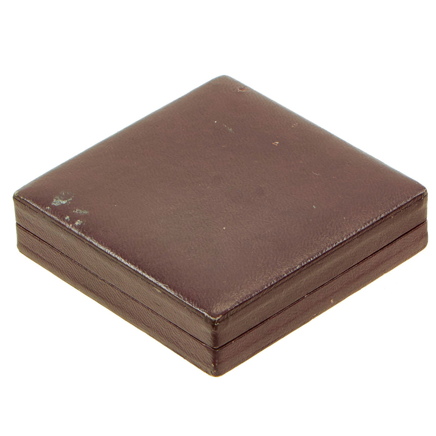 The included LDO marked box is also in very good condition, with a lovely maroon faux leather exterior. This version of the box has a fabric hinge, and does not have any closure clip. The inside is maroon velvet on the bottom with an inset for the pinback of the award. The inside lid is marked with a faced gold LDO logo, which stands for Leistungsgemeinschaft Deutscher Ordenhersteller (Guild of German awards manufacturers). The reverse is marked with L/11 for Wilhelm Deumer of Lüdenscheid.