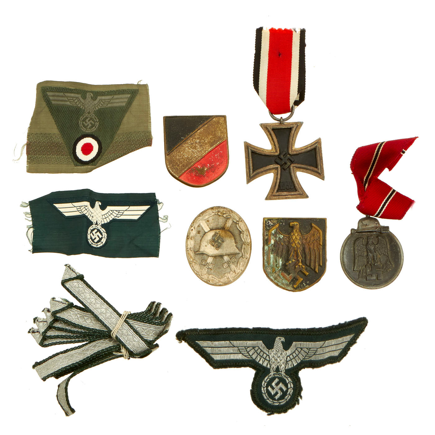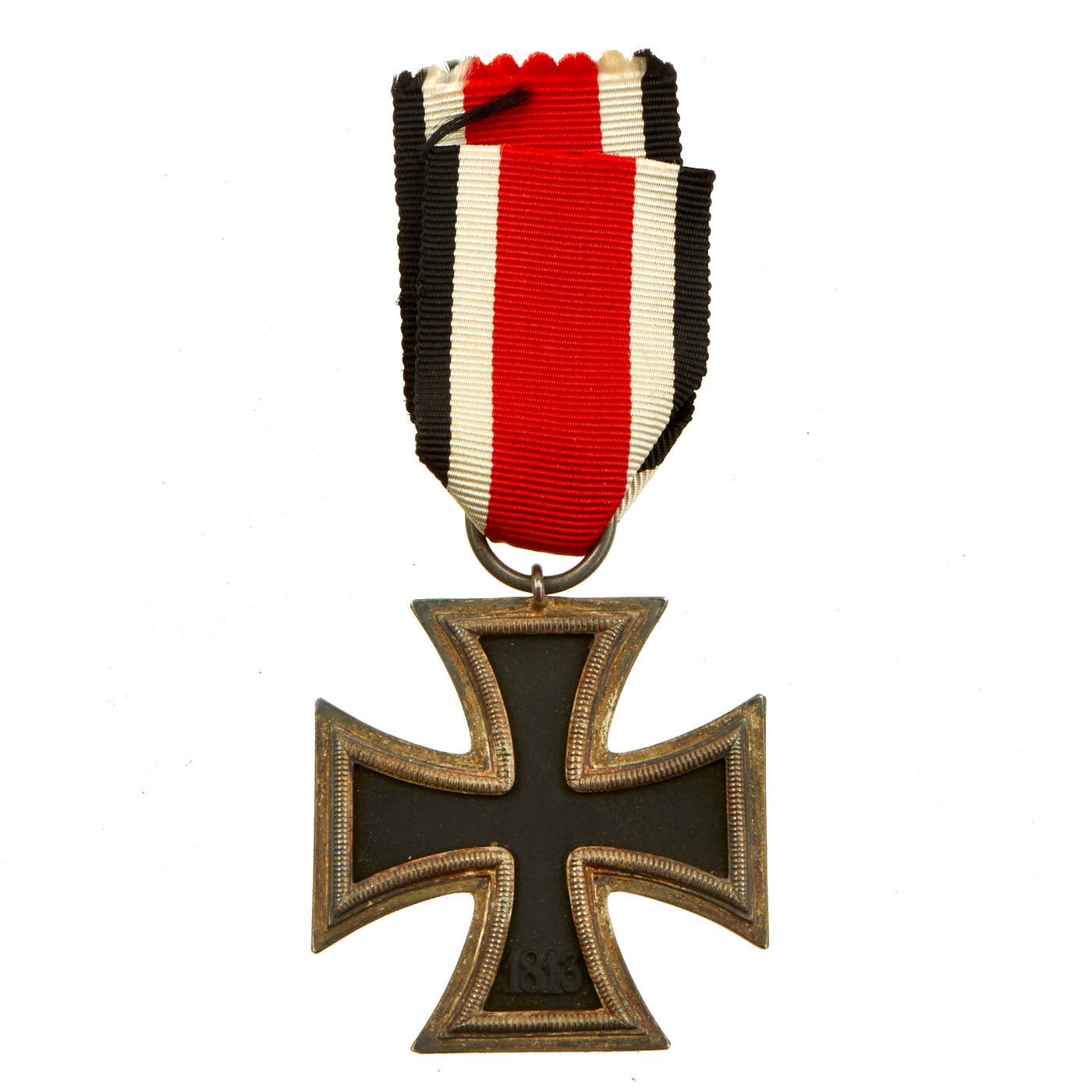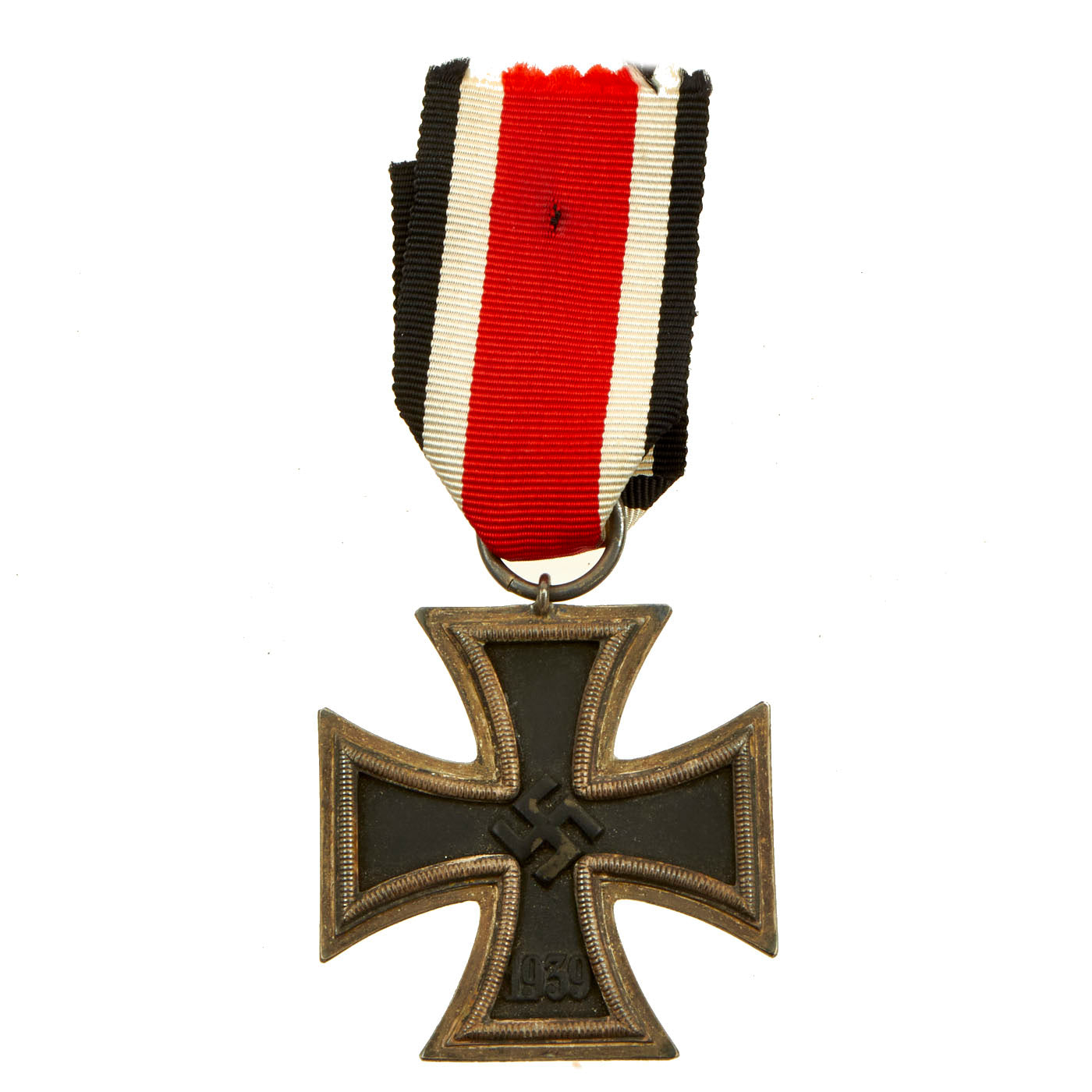 - 1939 Iron Cross 2nd Class (EK2) With Ribbon: This is a lovely condition medal with signs of wear. The silvered edges have a beautiful patina to them with minor crazing and oxidation to the black painted center. The inner section is loose on the frame. A wonderful example!