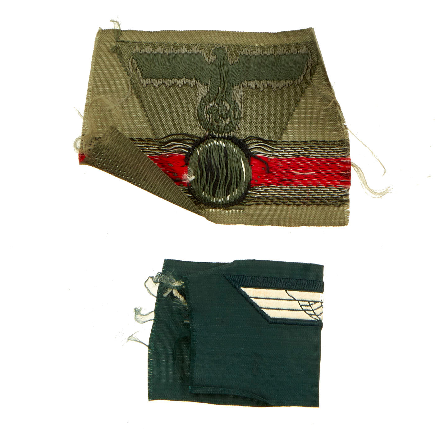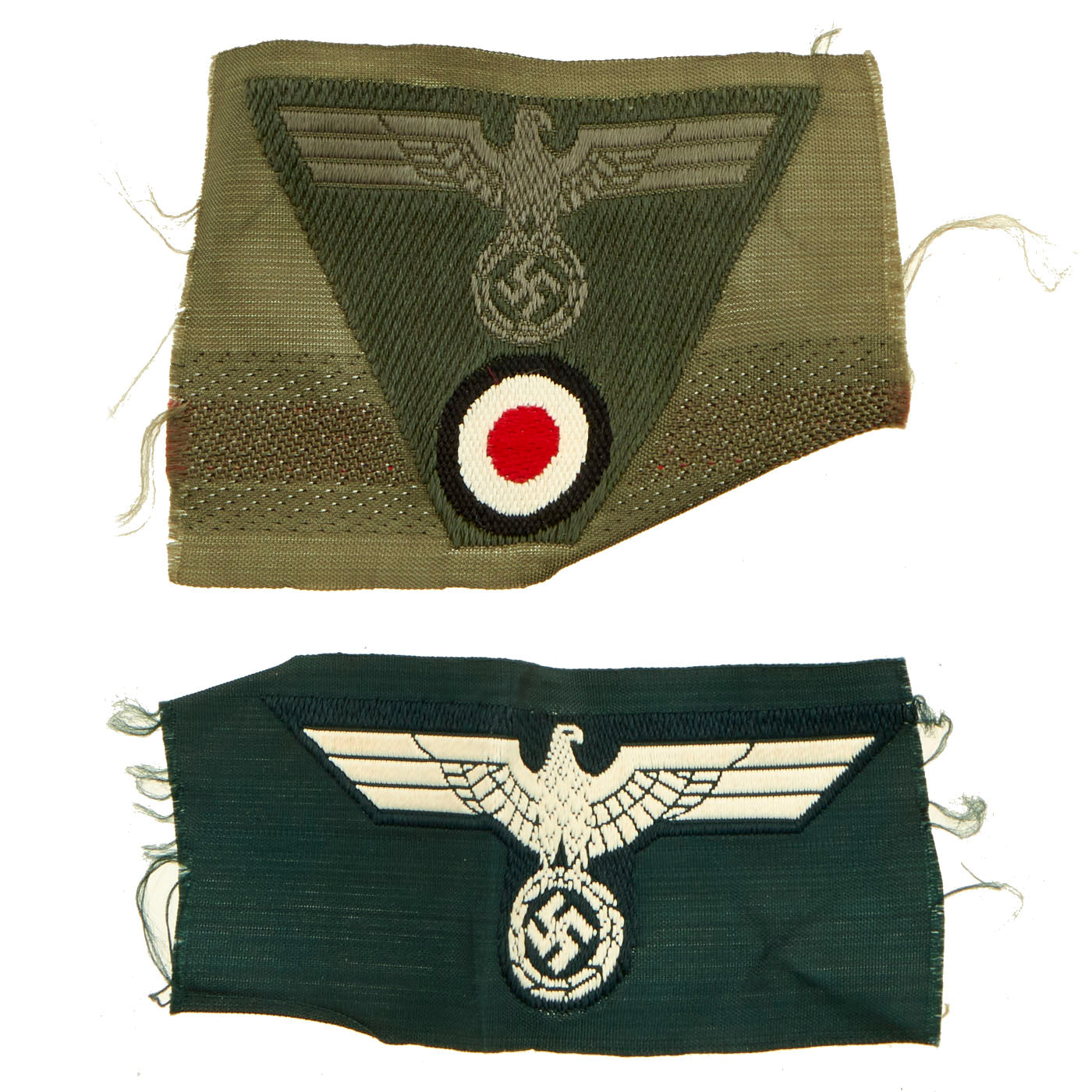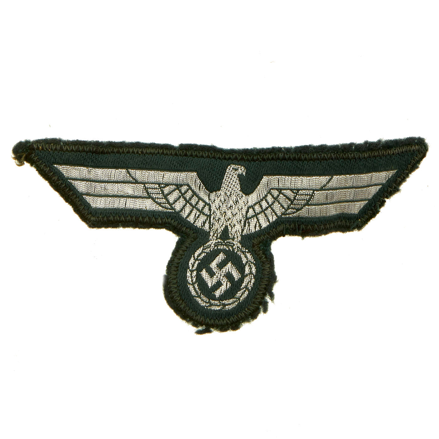 - Heer Army Wehrmacht BeVO Wehrmacht Adler Trapezoid Eagle and Cockade Patch: In unissued condition. Correct gray thread with a green background.