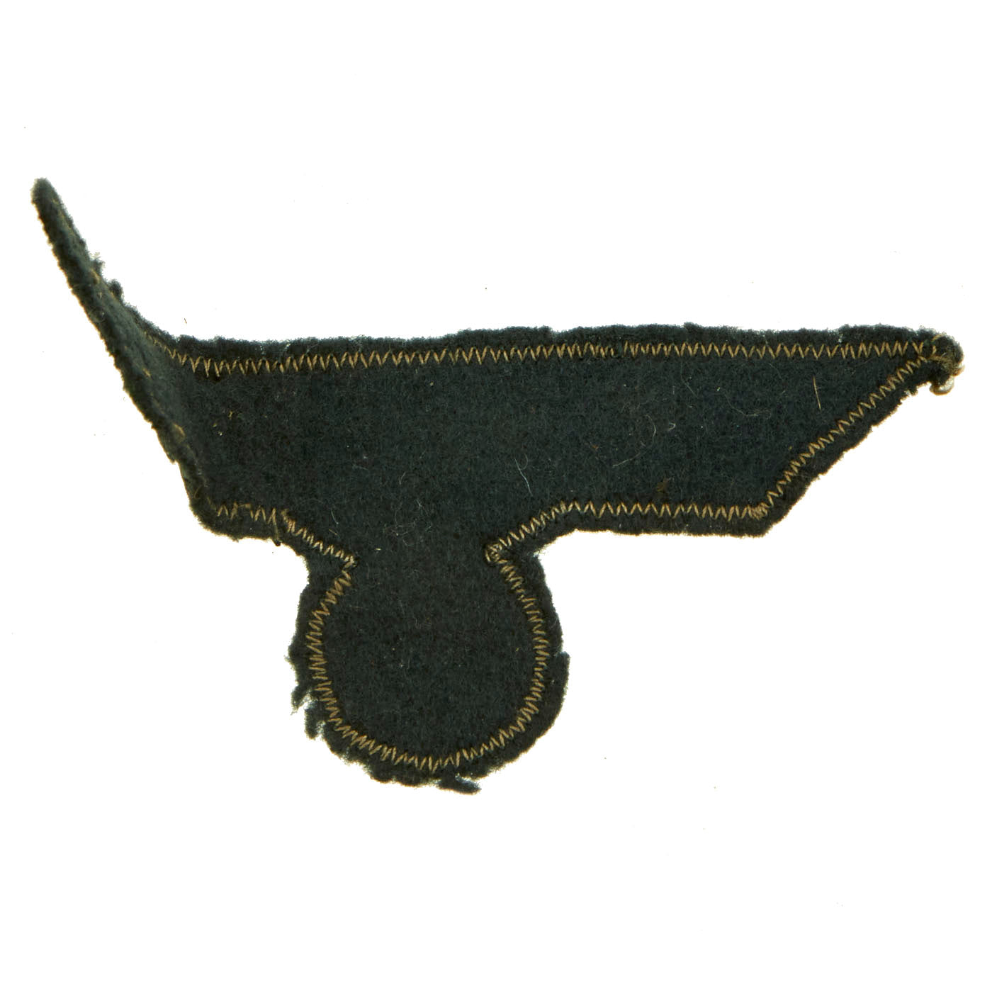 - Unissued Wehrmacht Breast Eagle: Bottleneck green felt background with a lovely silver flat wire eagle.