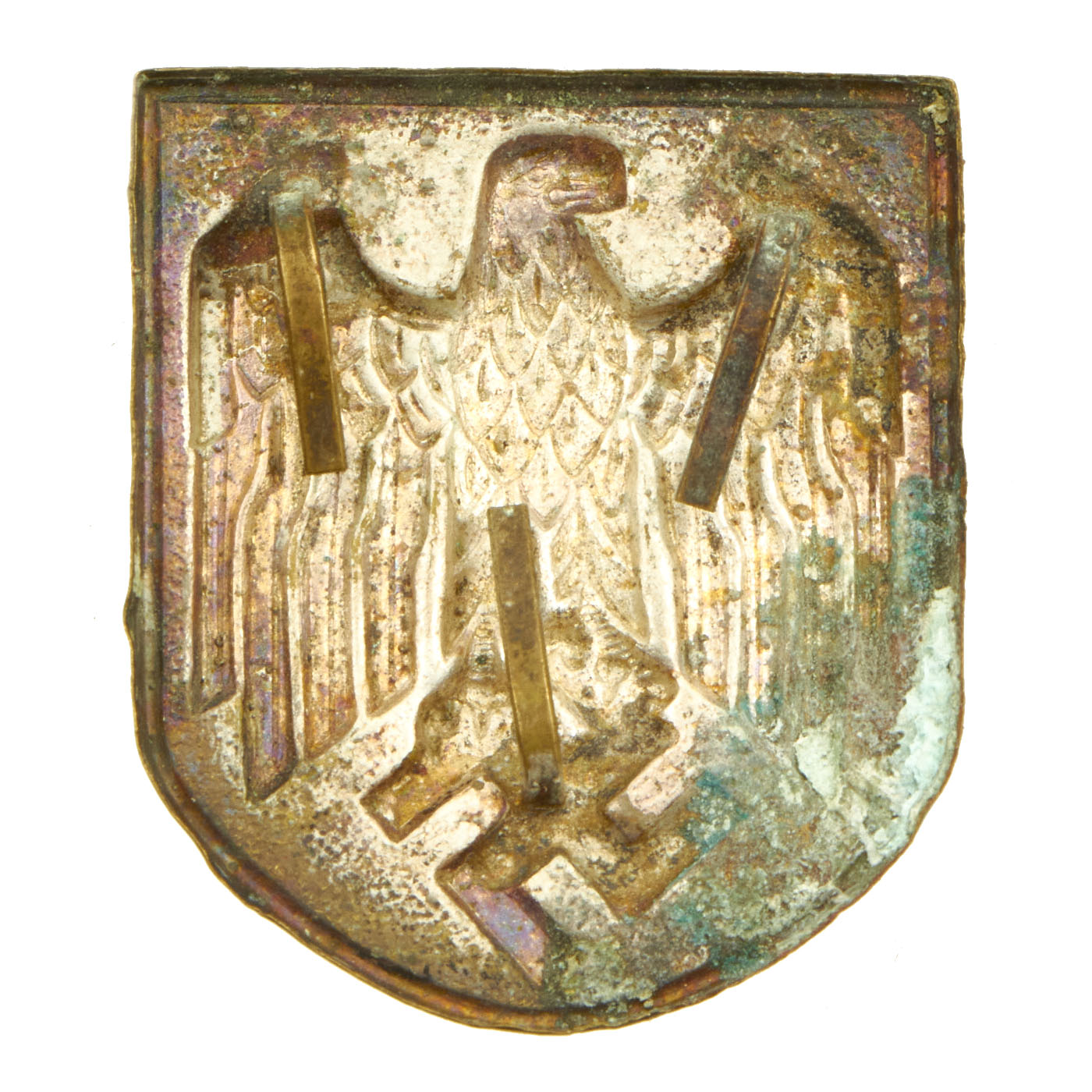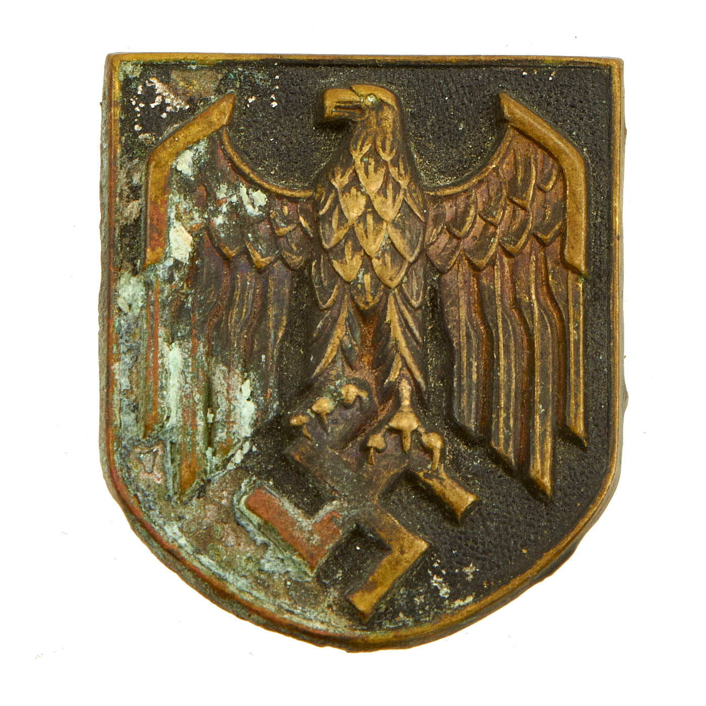 - Unissued Wehrmacht Cap Eagle: Uncut example but there is a wing tip missing from when this piece was cut from the factory sheet.