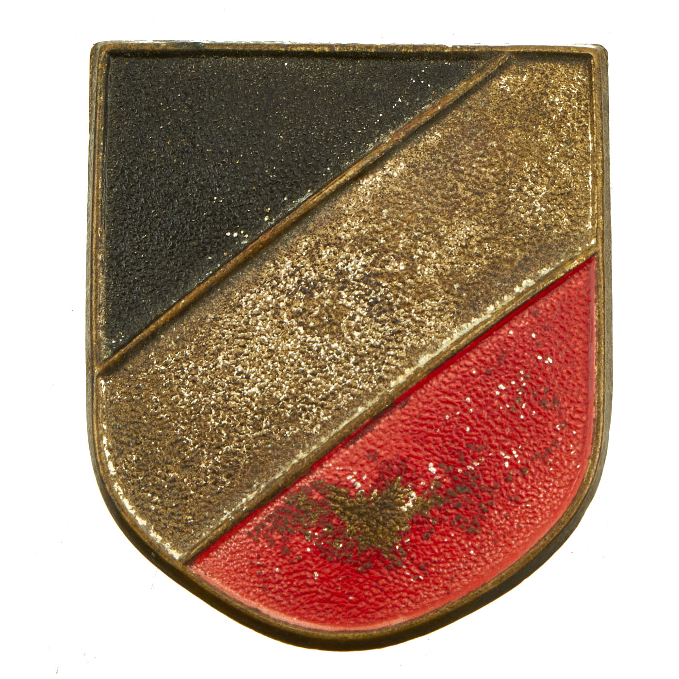 - Afrika Korps Pith Helmet Badges (2): This is a lovely pair of a Heer Army and National Colors shields as seen on the ever so popular sun helmets worn by the German Afrika Korps of WWII. The shields retain much of their original colors, but they do have minor paint loss. The Heer eagle shield has some verdigris and build up on the left side. The details are silvery clear.