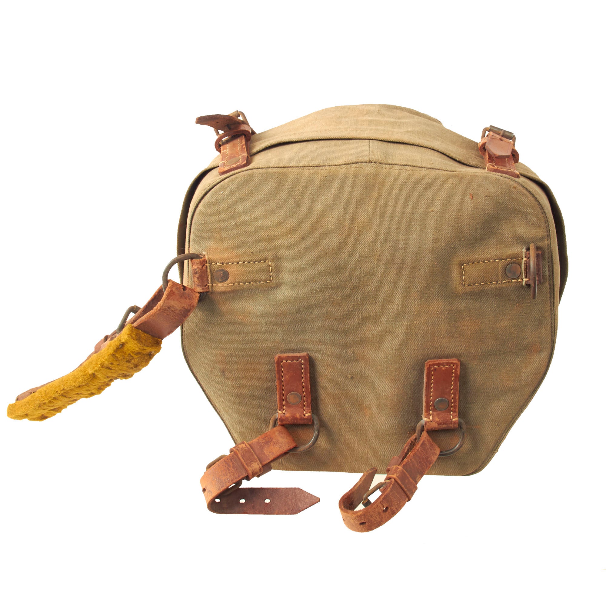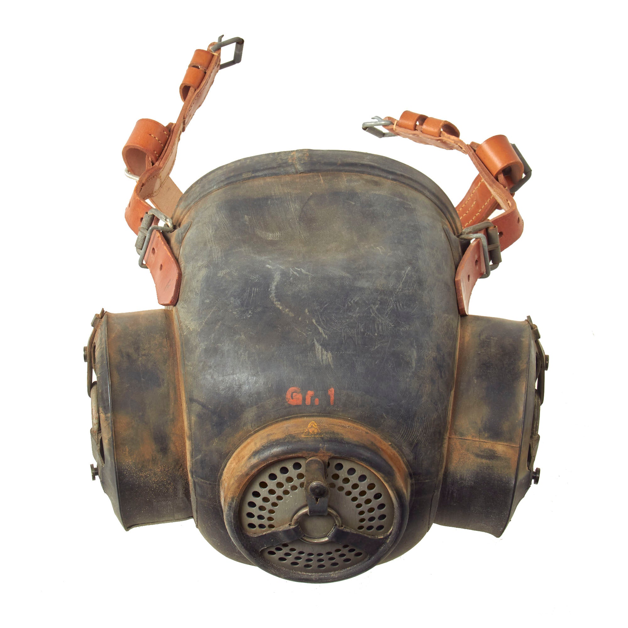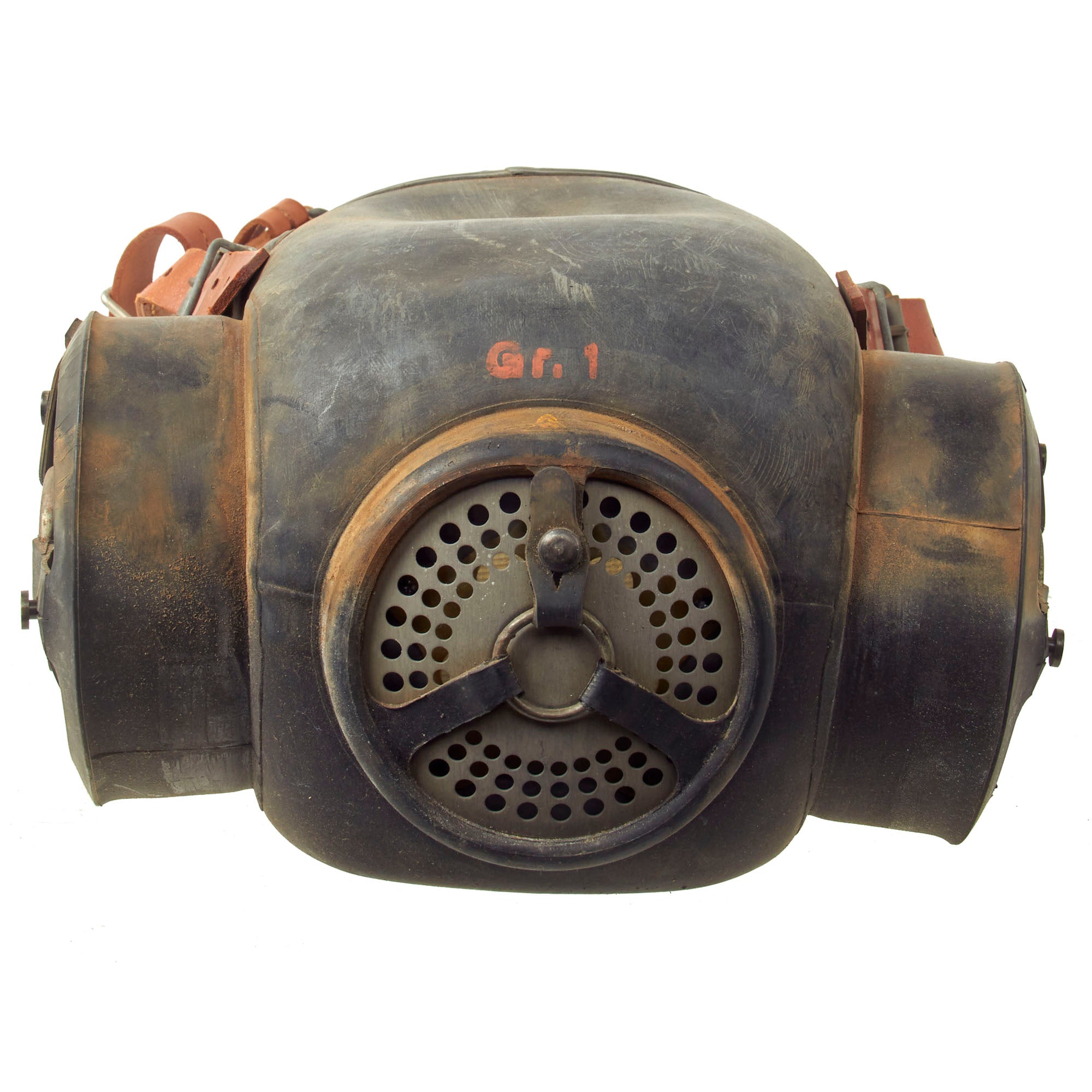 Original Item: Only One Available. This is a wonderful example of an extremely difficult to find German gas mask from WWII. This gas mask was used on the various types of horses and mules that were “employed” by the German military during WWII. Horse gas masks were first used during World War I to protect horses from harmful chemical agents. Horses were the primary mode of transporting men and material to war zones and needed protection from irritating chemicals like chlorine and phosgene, used during that time. Like most horse respirators, this mask was probably used in conjunction with a gas proof cape and leggings.