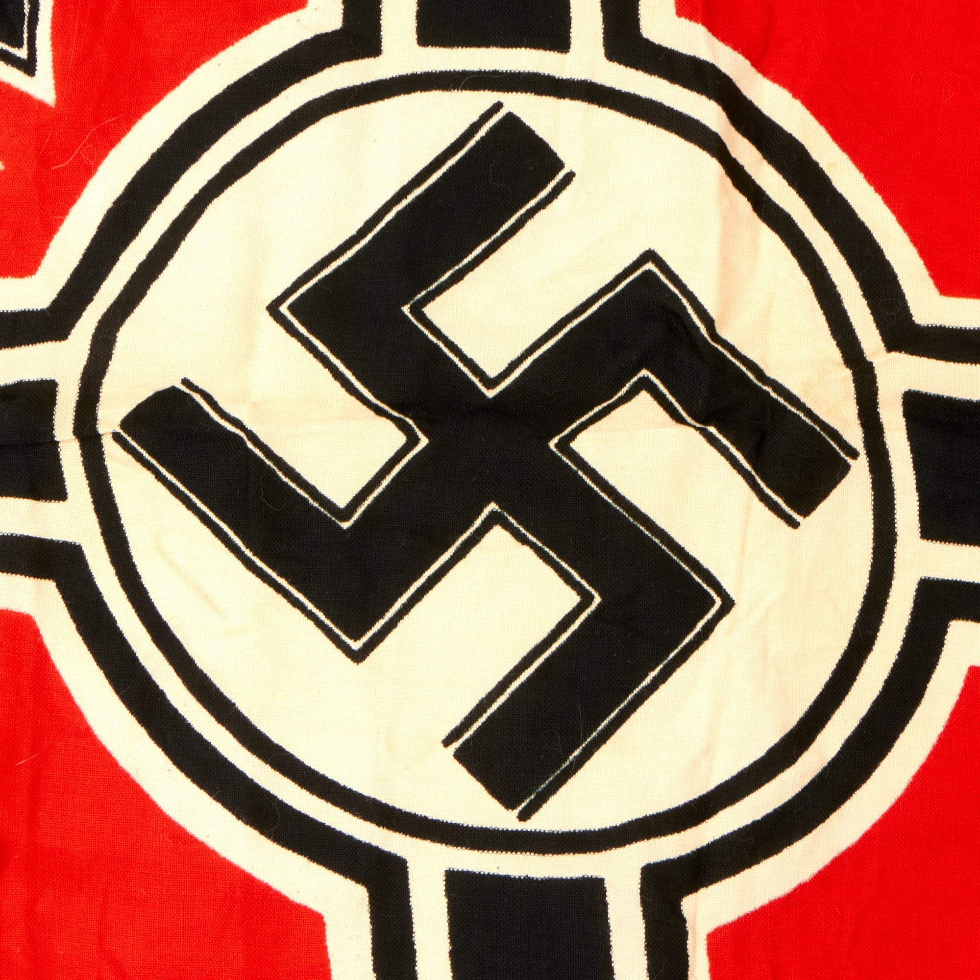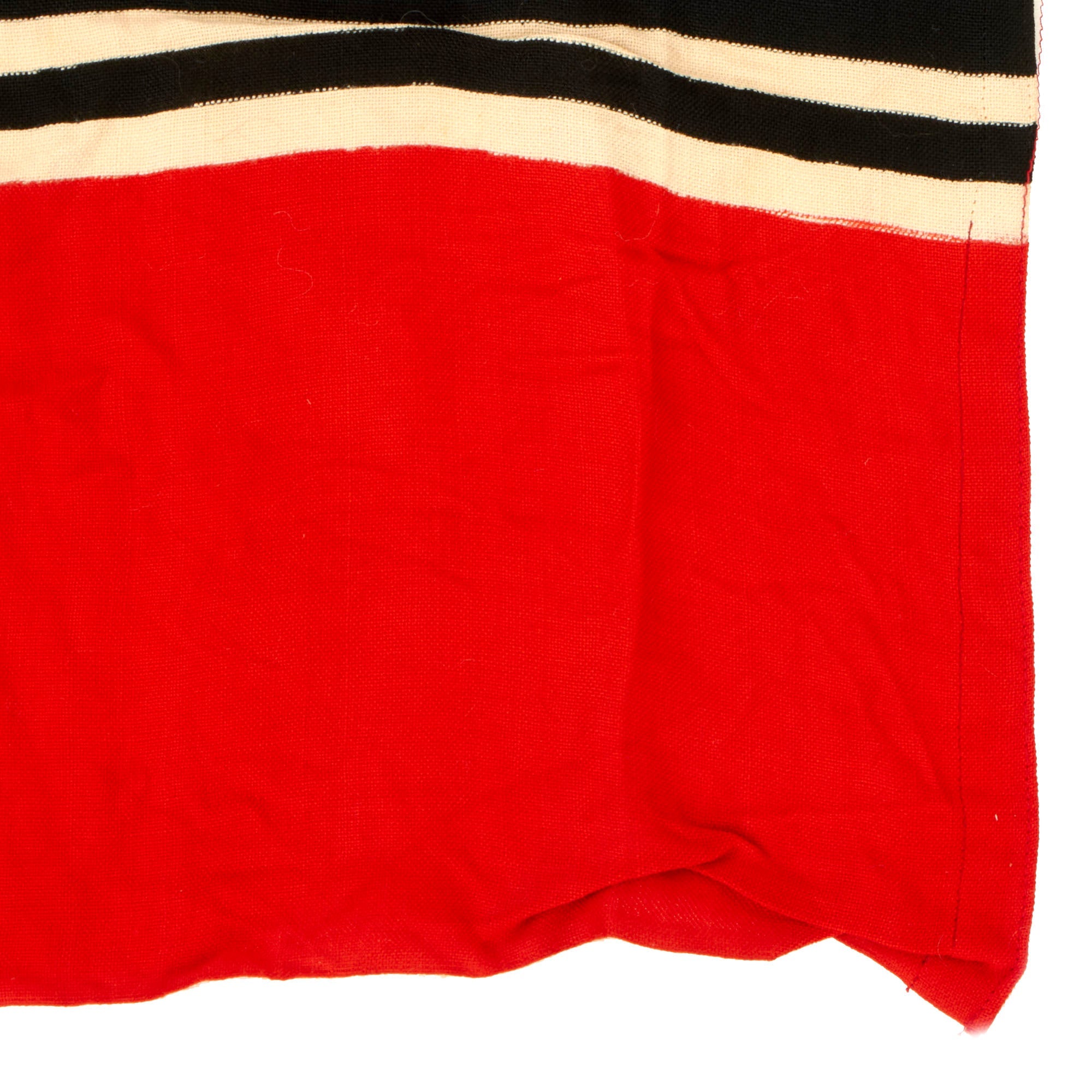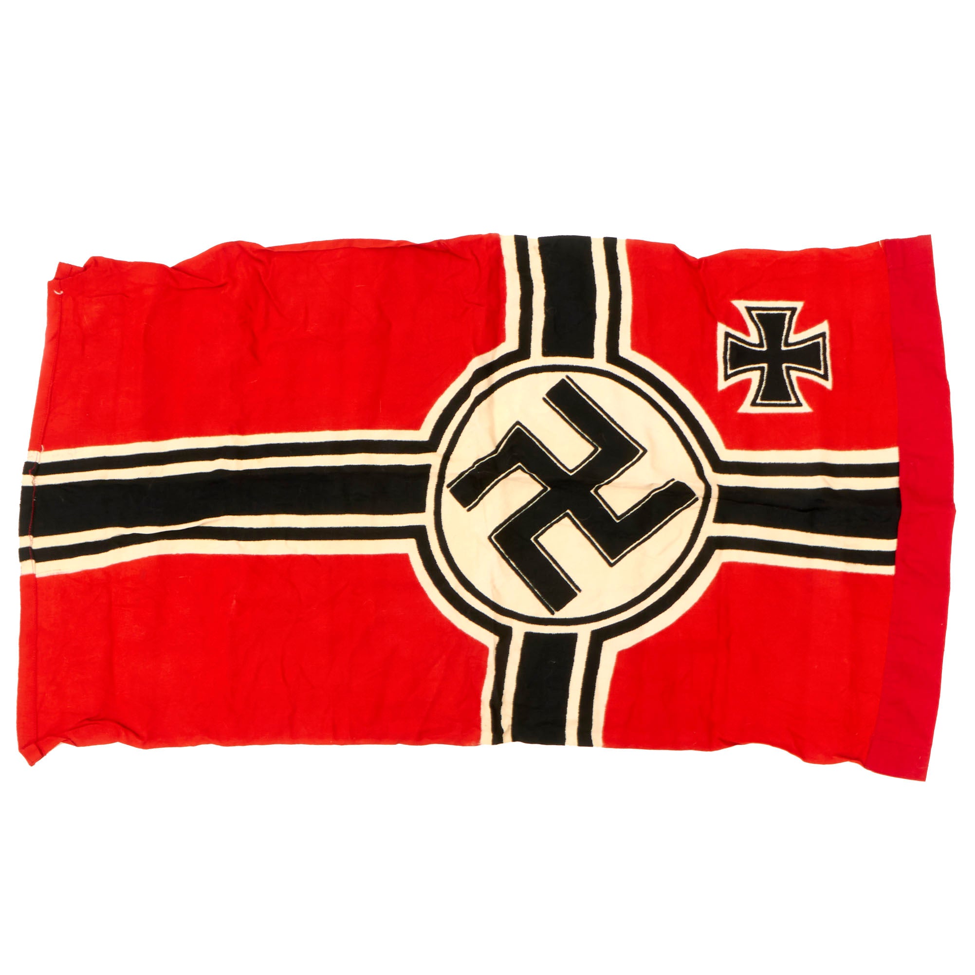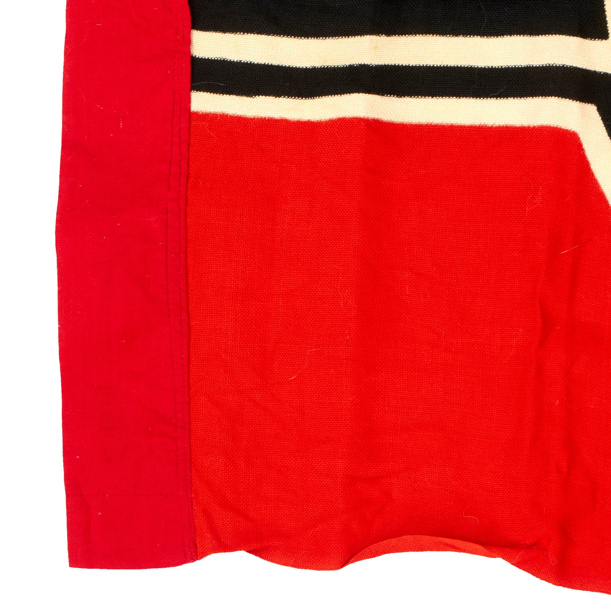 Original Item: Only One Available. Reichskriegsflagge (Imperial War Flag) was the official name of the war flag and war ensign used by the German armed forces from 1933 to 1945. This included the Heer, Luftwaffe, and Kriegsmarine, as it was a National flag. Recently acquired at a military show, this is without a doubt the most impressive battle flag of the German WW2 era. This small measures approximately 50cm x 85cm (not counting the header), which is approximately 19.7in. x 33.5in..