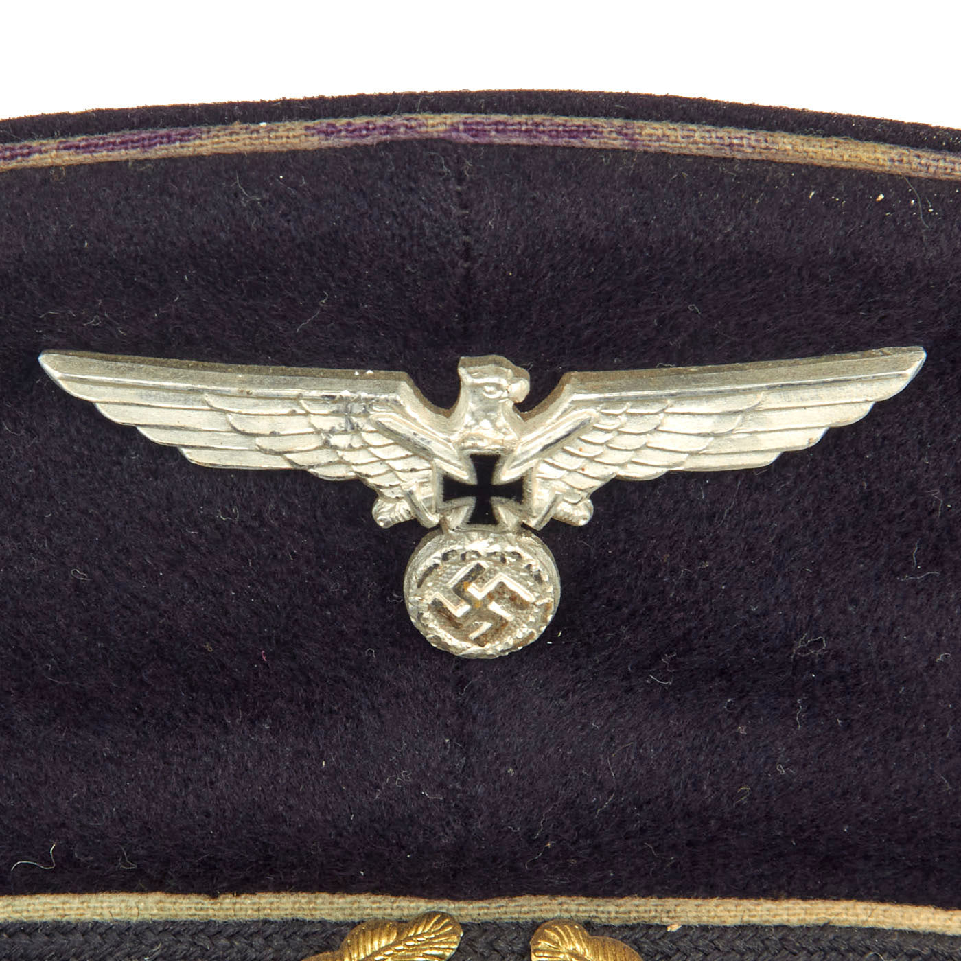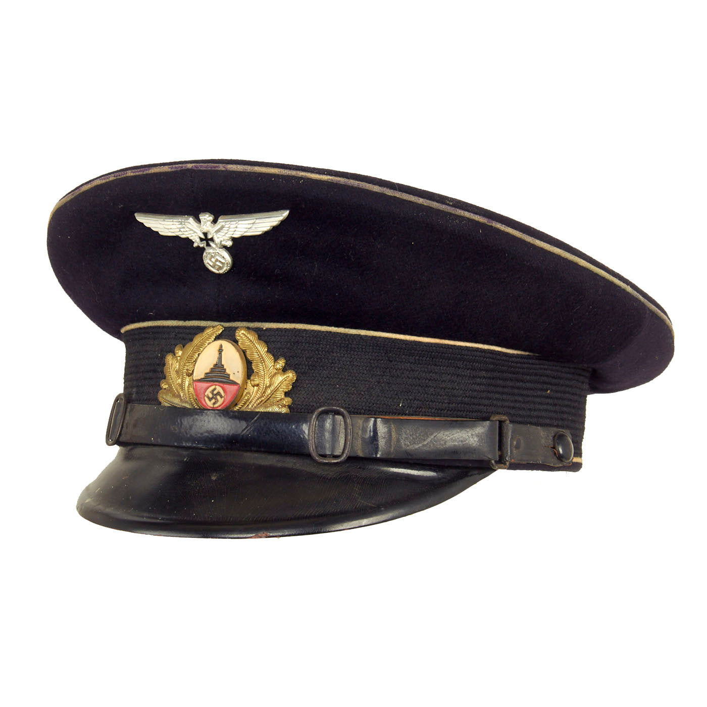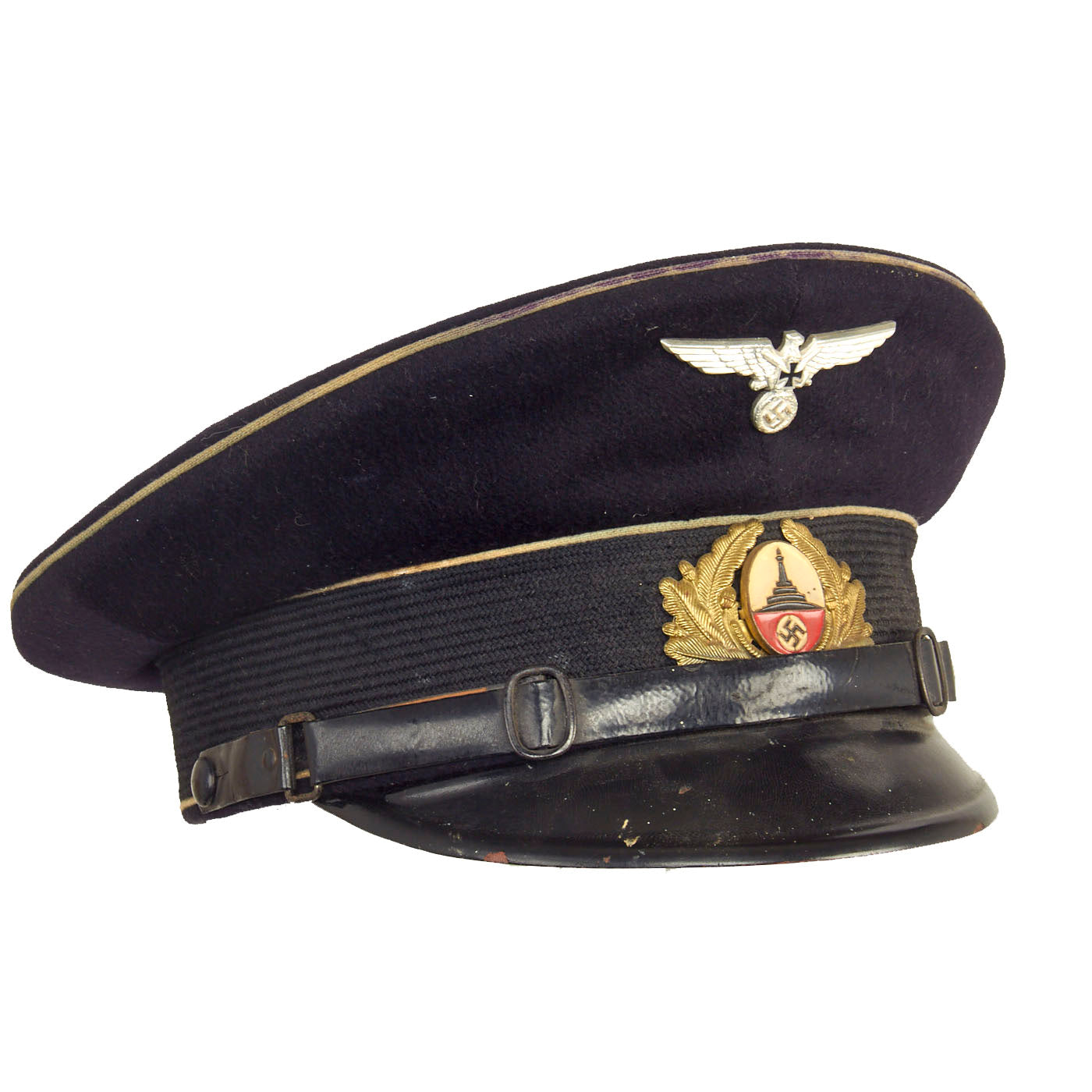 The visor cap (Schirmmütze) was an important part of the headgear worn by German uniformed military, civil, paramilitary and political organizations during the Third Reich. This was the standard cloth headgear worn as a part of the service uniform. Visor caps were worn outdoors as well as indoors, and were often required to be worn by all personnel on duty. Visor caps were made in versions specific to each organization and were often further differentiated through the use of insignia, colored piping, or style of chin cord, to indicate rank, role or branch. The insignia used on these caps ranged from simple stamped metal emblems, to elaborate hand embroidery. Visor caps were issued to enlisted soldiers and NCOs in the military and in some other organizations. Officers had to purchase their own hats, and lower ranks could choose to purchase caps that were of a higher quality than the rather basic, issue examples. The private purchase caps were generally made in very high quality, with fine materials. A wide variety of fabrics were used, from Trikot and doeskin, to heavy wool, or even lightweight white fabric for summer wear. In the military, issue of these caps was generally suspended shortly after the outbreak of the war, but they continued to be worn by some troops until the end of the war.