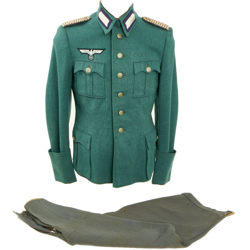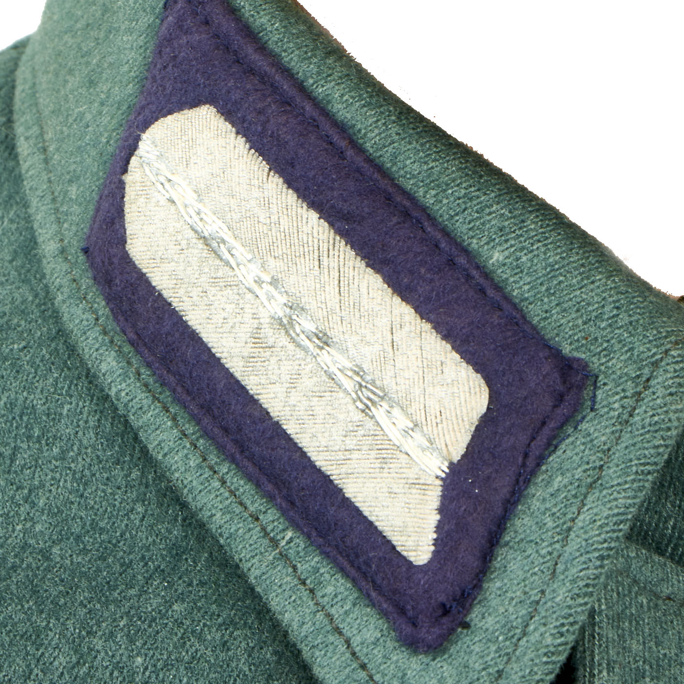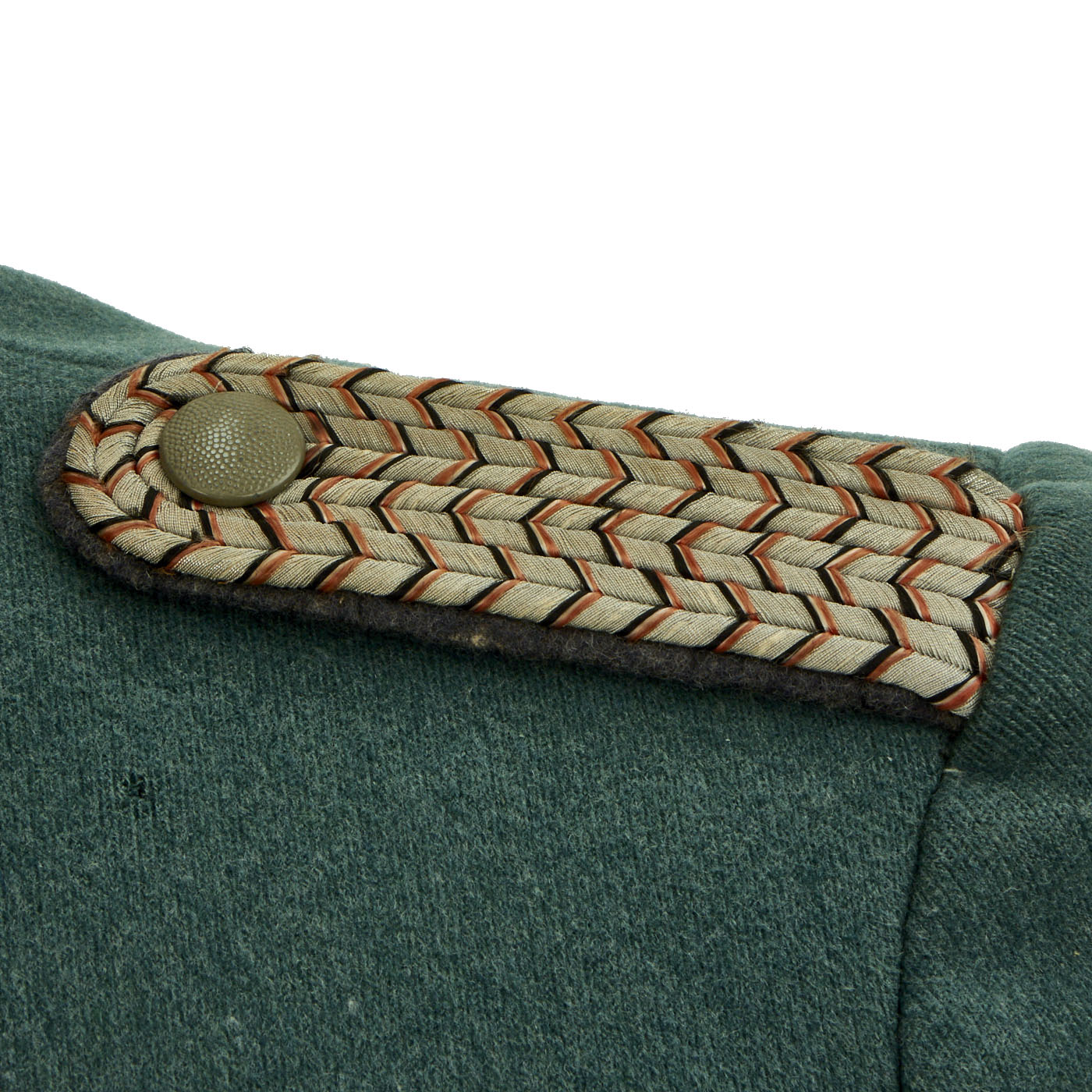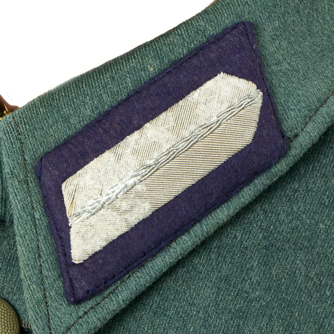 Condition of the tunic is very good, showing little wear around the collar, and just a few moth nips and repairs overall. The color is very well retained, and there is just a bit of oxidation on the silver bullion litzen. There are thread loops on the left breast pocket, so the original owner must have been awarded some type of medals during their service, or possibly had some from WWI service.