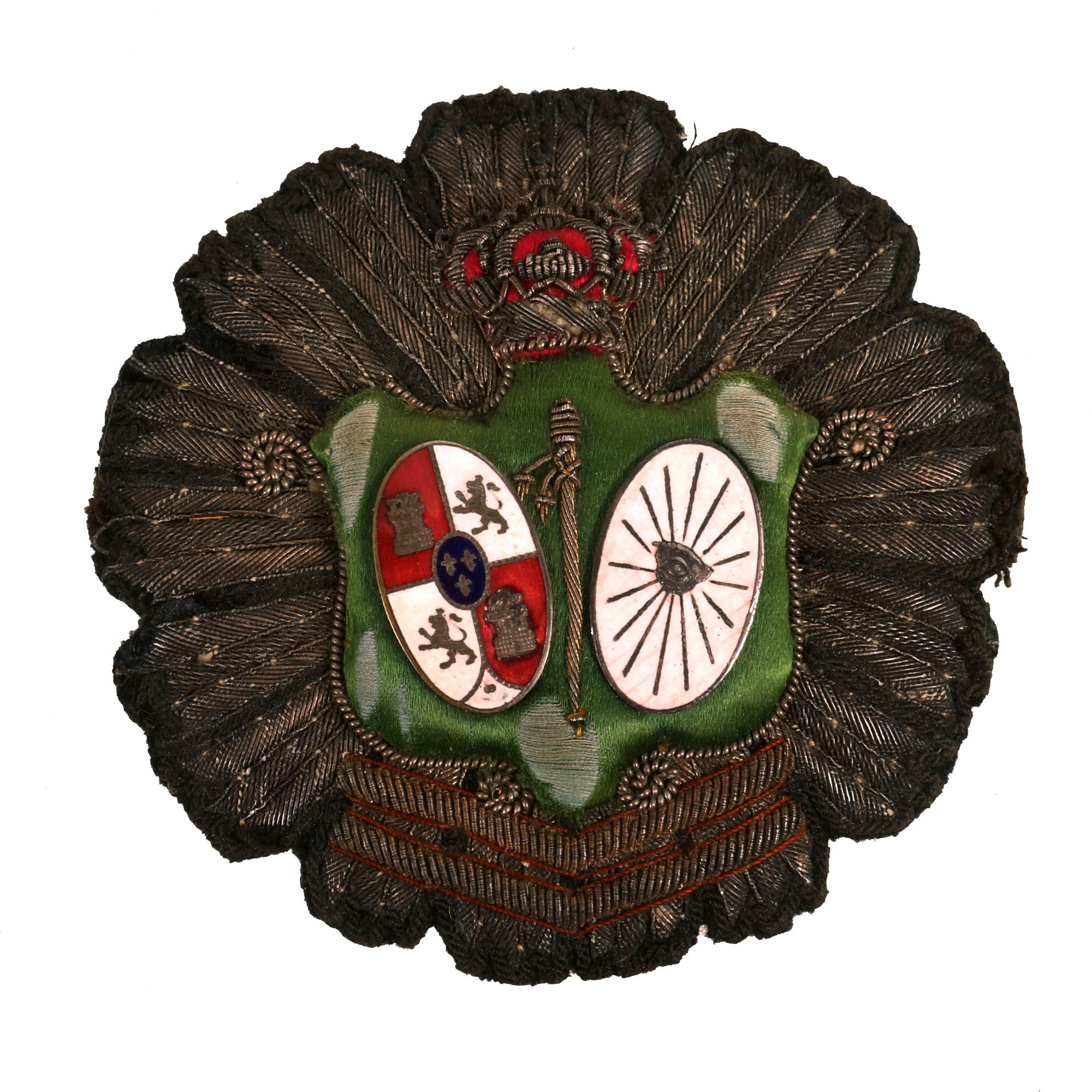 ● One gorgeous bullion Spanish Alfonso XII Security breast badge, with oil-cloth backing and 38 stamped on the gilt back. Pin-back. Phenomenally rare.