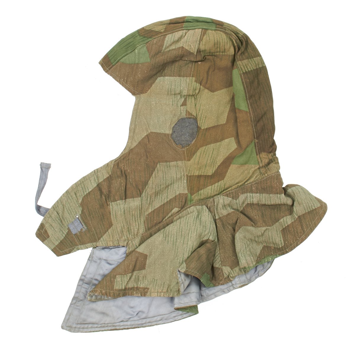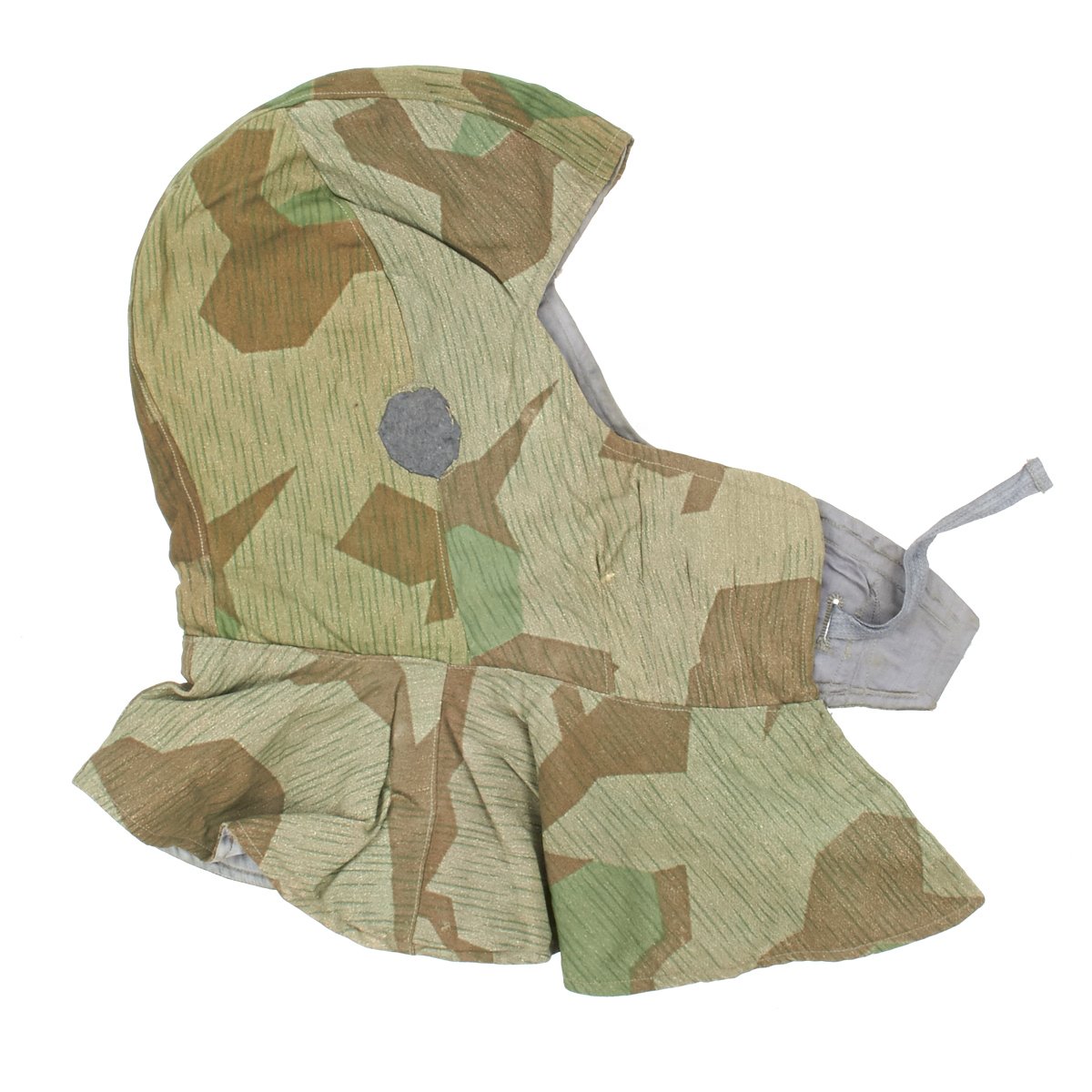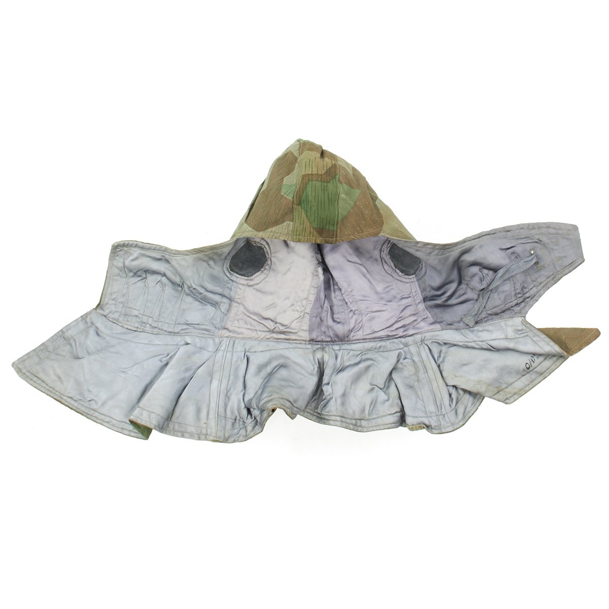 The M43 fur-lined winter parka was designed in mid 1943 and featured with a full length button up front closure, it was introduced in early 1944. This Italian camouflage M43 Khakrov parka was made from spare fabric that the Germans liberated from Italian Army camps. The Khakrov Parka was so named as it was used by SS units fighting in the Cold winter of the Russian front .