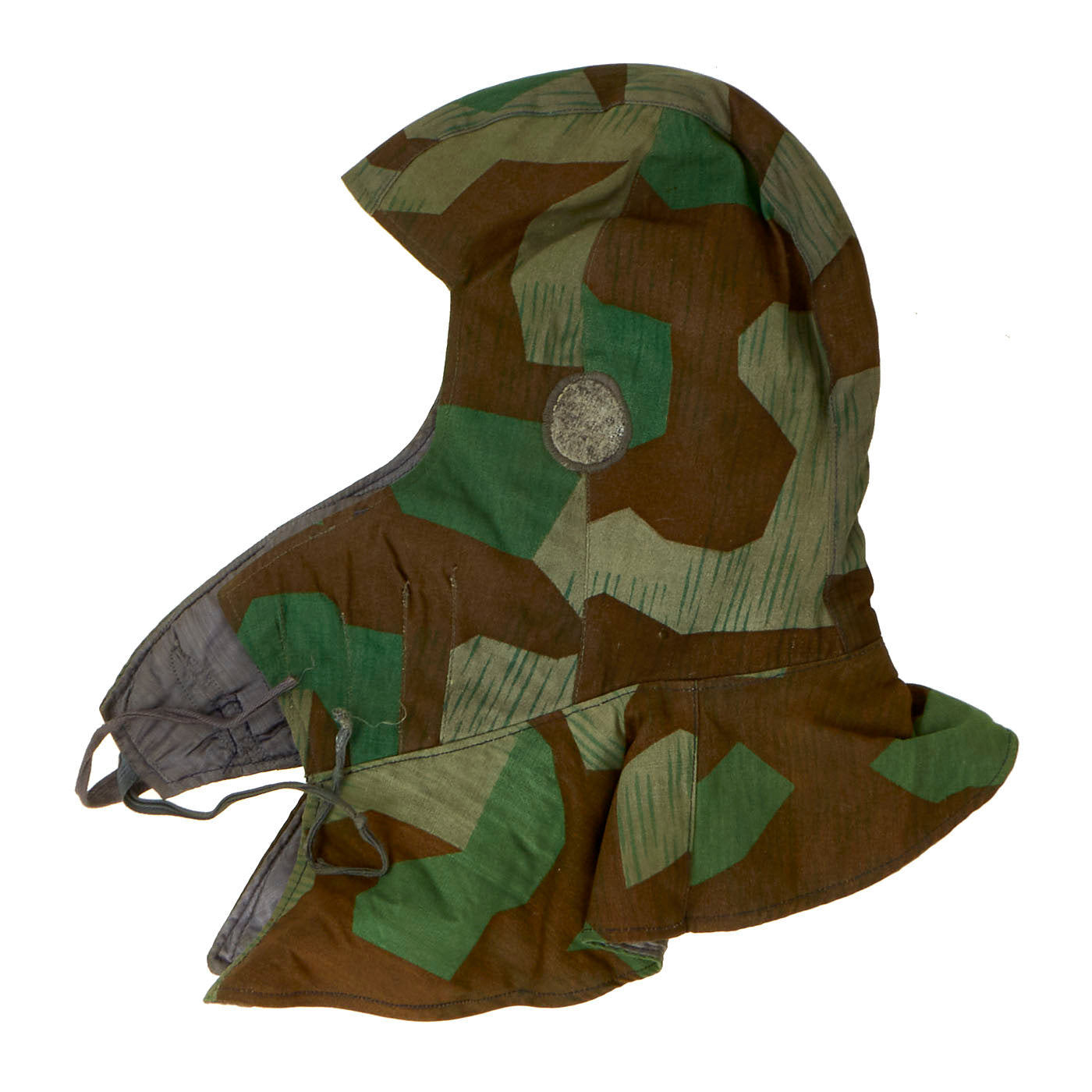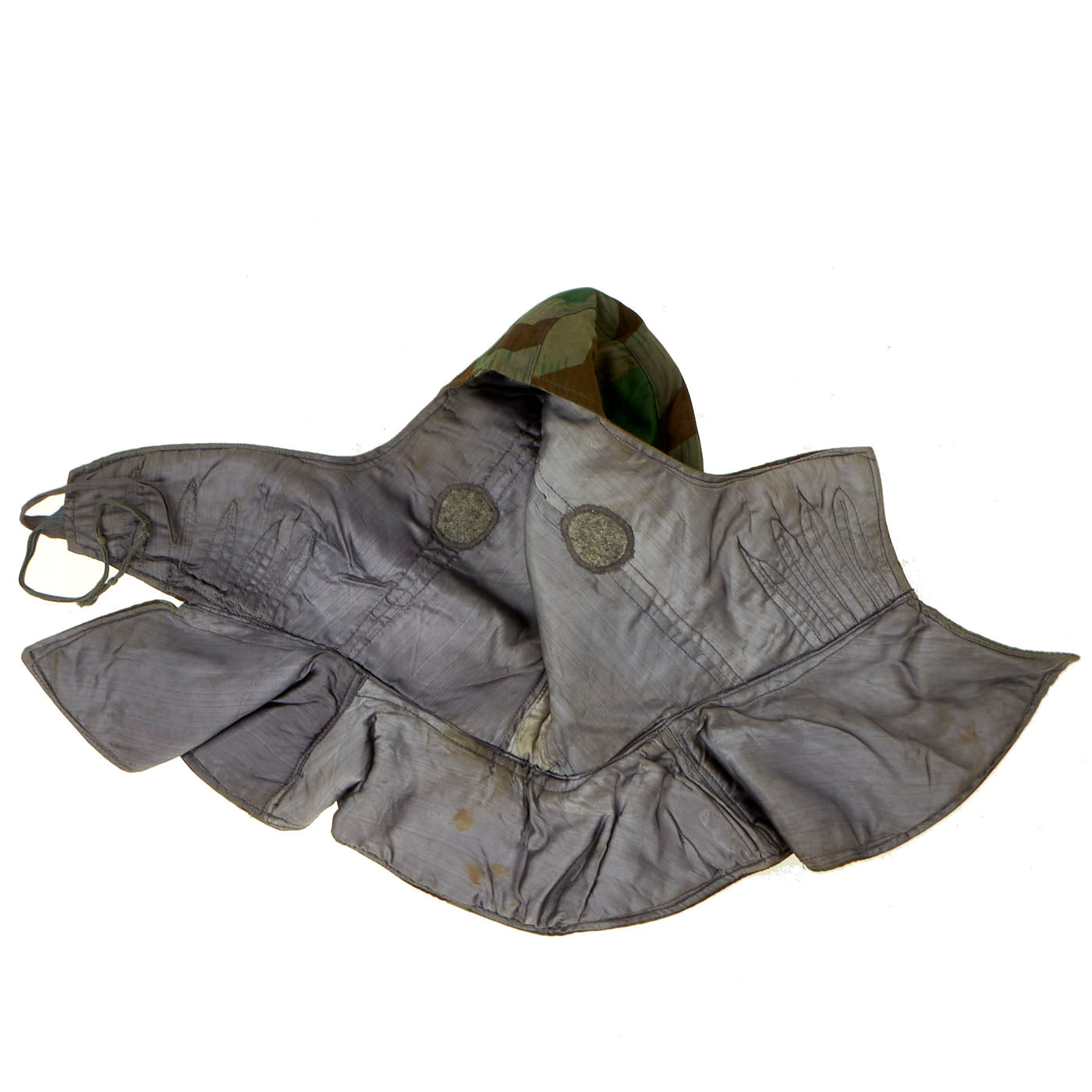 The M43 fur-lined winter parka was designed in mid 1943 featuring a full length button up front closure, and was introduced in the field in early 1944. This Italian camouflage M43 Khakrov parka was made from spare fabric that the Germans liberated from Italian Army camps. The Khakrov Parka was so named as it was used by SS units fighting in the Cold winter of the Russian front .