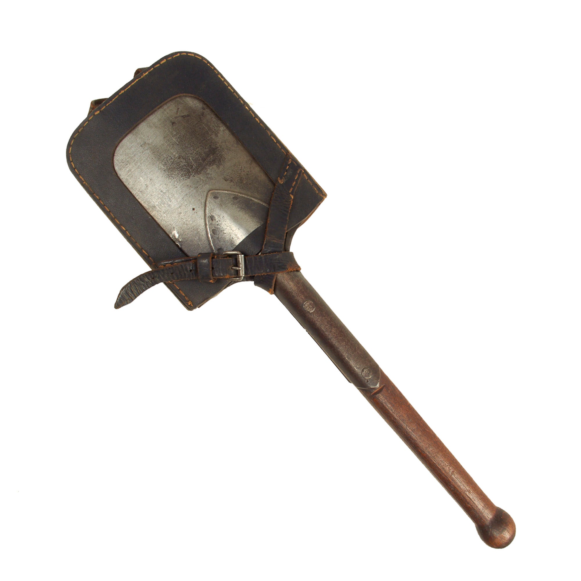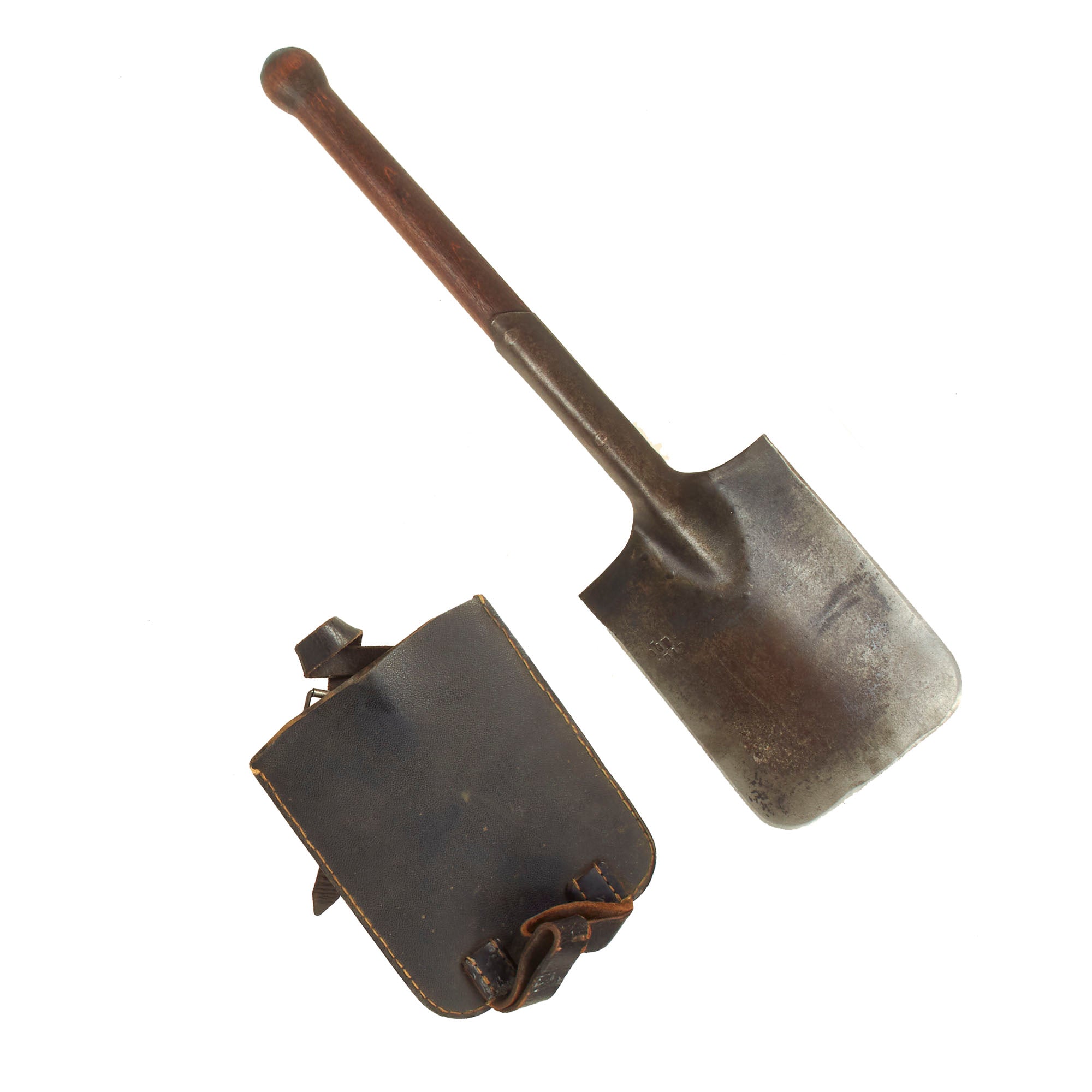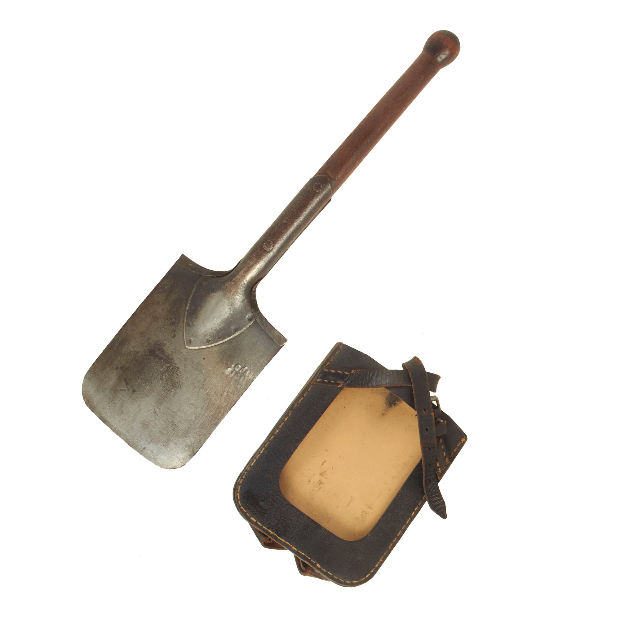Original Item: Only One Available. The entrenching tool was a basic item issued to all EM/NCO’s and was issued with a specific carrying case that was to be worn on the load carrying waist belt. Originally the non-folding entrenching tool utilized by the Germany army in WWII was a carryover of the WWI and Reichswehr era M1887 entrenching tool until November 12, 1938 when a new improved folding shovel was introduced to replace the earlier non-folding pattern. Although the new folding shovel proved more practical and popular with the troops, the earlier entrenching tool was utilized right up until the end of the war. The entrenching tool was a very valuable piece of kit enabling the individual soldier to dig in for protection as required and was also utilized as a close combat weapon.