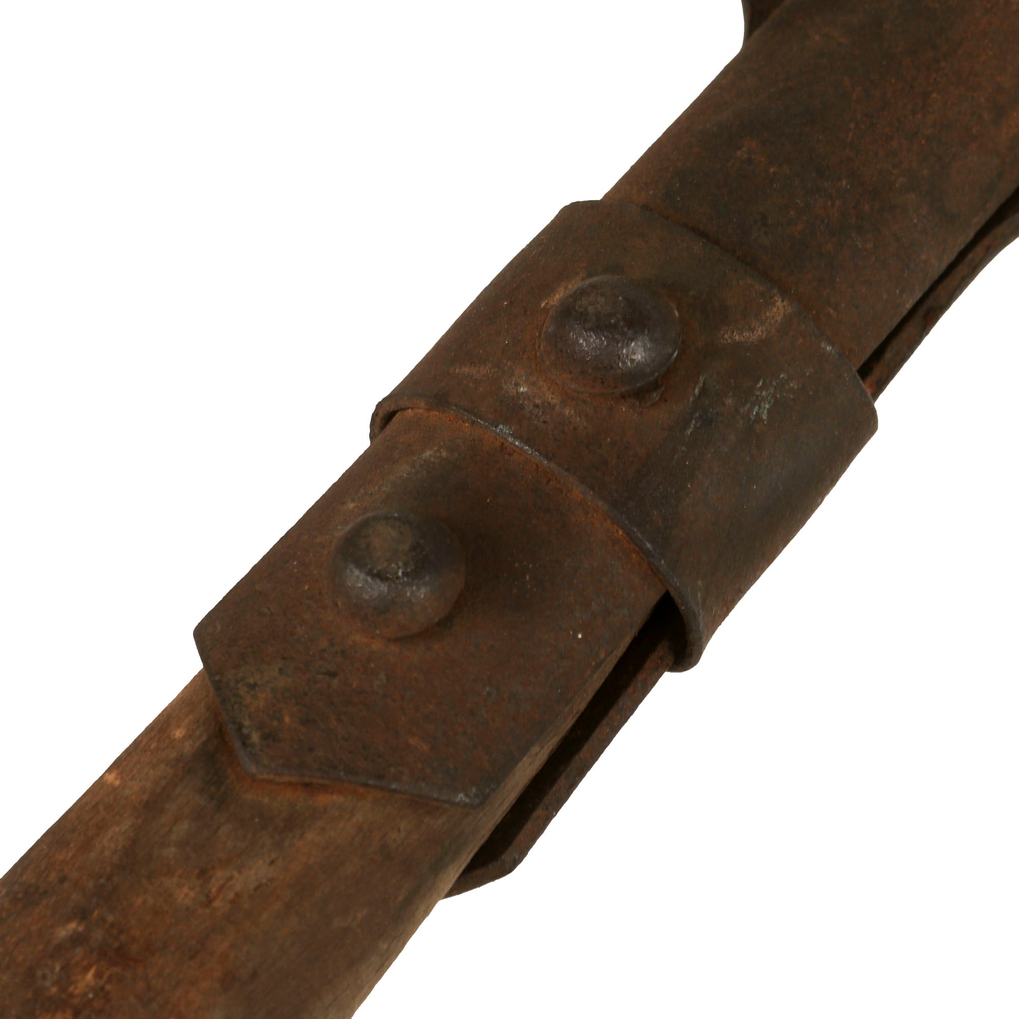 This is a great WWII ersatz material entrenching tool in fair service-used shape. This comes ready for further research and display.