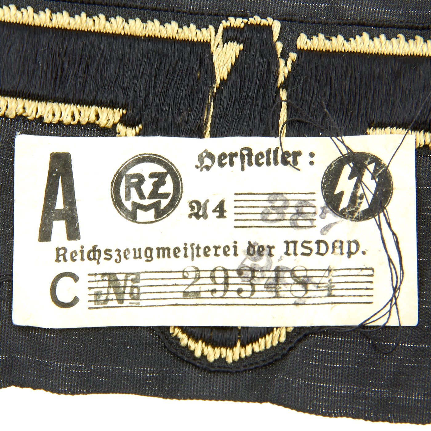 The Allgemeine-SS, (General-SS), was originally formed in May 1923 as the Stosstrupp Adolf AH, (Shock Troops Adolf AH), and was redesignated Schutzstaffel, (Protection Squad), in April 1925 with the official acceptance of the name verified on the second anniversary of the failed Munich "Beer-Hall" Putsch on November 9TH 1925. On January 6TH 1929 Heinrich Himmler was appointed as Reichsführer-SS, (National Leader {of the} SS), and on July 20TH 1934 shortly after the, June 30TH 1934, purge of the SA, Sturm Abteilung, (Storm Troopers) on the "Night of the Long Knives", the SS was rewarded by AH by being granted the status of an independent organization under direct control of the NSDAP, Nationalsozialistische Deutsche Arbeiterpartei, (National Socialist German Worker’s Party). The SS developed the distinctive SS style cap skull and cross bones on October 6TH 1934 and introduced the SS pattern national cap eagle in February 1936. After their introductions the skull and eagle were to be worn on all forms of SS headgear. In 1944 the SS developed a single piece of cap insignia which incorporated both the skull and eagle on a one piece trapezoid base for wear on the M43 field cap. Originally these trapezoidal pieces of insignia were produced in a machine woven version until a final, embroidered version was introduced in late 1944. The first versions of the trapezoidal cap insignia featured dual rows of teeth in the skull while later versions only had a single row of teeth. Panzer personnel’s cap trapezoids were produced with a black base to match the color of the cap it was to be worn on.