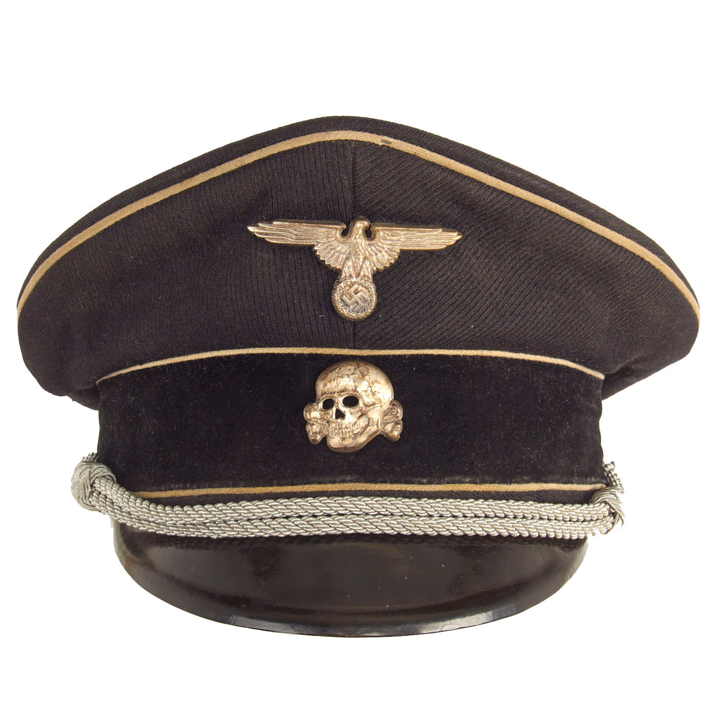Original Item: Only One Available. A fine example of an original Allgemeine SS Officer’s Visor Cap. The SS was originally formed in 1925, ostensibly to act as a small, loyal bodyguard unit to protect the Führer. Under the direction of the Reichsführer-SS Himmler, the SS grew to be the most ruthless and feared organization of the 20th century. They were the vanguard of NSDAP and eventually controlled nearly every function of German life and much of Occupied Europe.
