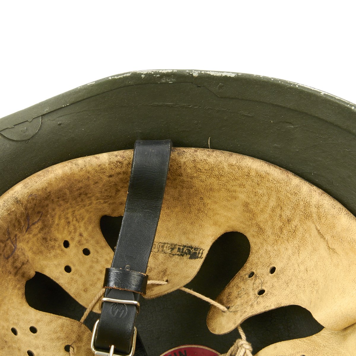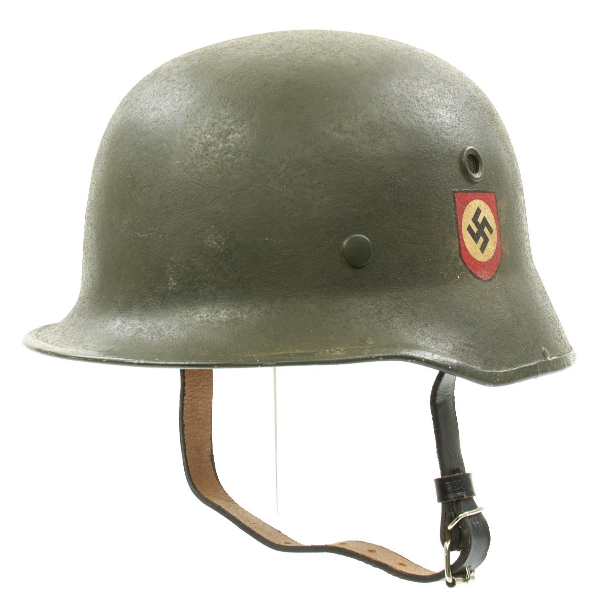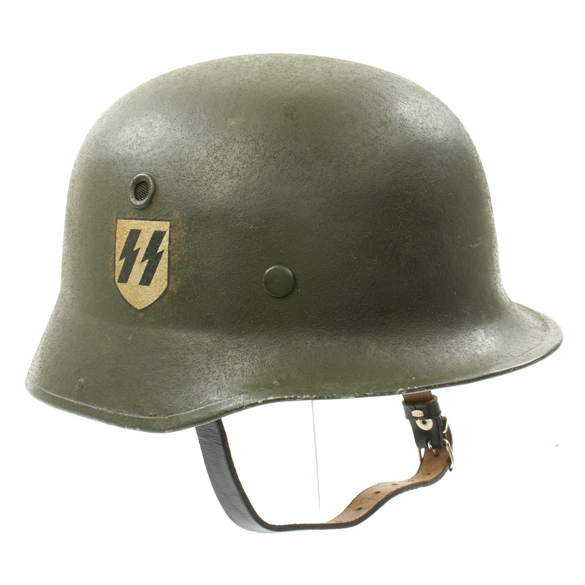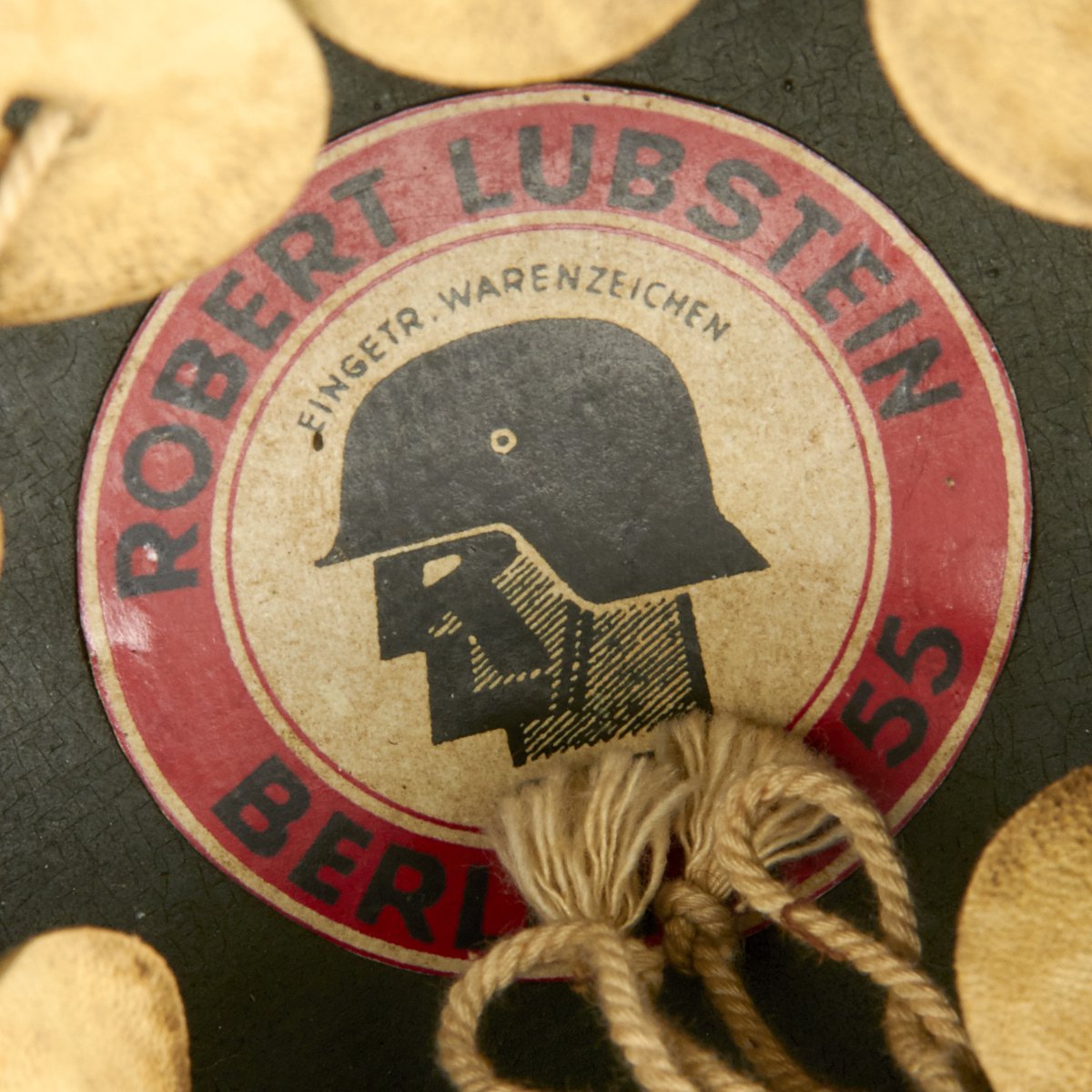Original Item: Only One Available. This is a rare genuine Vulkanfiber manufactured by EREL and sold through the retailer Robert Lubstein of Berlin. The helmet shell is 100% original as is the paint, liner and chinstrap. The decals however, are 1960s reproductions and his helmet was intended to deceive collectors. The forger even stamped SS into the chinstrap. Regardless it is an excellent example of a Vulkanfiberhelm, in size 58 with nearly all original parts, just don't be fooled by the decals, or stamps!