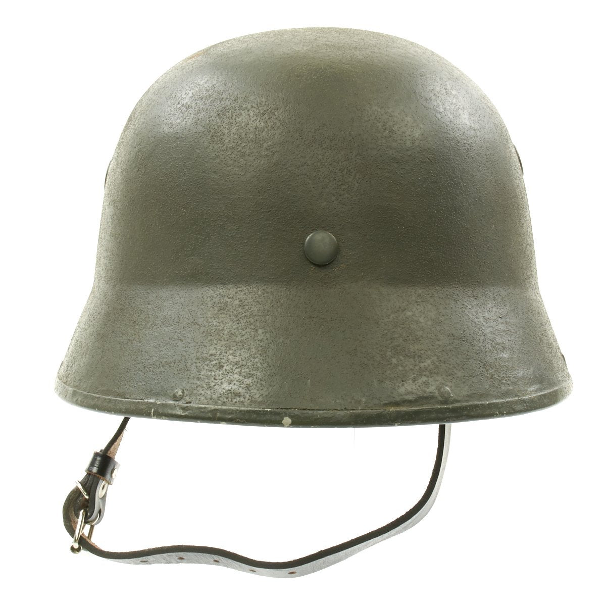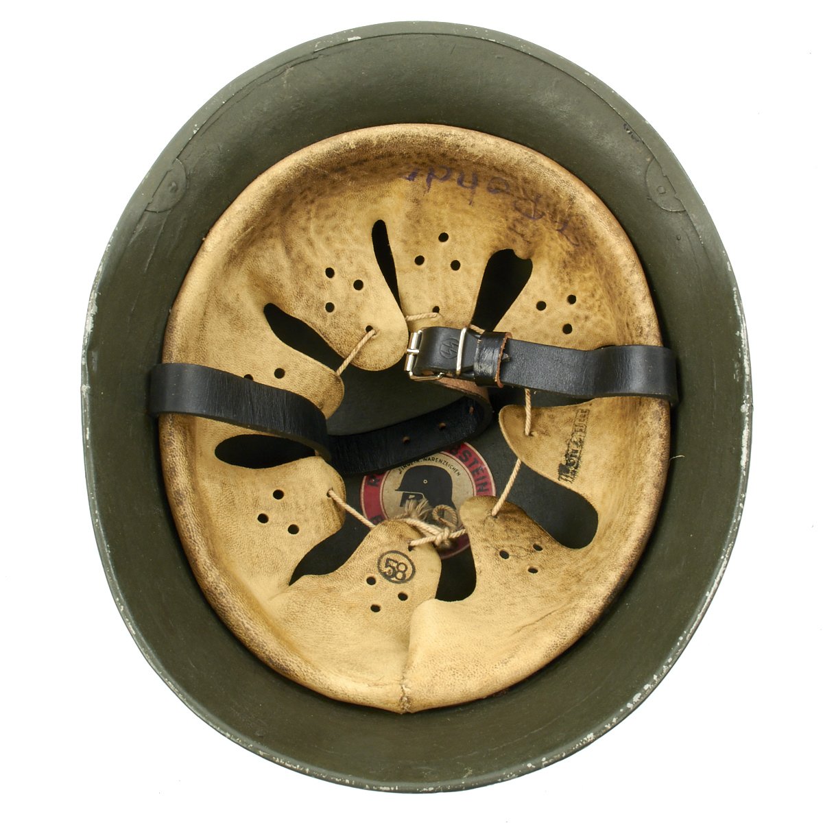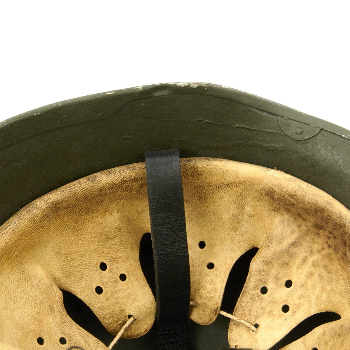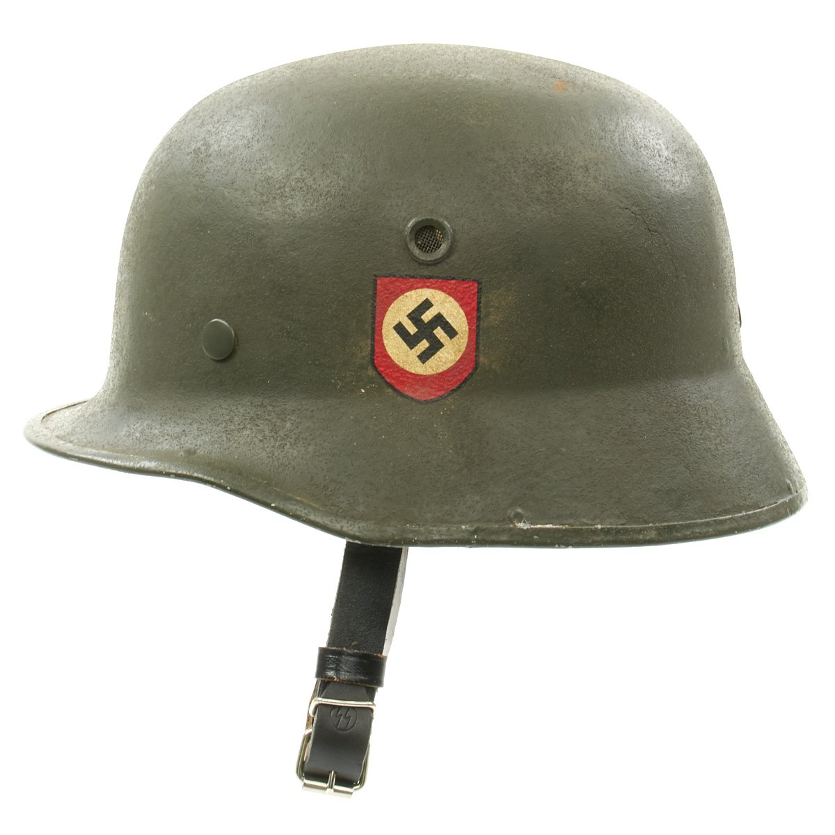 Original Item: Only One Available. This is a rare genuine Vulkanfiber manufactured by EREL and sold through the retailer Robert Lubstein of Berlin. The helmet shell is 100% original as is the paint, liner and chinstrap. The decals however, are 1960s reproductions and his helmet was intended to deceive collectors. The forger even stamped SS into the chinstrap. Regardless it is an excellent example of a Vulkanfiberhelm, in size 58 with nearly all original parts, just don't be fooled by the decals, or stamps!