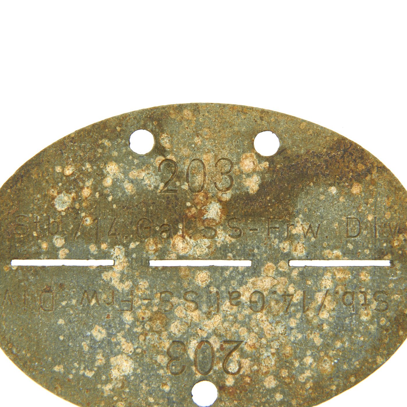 This soldier was a member (No.203) of the The 14th Waffen Grenadier Division of the SS (1st Galician). (German: 14. Waffen-Grenadier-Division der SS (galizische Nr. 1)), Ukrainian: 14а Гренадерська Дивізія СС (1а галицька)), prior to 1944 titled the 14th SS-Volunteer Division "Galicia" (German: 14. SS-Freiwilligen Division "Galizien", Ukrainian: 14а Добровільна Дивізія СС "Галичина") was a World War II German military formation made up predominantly of volunteers with a Ukrainian ethnic background from the area of Galicia, later also with some Slovaks and Czechs. Formed in 1943, it was largely destroyed in the battle of Brody, reformed, and saw action in Slovakia, Yugoslavia and Austria before being renamed the first division of the Ukrainian National Army and surrendering to the Western Allies by 10 May 1945.