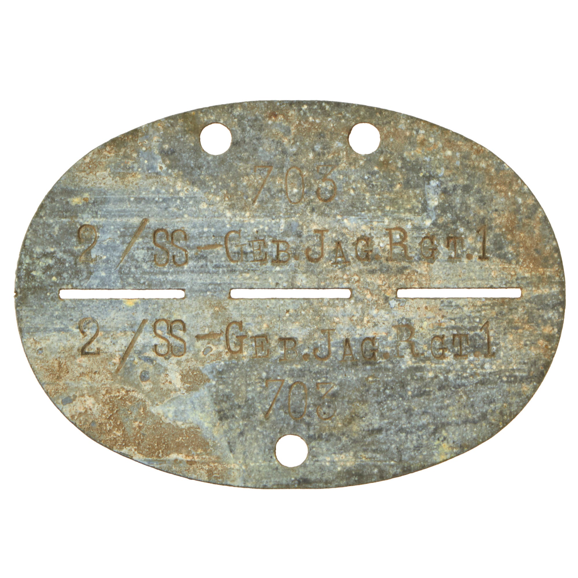This soldier was a member (No. 703) of the 1st Waffen Gebirgsjäger (Mountain Infantry) Regiment of the SS, 2nd Battalion. We did some preliminary research, and unfortunately there is not much information regarding the Mountain Infantry units of the Waffen SS. Most that were able to find were part of the foreign volunteer divisions, so we leave this as an excellent research opportunity.