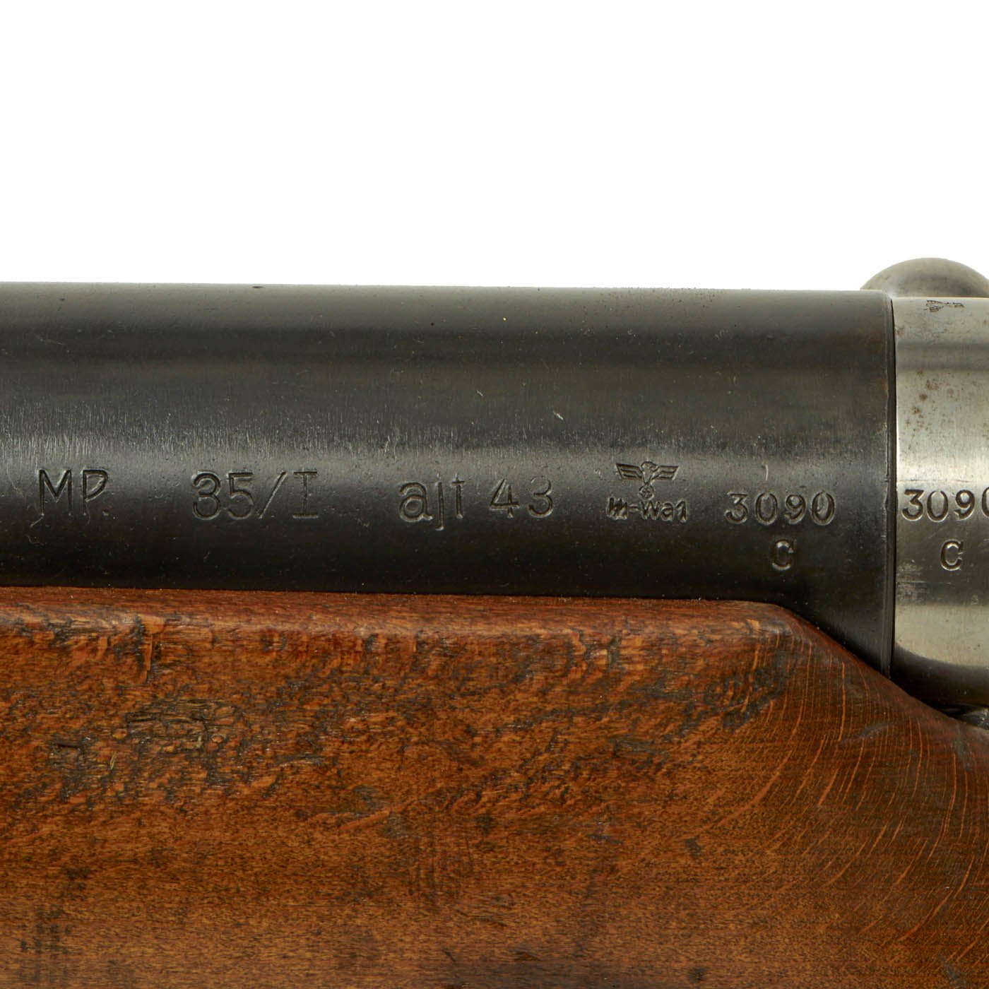 The very rare ᛋᛋ doppelte Siegrune (Double Sig/Victory Rune) Waffenamt marking indicates definitive acceptance and issue to the SS, making this an exceedingly rare example. We have only had one MP 35 before, as a parts set, and it was not SS marked. While most were supplied to the Waffen-SS, we have not seen one previously with this marking. This is an offering that is unlikely to ever be duplicated.
