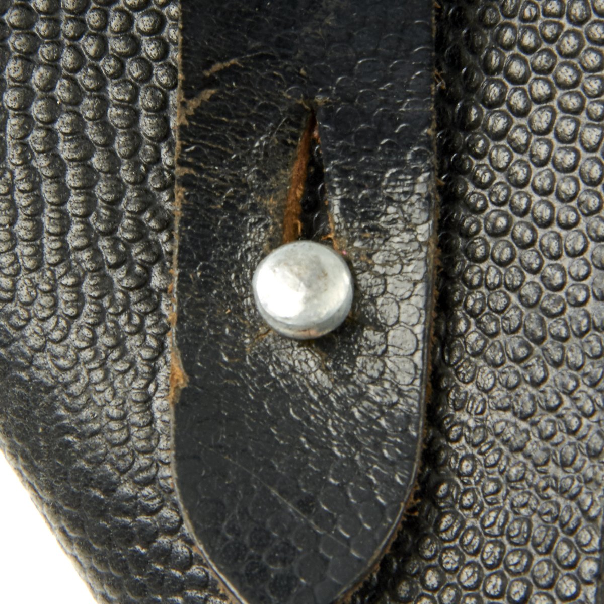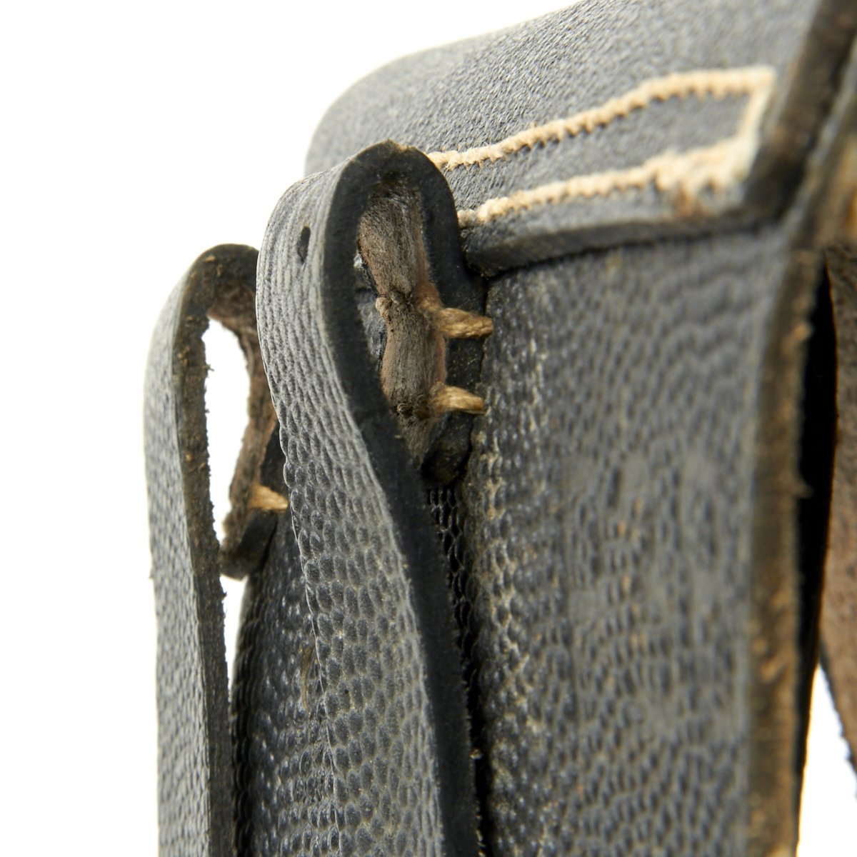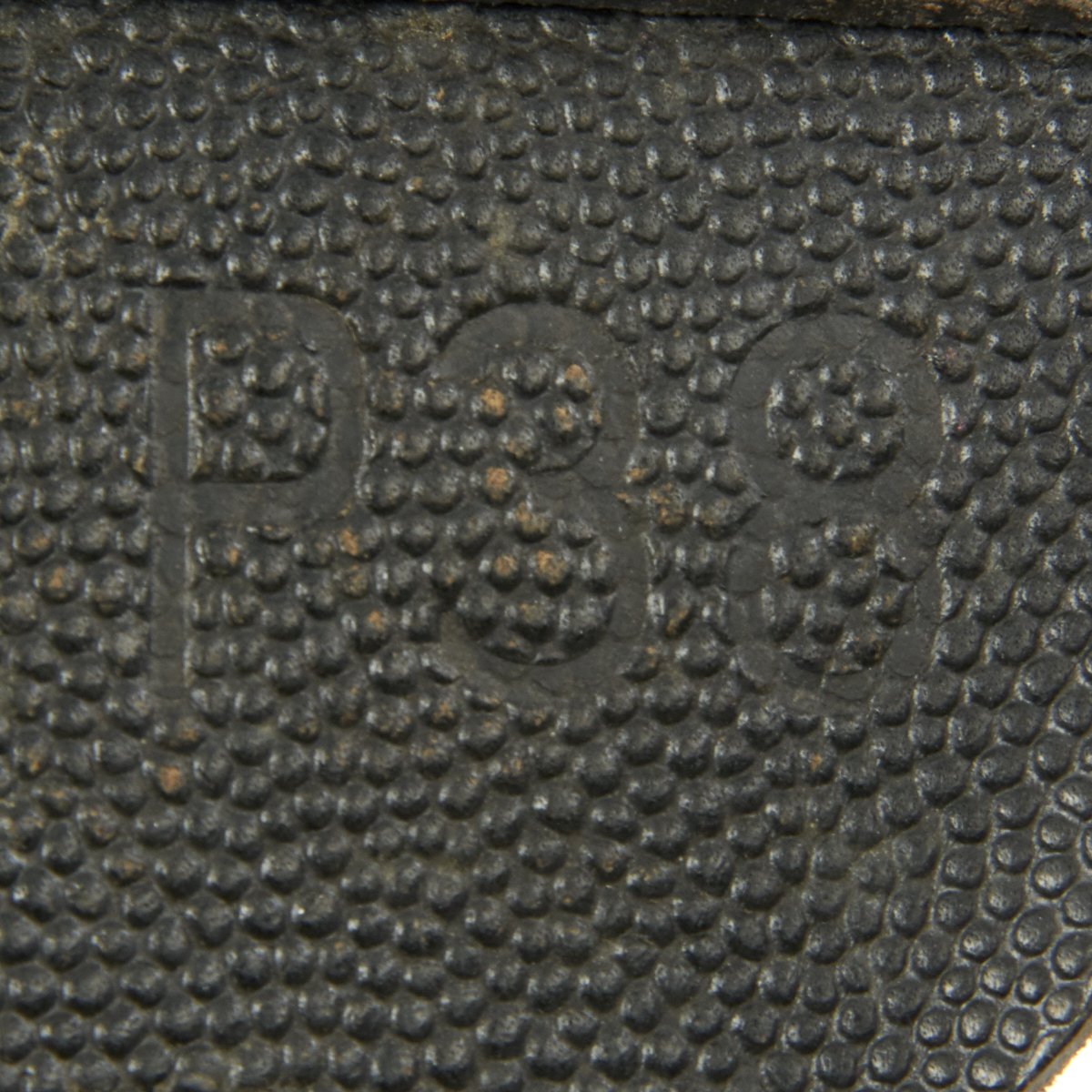 Original Item: Only One Available. Recently purchased from a private collector, this is an excellent condition WWII production black pebble grain finished leather holsters for the standard issue Walther P-38 pistol in 9mm, stamped P38 on the back. It shows very few signs of use, and the leather is in great shape. More importantly, the rear of this holster is marked with two "Sig" symbol inside double circles, indicating this holster was intended for the SS (Schutzstaffel). Below this is a Waffenamt inspection stamp.