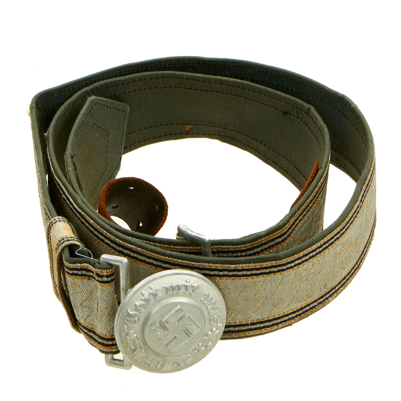 Original Item: Only One Available. This is a very nice WWII German SS Officer's Bullion Dress Brocade Belt, with an attached aluminum buckle. These belts were worn with the dress uniform for ceremonial occasions, and were standard issue to all officers with their dress uniform.