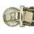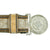 The round officer's buckle is constructed of die struck aluminum, and has a central raised circle, with the canted NSDAP Swas (Hook Cross or Swas) in the center. Surrounding this on the bottom is a very nice wreath of oak leaves and acorns, with Gott mit uns (God with us) in gothic letters on the top. The reverse of the buckle is concave, and has the buckle catch, which on the other end is crimped around the rectangular keeper. The buckle shows minimal use, with just a bit of wear around the edges.