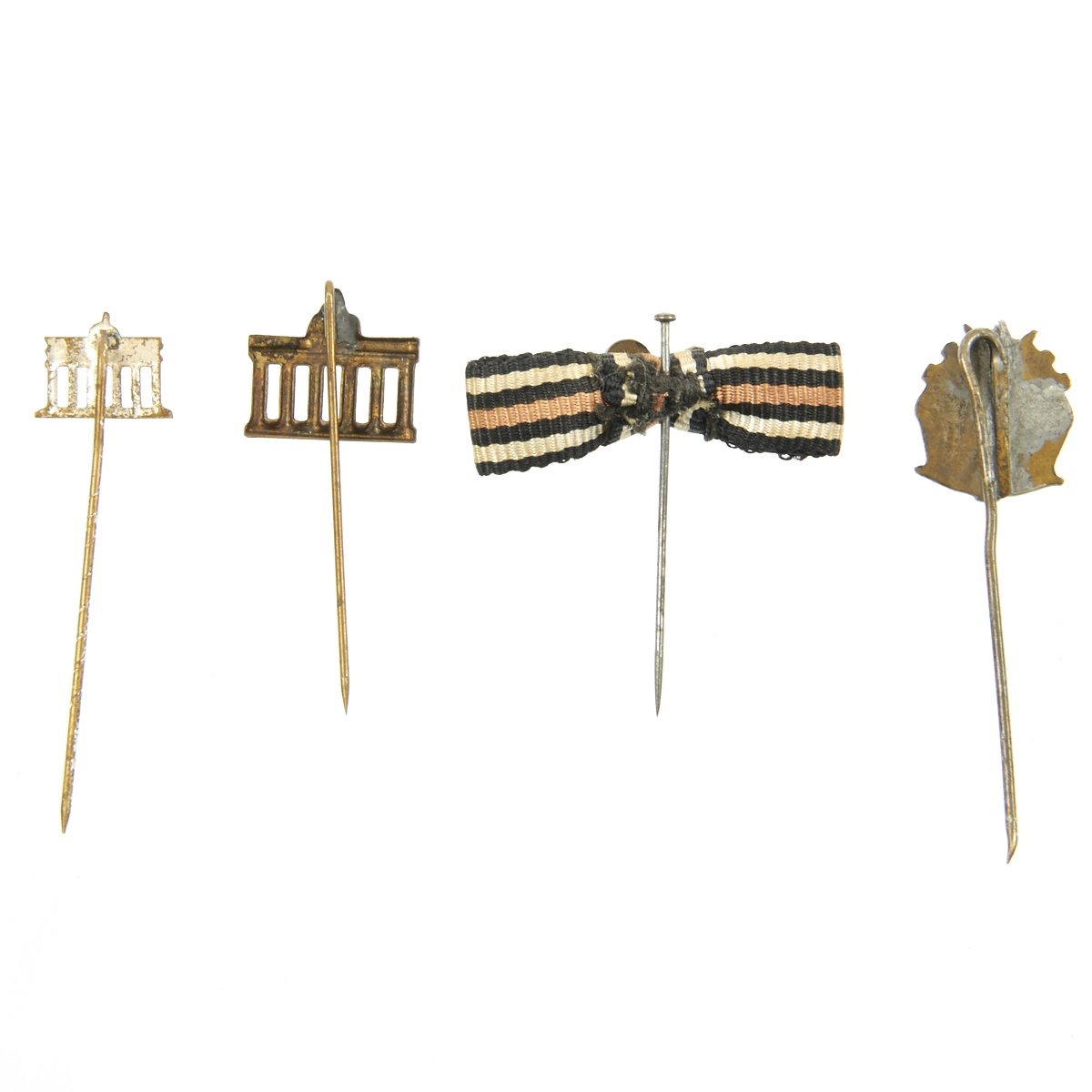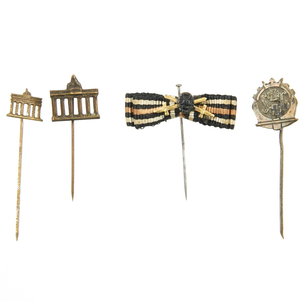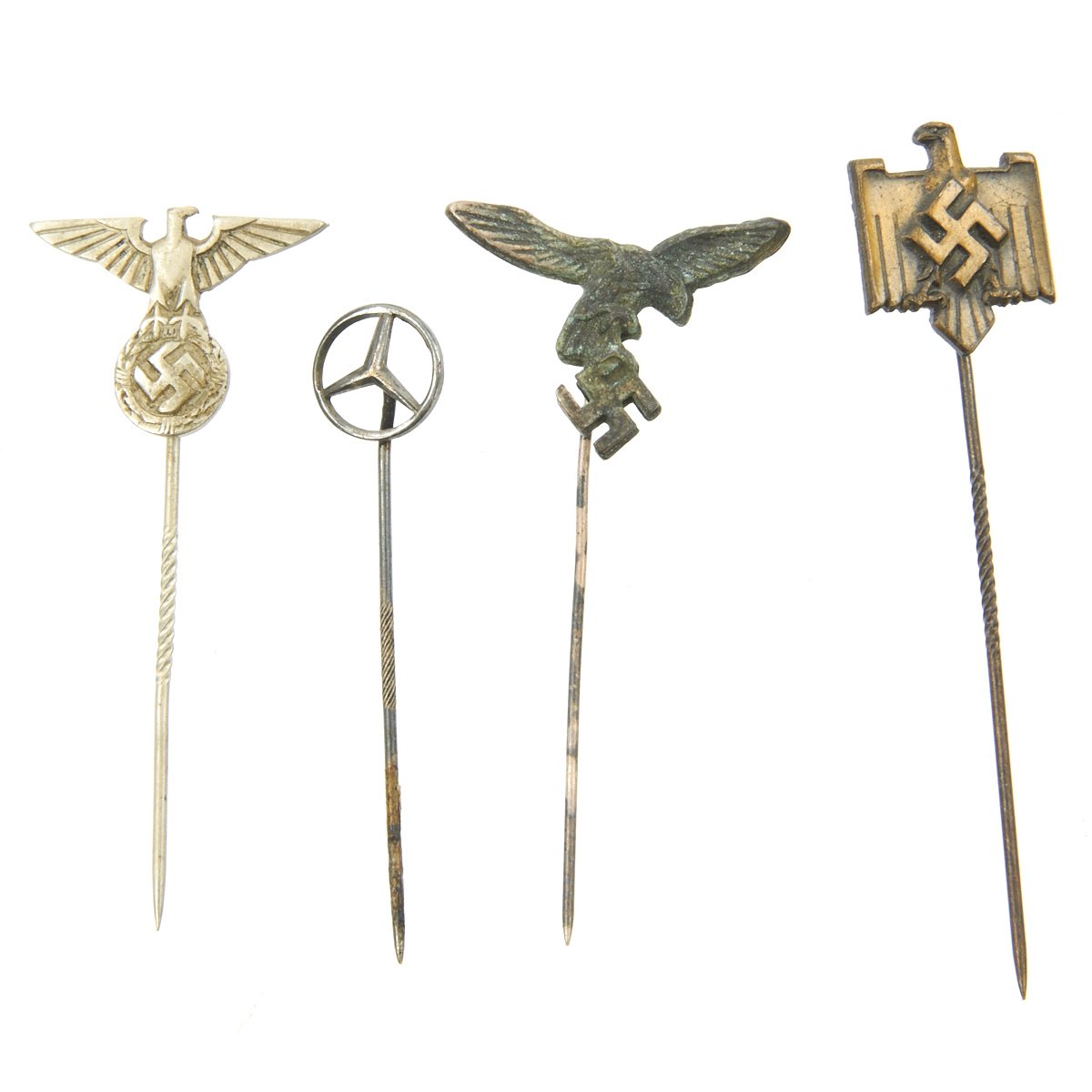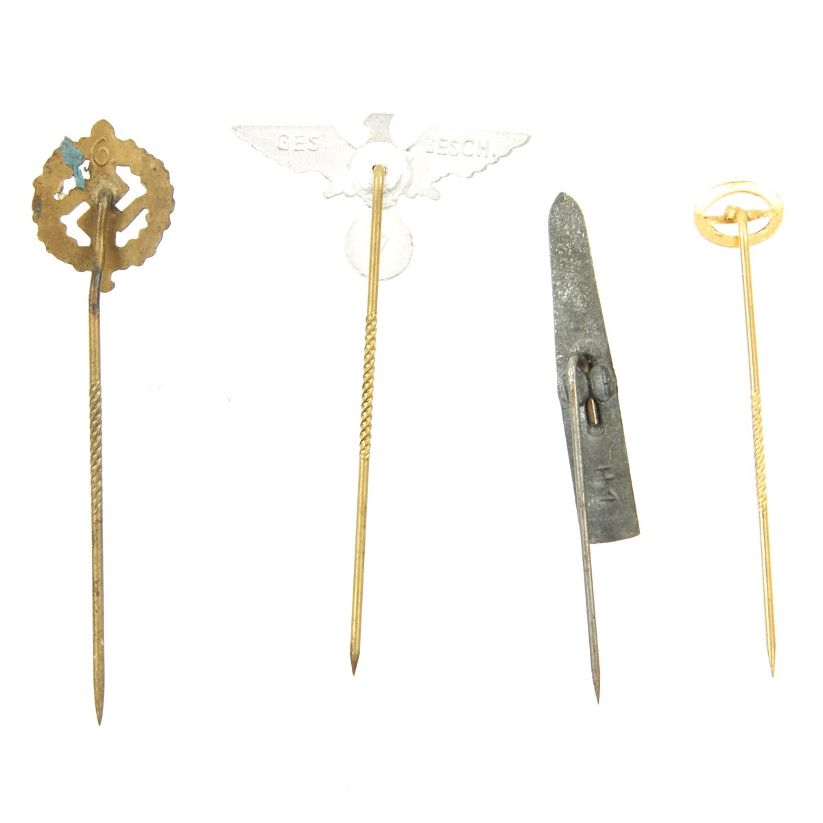 - Original Items: Only One Set Available. This is a lot of 28 German WWII Combat and Civilian stick pins. The German armed forces and political organizations during WWII awarded a wide array of stick pins to their members. In some cases, primarily for the military organizations, the stick pins were a small representation of a larger award. For example, a pilot's badge would be issued in a box with a stick pin. The large badge was used with a regular military uniform. The stick pin was generally used with civilian clothes at social functions, rallies and public events. All stick pins are offered in good to excellent condition. See photos to view the pins included with the purchase of this collection.