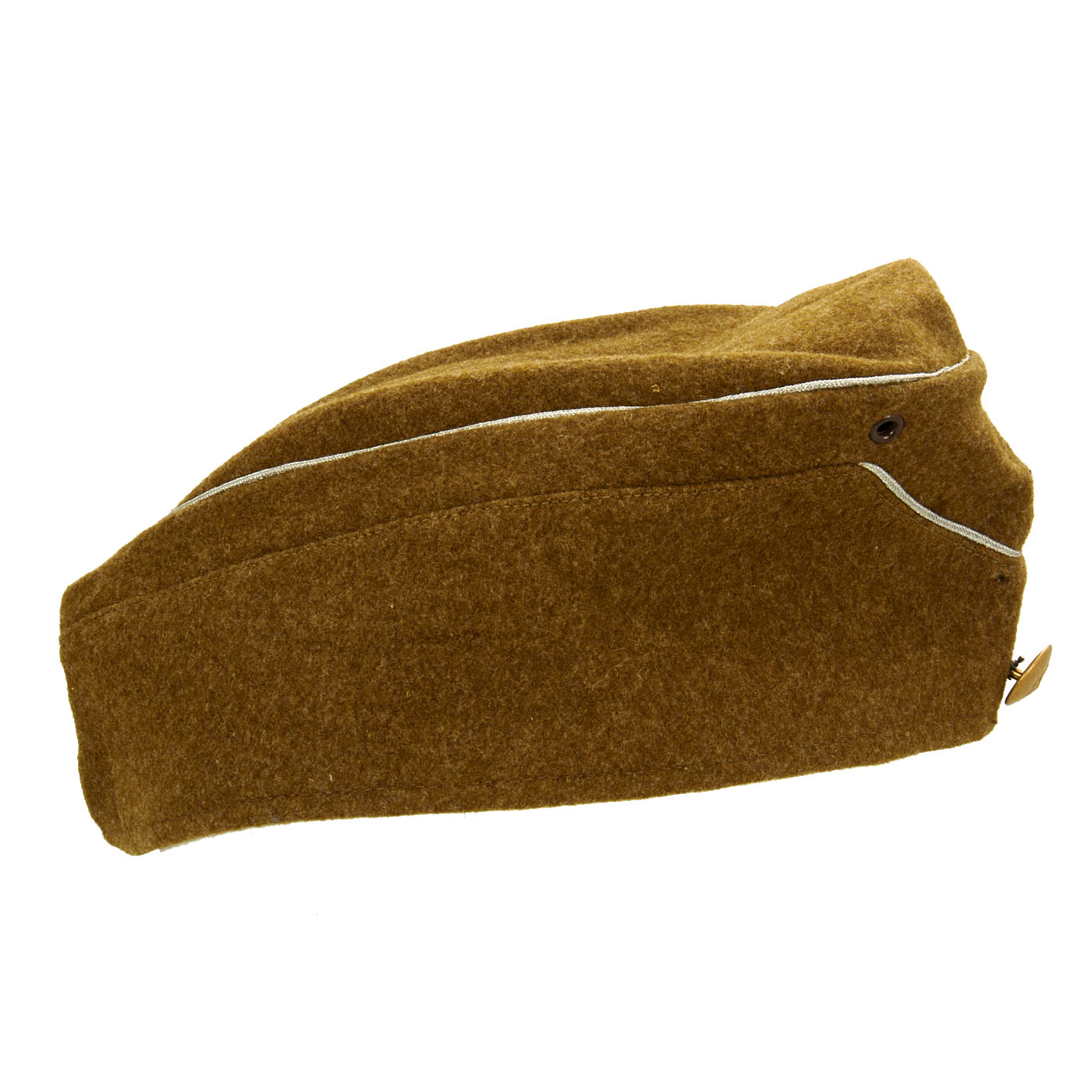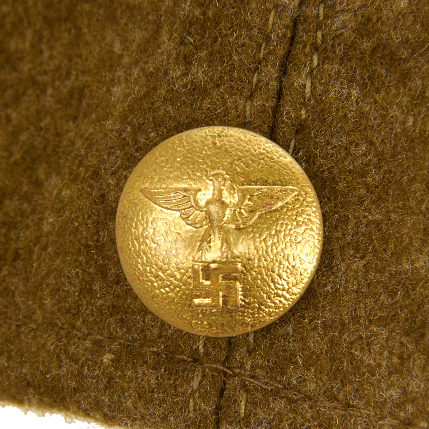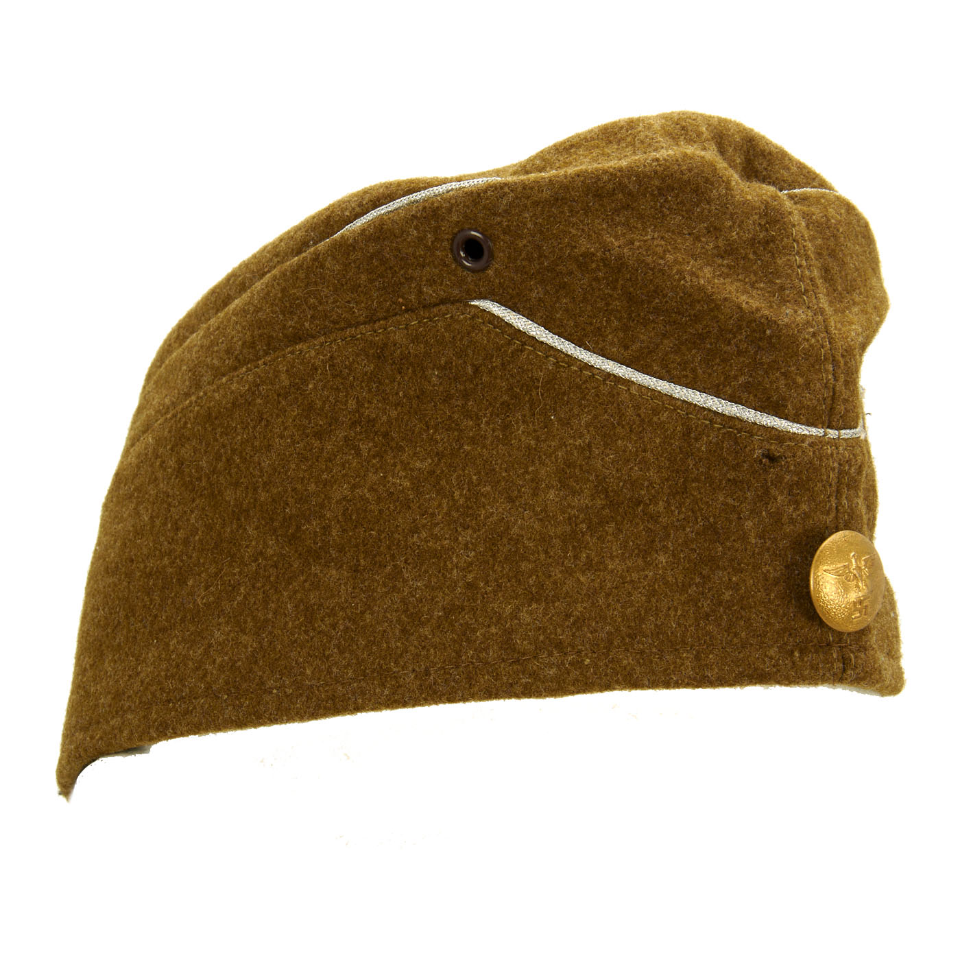 Original Item: Only One Available. A well-preserved Sturmabteilung (SA garrison cap, constructed of brown wool. The cap is fully surrounded by decorative scalloped fold-down side panels, held in place by a row of machine stitching around the circumference. The cap is flanked on each side by a ventilation hole reinforced by a brown-painted magnetic metal eyelet. Stitched onto the left side of the cap is an insignia in the form of a brown cotton triangular backer bearing a machine-embroidered yellow SA-style German national eagle clutching a wreathed mobile swas.