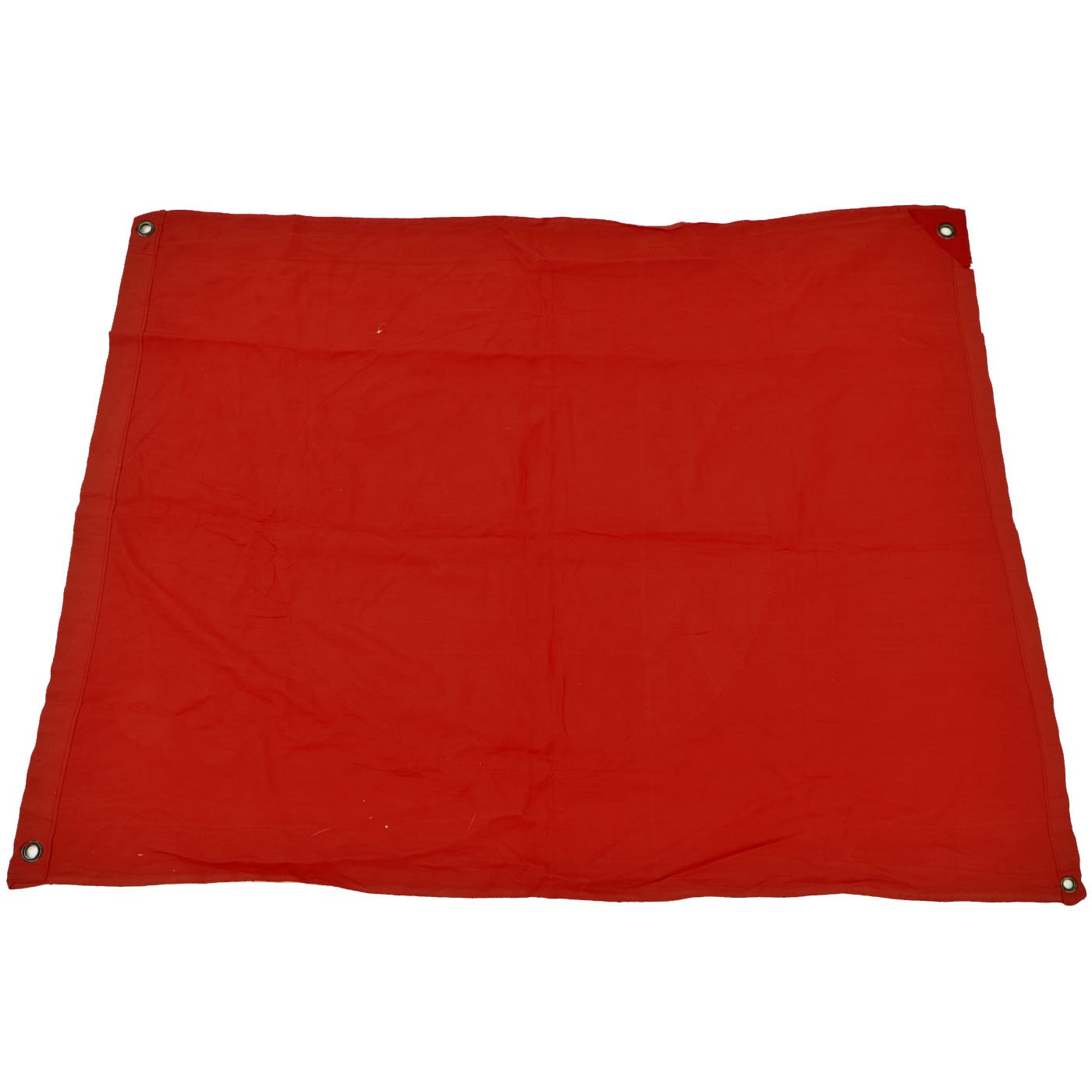 This flag features multi-piece construction and is single sided with grommets located in each corner. These grommets were secured to tension lines that secured the flag to the back of the tank laying flat. Thereby the flag was only visible to persons located above the tank. Generally these flags were intended to be seen by German airplanes so as not to be struck by friendly fire.