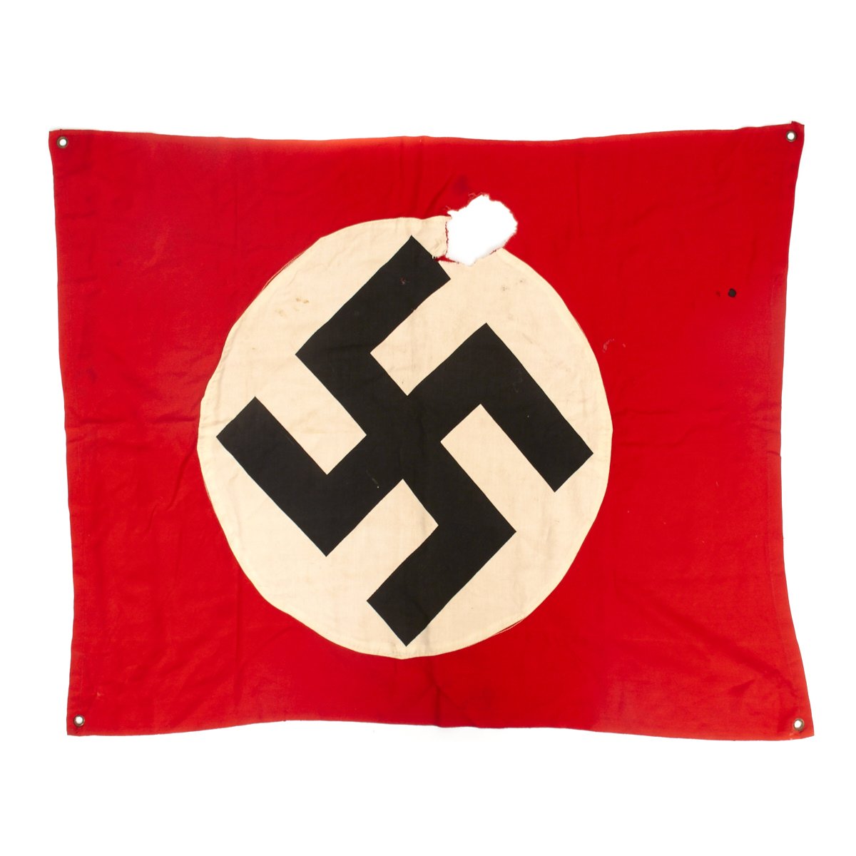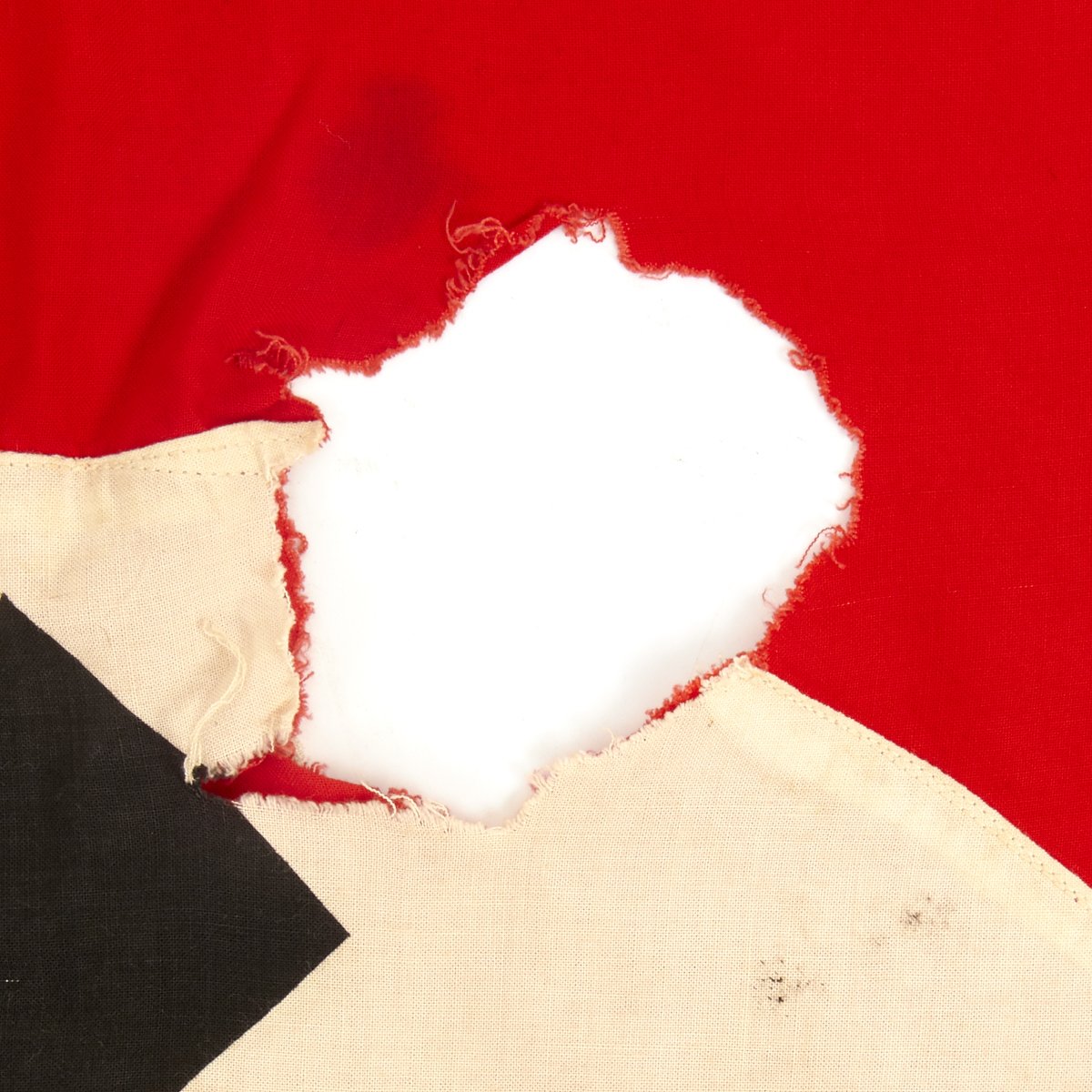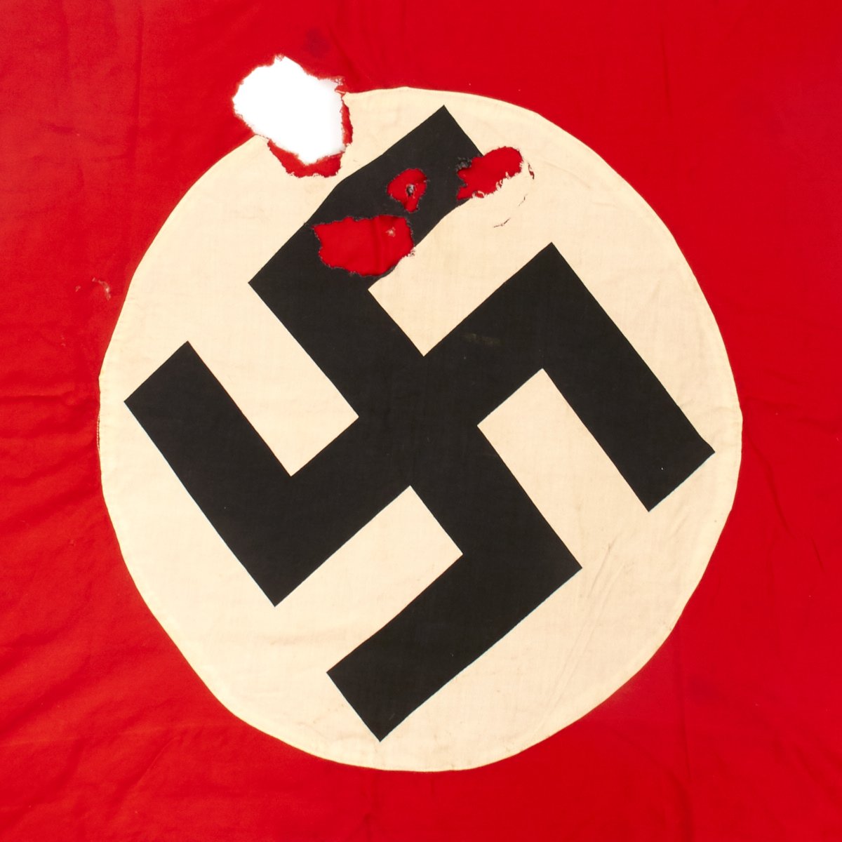 Original Item: One-of-a-kind. This is a battle damaged original German WW2 Swas Panzer tank identification flag that measures approximately 30 x 37.5 inches.