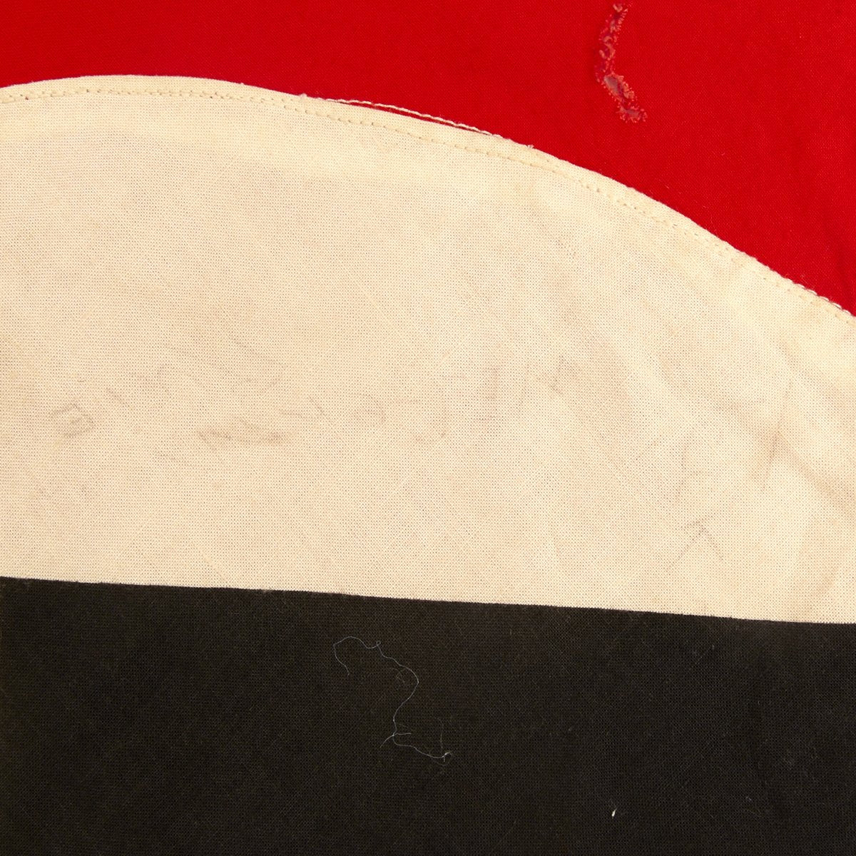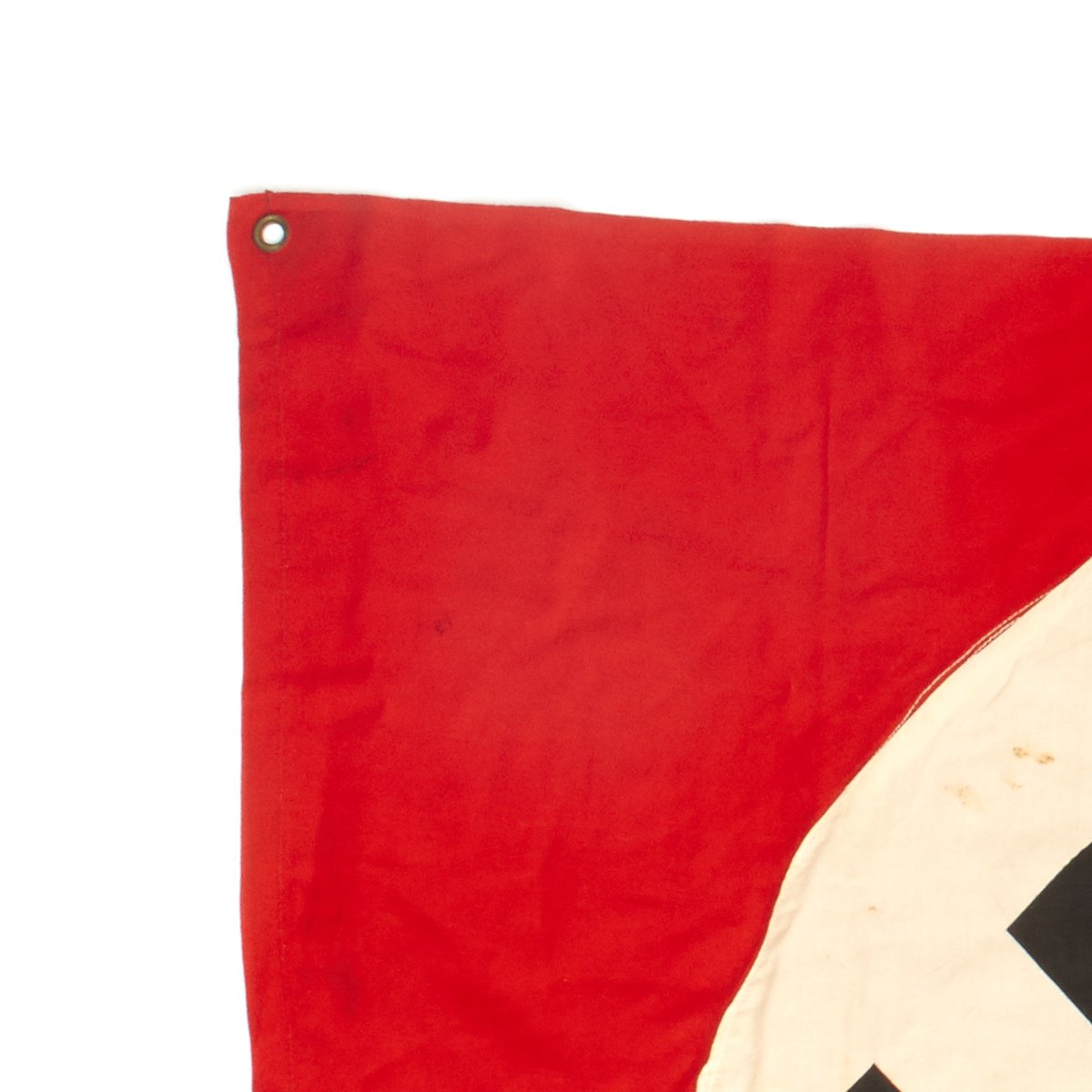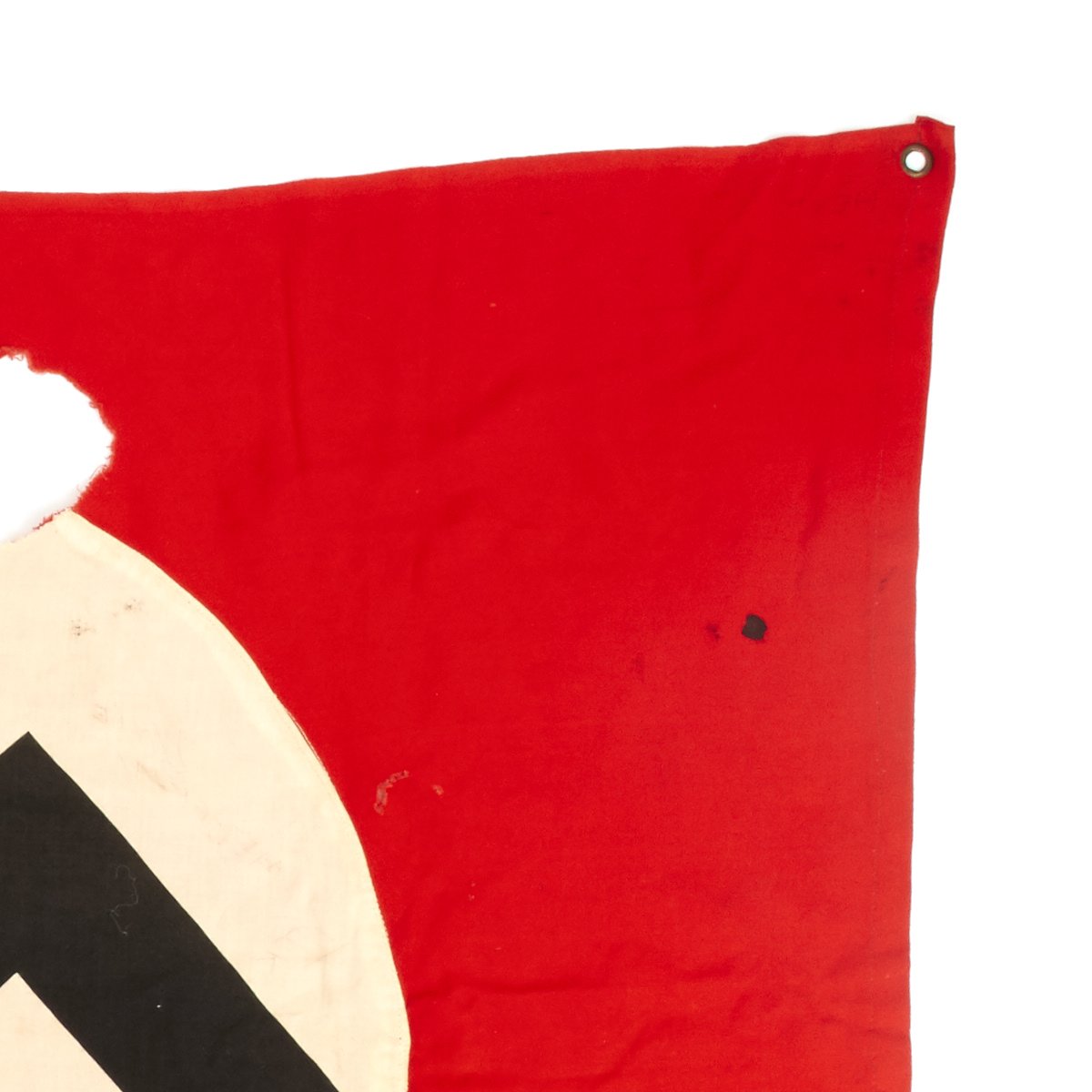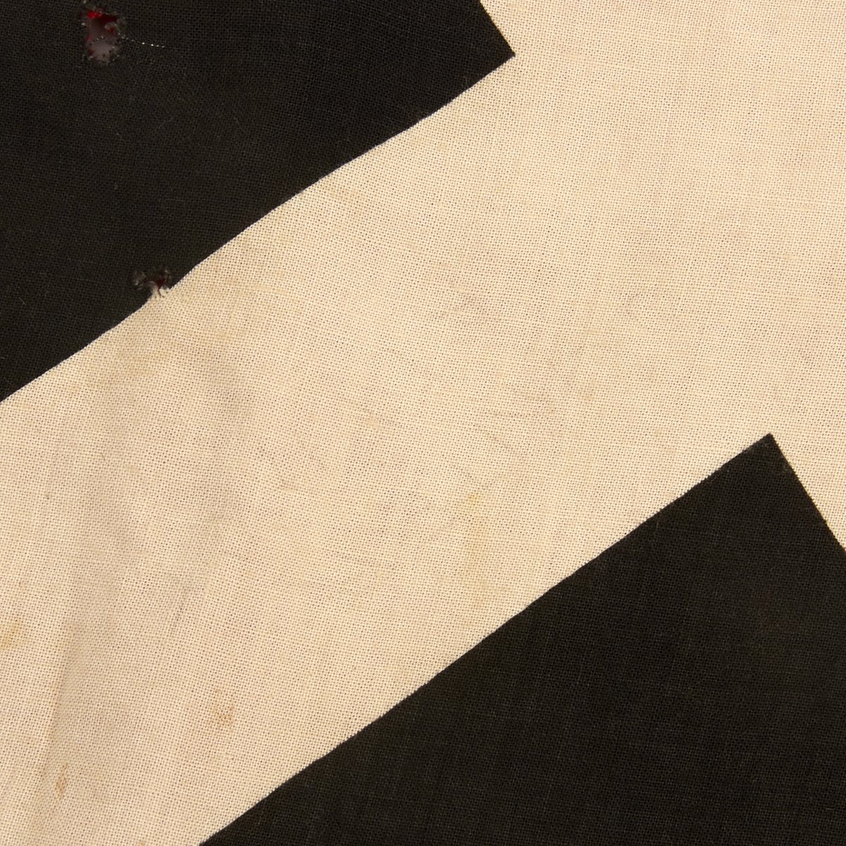 This cotton flag features three-piece construction and is double sided with grommets located in each corner. These grommets were secured to tension lines that secured the flag to the back of the tank laying flat. Thereby they are only visible to persons located above the tank. Generally these flags were intended to be seen by German airplanes so as not to be struck by friendly fire.